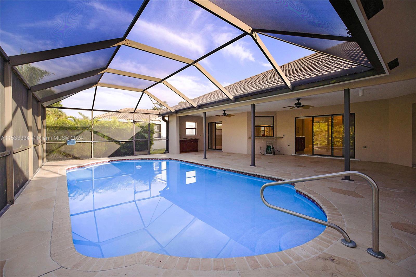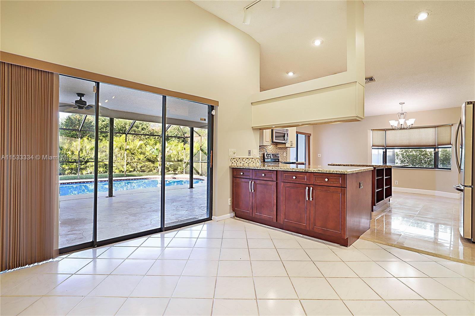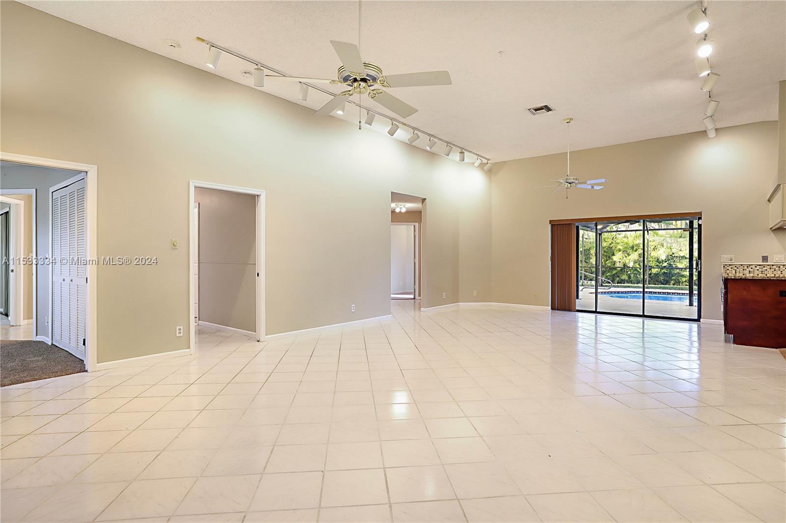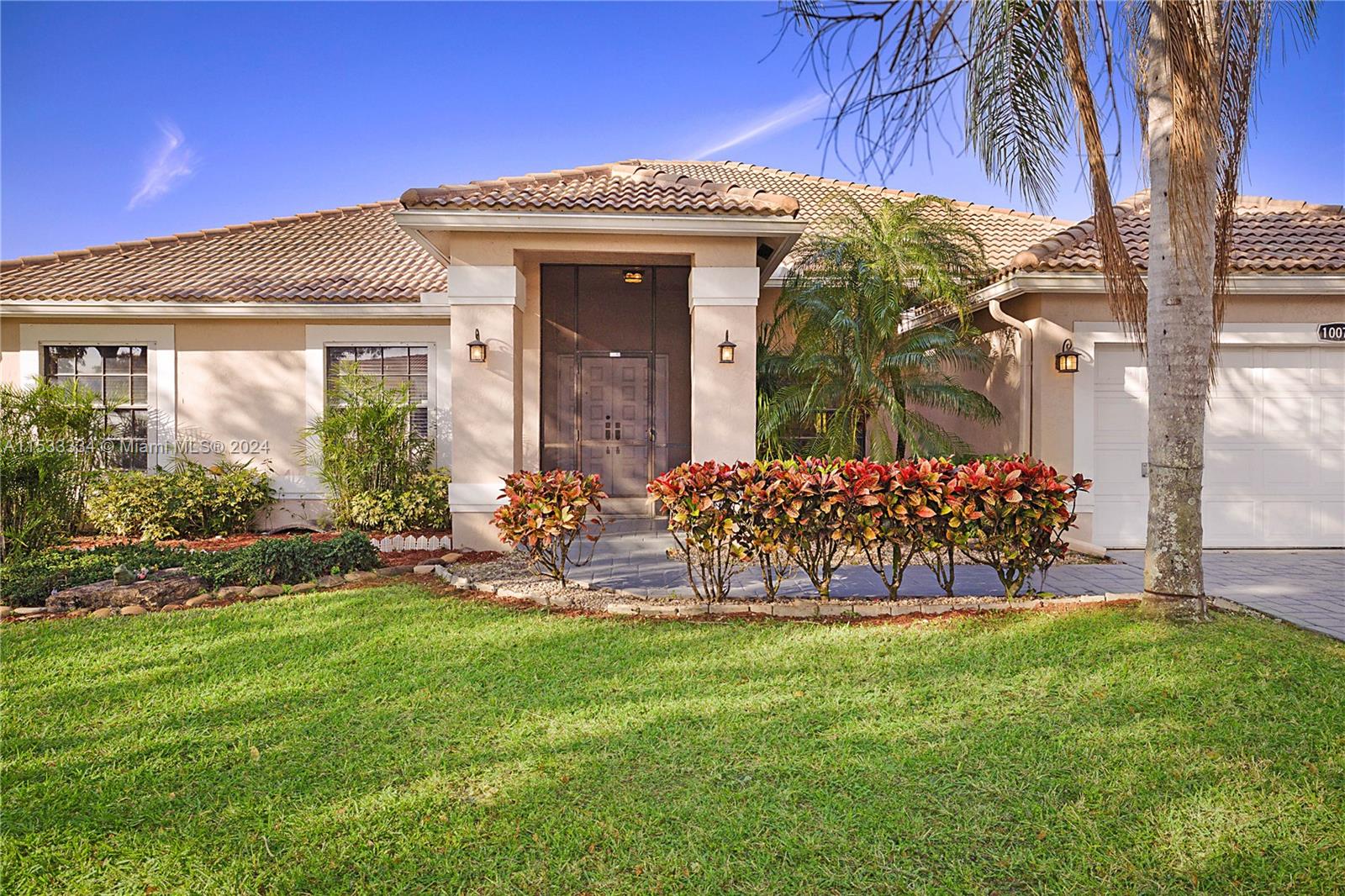 Located in the highly sought after community of North Springs, this beautiful 4/3 2 car garage pool home features a spacious 9,401 sqft lot. Freshly sealed stamped concrete driveway lead you to your entry way & as you walk through your front doors your immediately greeted by the vaulted ceilings, natural lighting & captivating views overlooking the pool & private backyard. Spacious floorplan w/ large family, formal living & dining rooms, open & upgraded kitchen w/ massive island, breakfast bar & nook in the heart of the home perfect for entertaining. Spacious bedrooms & triple split floor plan. Large owners suite w/ dual walk-in closets and spa-like en-suite bathroom. Screened pool area and built in Jennair electric range. Fruit Trees. Hurricane Shutters & more! No HOA. Great Location!