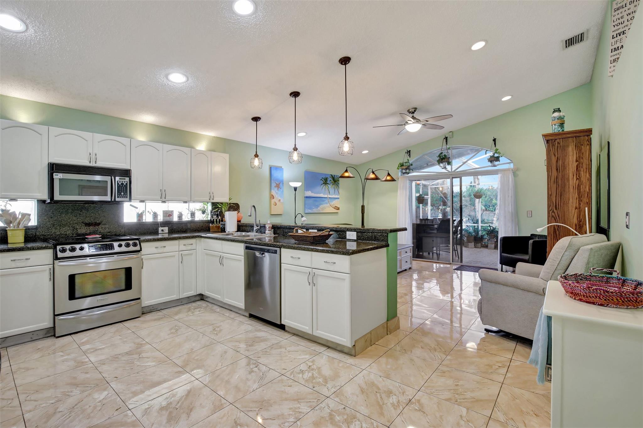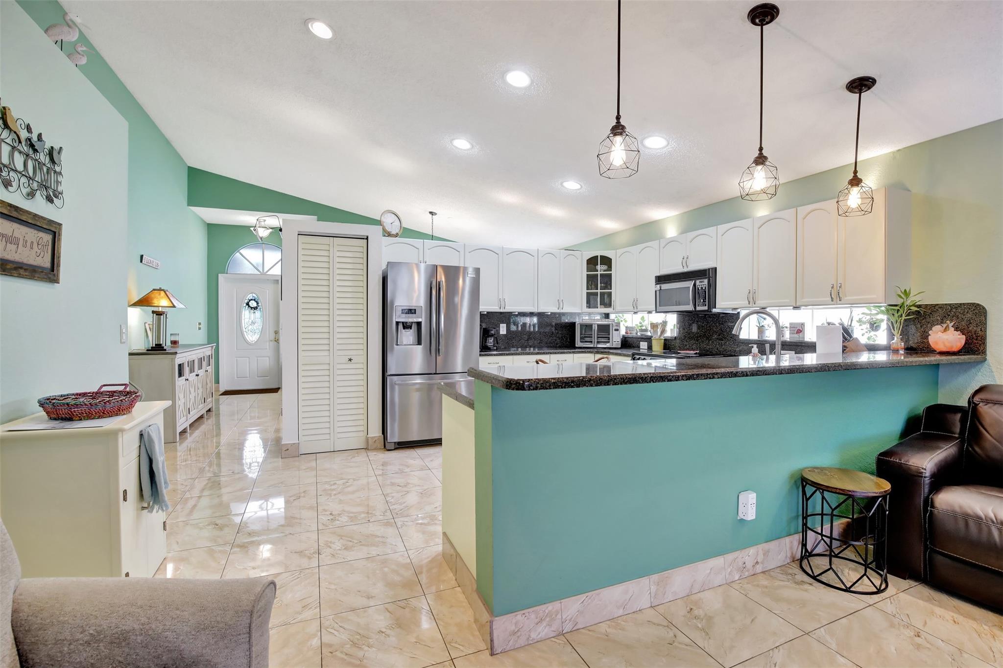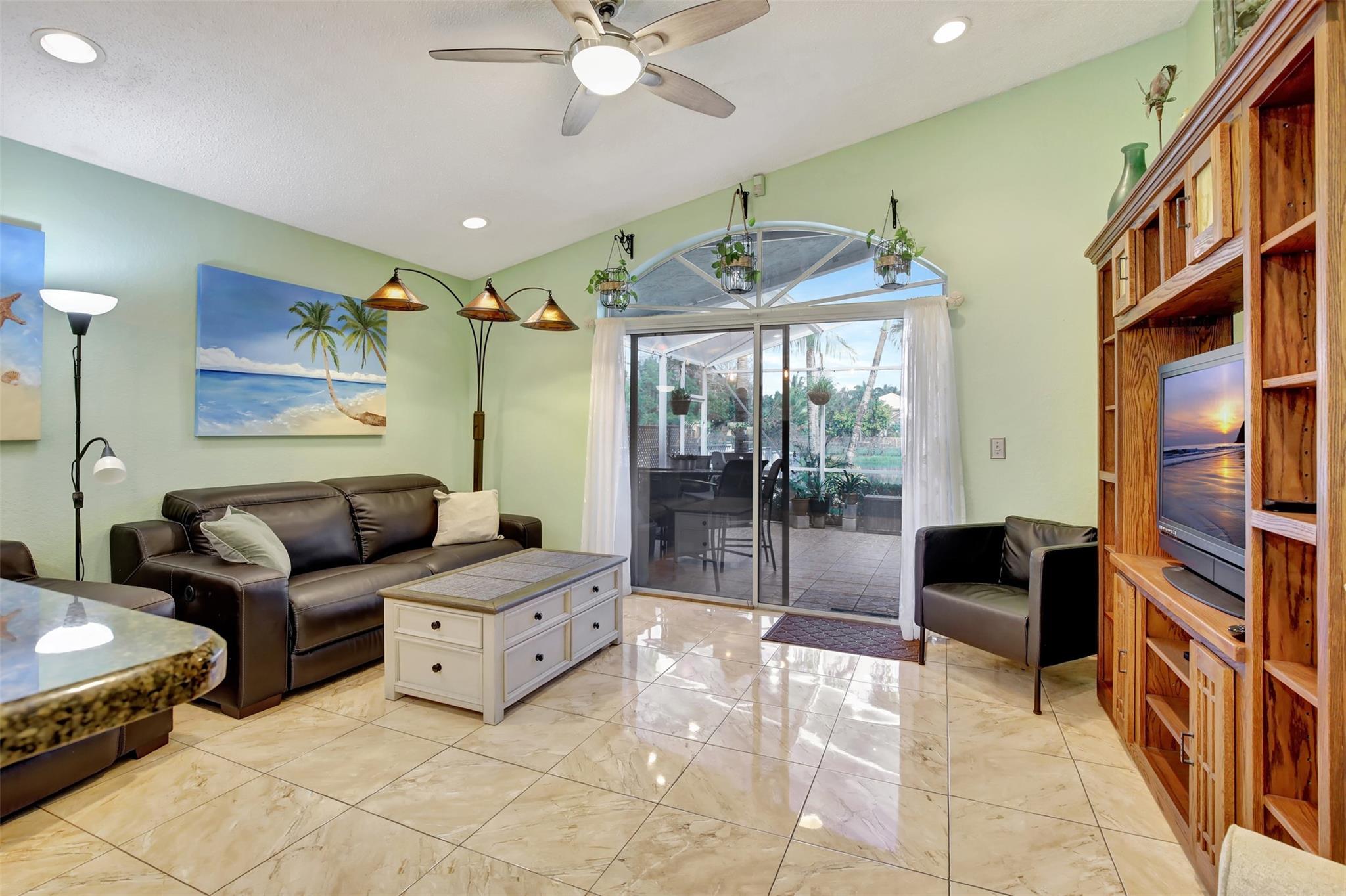 PRICE IMPROVEMENT! NEW roof, FRESH paint in and out, NEW IMPACT WINDOWS to be installed for you! Your Tropical Oasis Awaits! This Amazing 3 bedroom/2 bath home is great for entertaining. Enter the living/dining room and continue to the open concept kitchen/family room which flows onto the huge lanai on the lake. Tile flooring throughout. This gorgeous lanai is covered with “Florida glass” to keep you from the elements. Murphy Bed, sofa and desk remain for a great office/den and bedroom all in one! Two car garage has plenty of shelving and storage. Tankless water heater and ADT security ready. Many palm trees with garden lighting in your front and back yard for amazing ambiance! Great location in Silver Lakes, Coconut Sound with Community pool up the street, shopping and restaurants nearby.