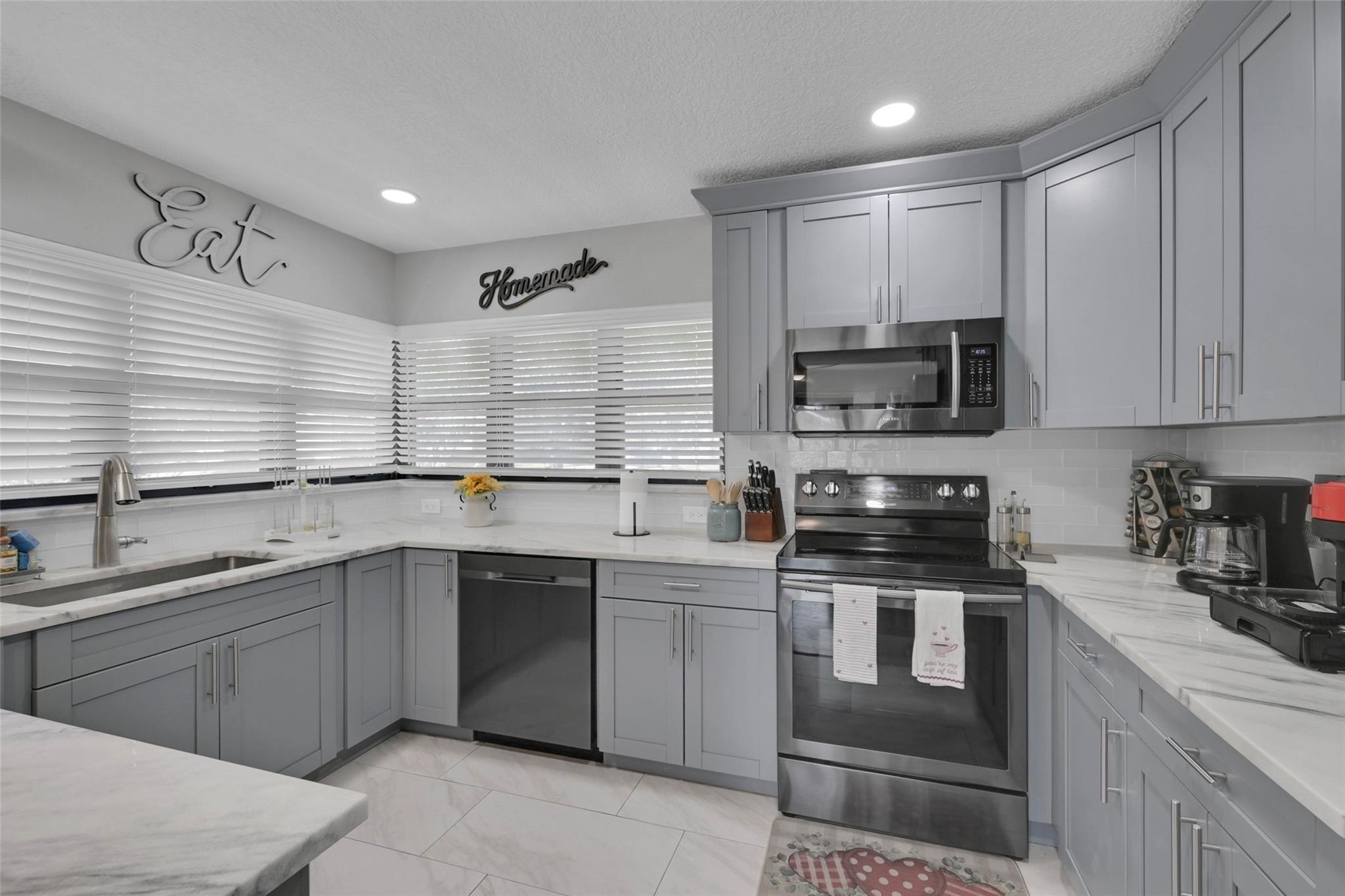 JUST REDUCED IMMACULATE TOTALLY UPDATED 3 BEDROOM 2 BATH HOME WITH FENCED IN YARD. NEW UPDATED STATE OF THE ART KITCHEN WITH QUARTZ COUNTERTOPS AND ALL STAINLESS STEEL APPLIANCES. LOTS OF CABINETS. BOTH BATHROOMS ARE COMPLETELY UPDATED. OPEN FLOOR PLAN. HURRICANE IMPACT WINDOWS AND HURRICANE IMPACT SLIDING GLASS DOORS AND FRONT DOUBLE DOORS. LARGE SCREENED IN PATIO PERFECT FOR ENTERTAINING SEPARATE LAUNDRY ROOM IN HOUSE. NEW ROOF 2021, A/C 2016, HOT WATER HEATER 2021. NEW GUTTERS ON FRONT AND SIDE OF HOUSE INSTALLED IN 2023. LOTS OF LARGE CLOSETS. AMAZING LOCATION CLOSE TO HIGHWAYS SHOPPING RESTAURANTS PARKS AND TOP RATED SCHOOLS. NO HOA!! READY TO MOVE RIGHT IN. OWNERS MOTIVATED RING DOORBELL AND CAMERA DO NOT CONVEY.