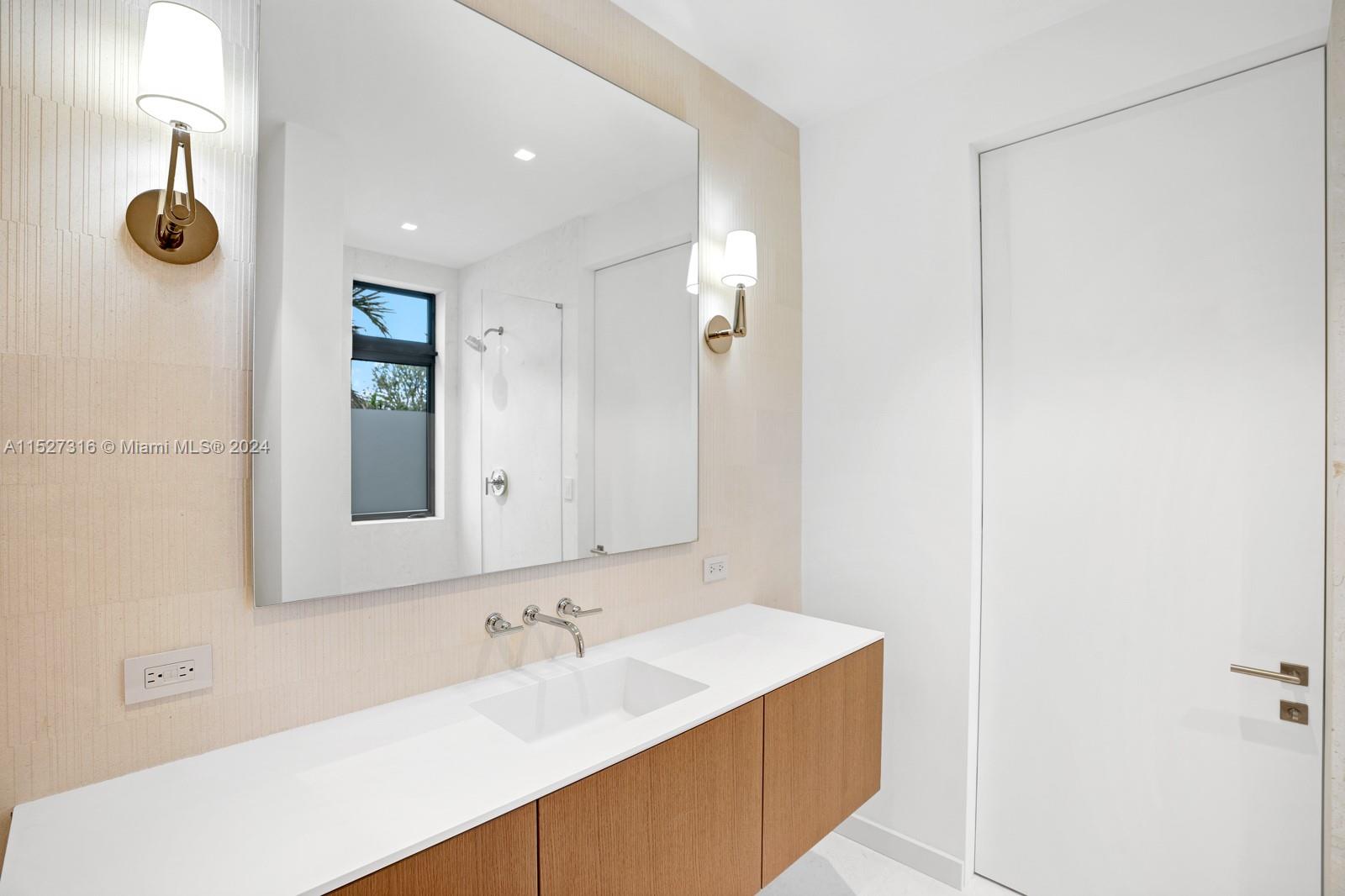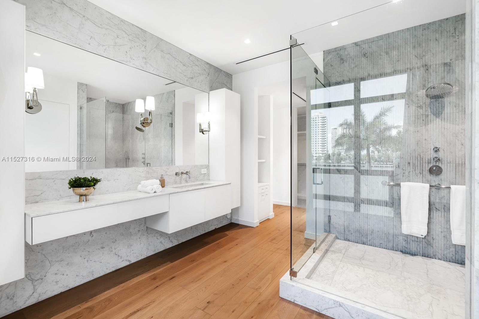 Located on guard-gated Allison Island, this Max Strang designed home was completed at the beginning of 2022. Sitting on a 16,200 SF lot, this 7,000 SF home boasts six bedrooms and nine bathrooms. The oversized primary suite, facing the Indian Creek waterway, has two separate closets and bathrooms. Custom kitchen cabinetry by Boffi, appliances by Wolf and Sub-Zero, this Smart home is powered by Savant. Shellstone and white oak flooring throughout are complemented by built-in, custom cabinetry. Interior design by Artefacto. Enjoy true outdoor living in your large backyard oasis with a full summer kitchen and heated salt water swimming pool. Home also has a whole-house generator. 75 FT on the water offers the ability to dock your yacht at home.
