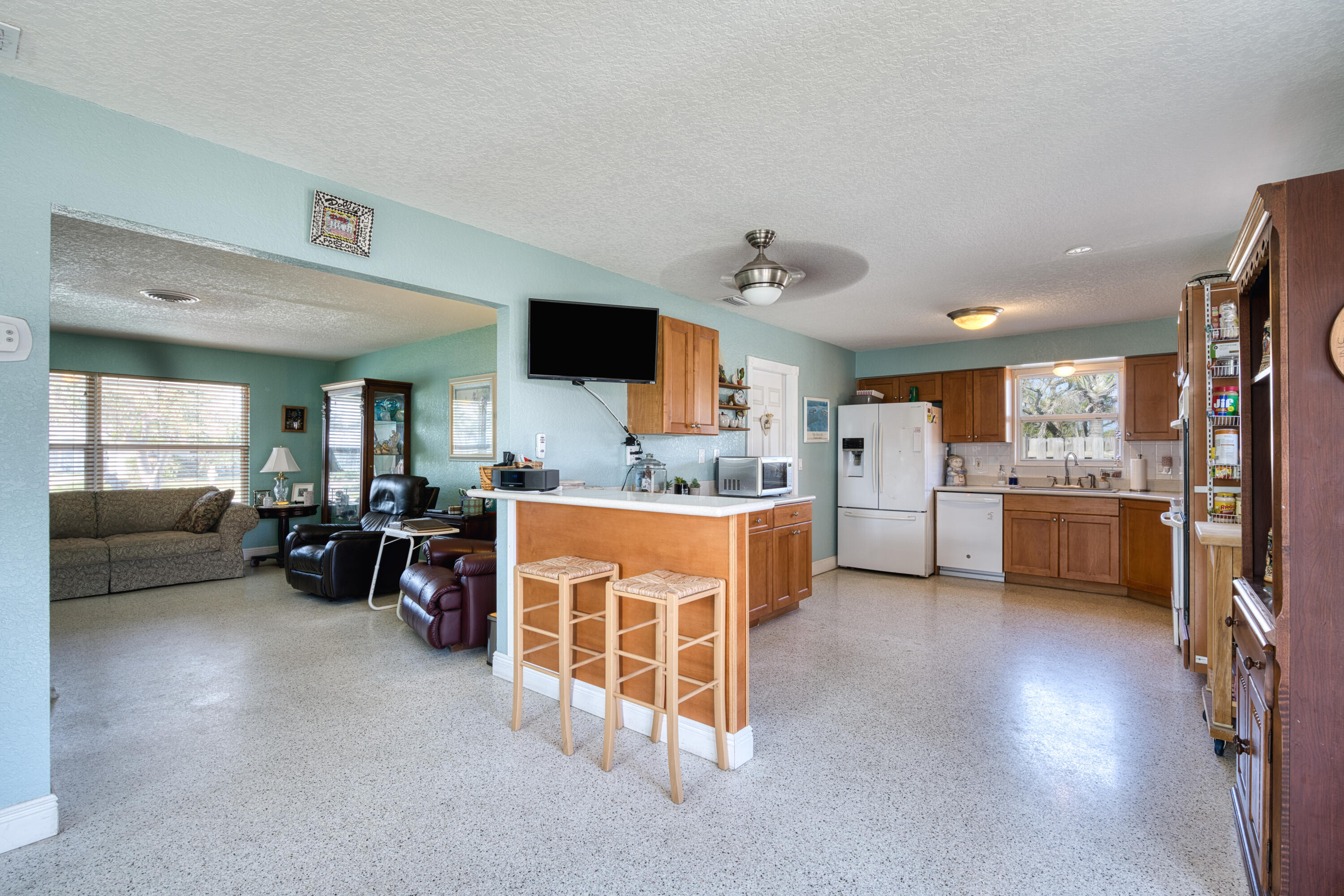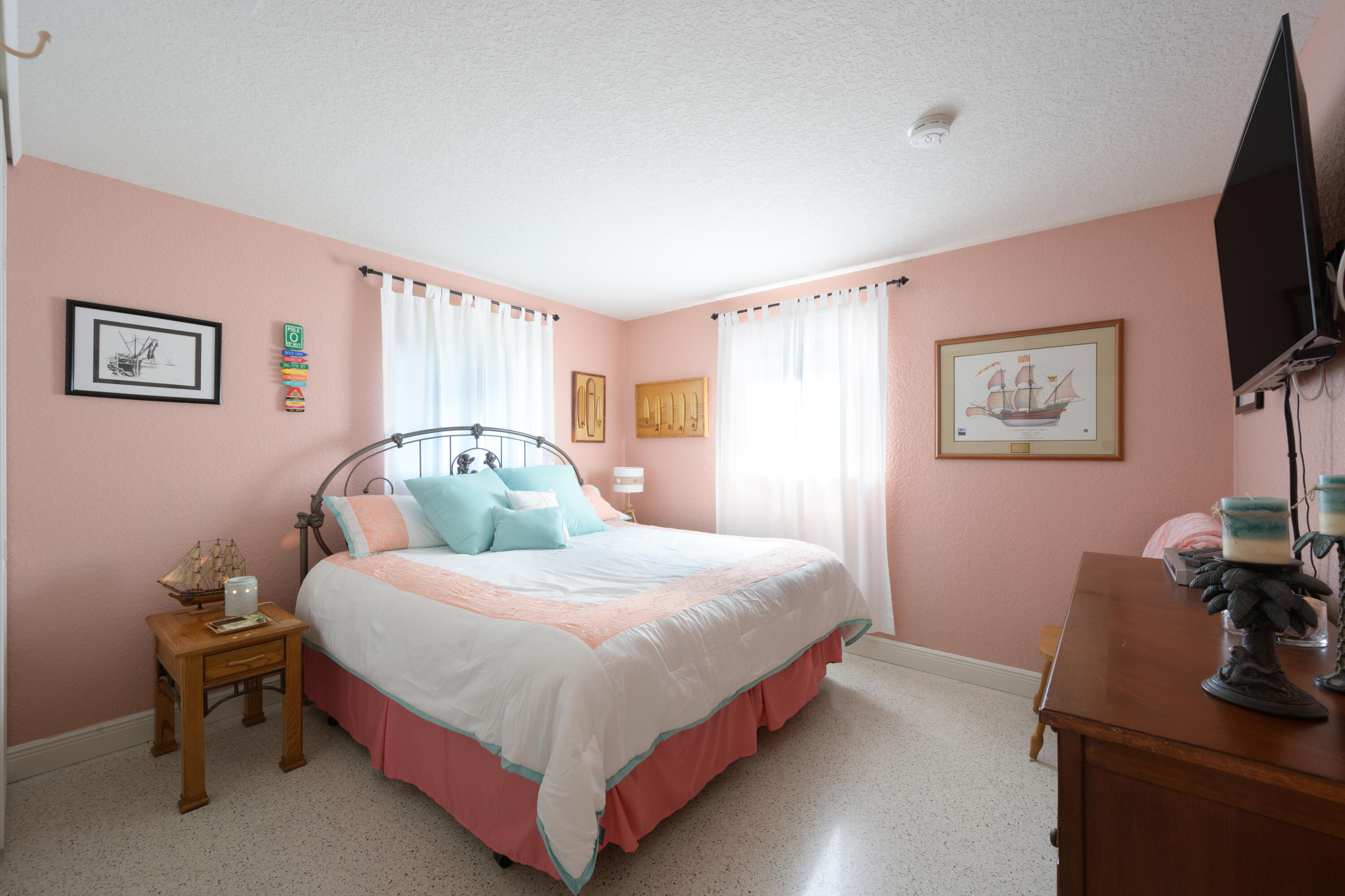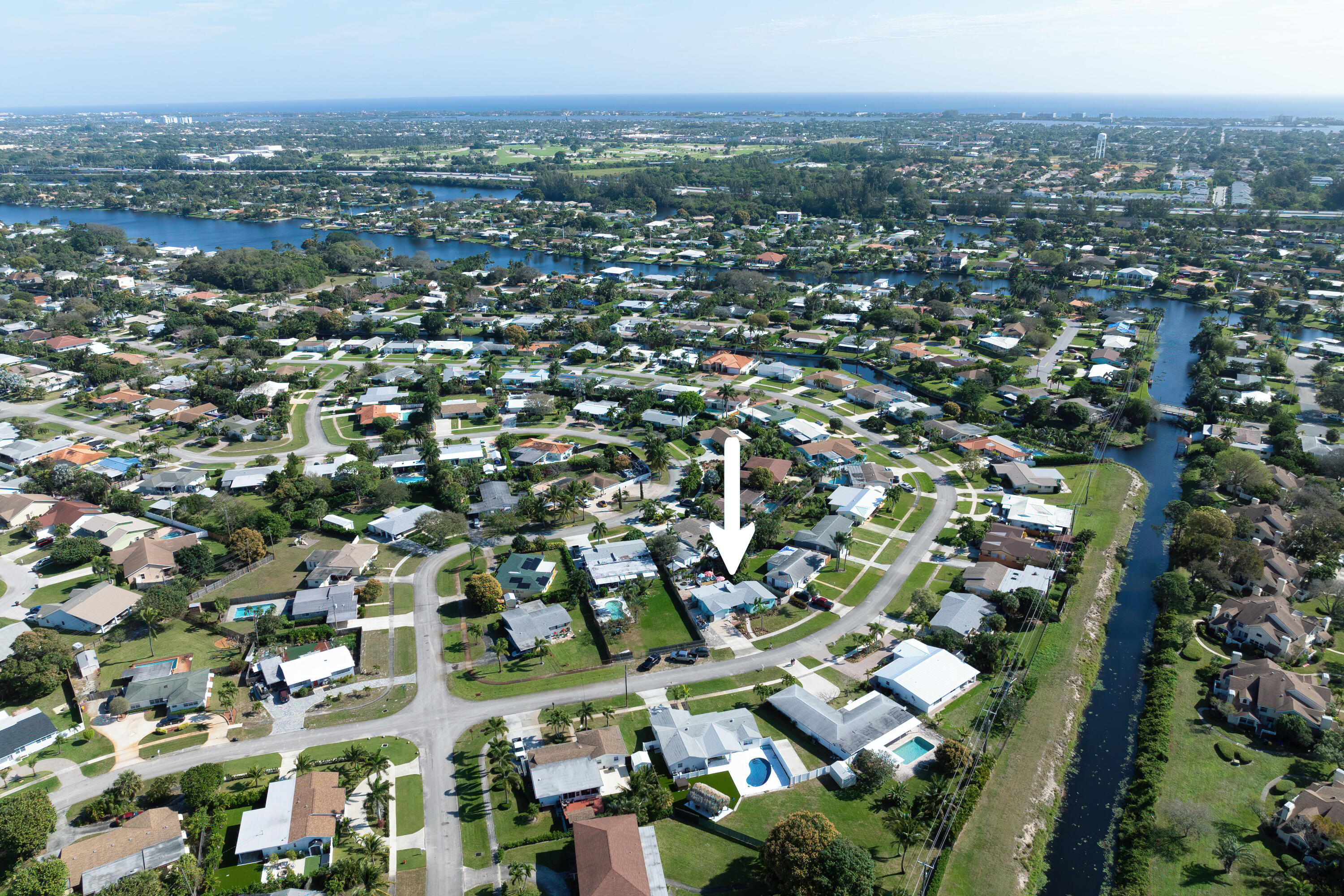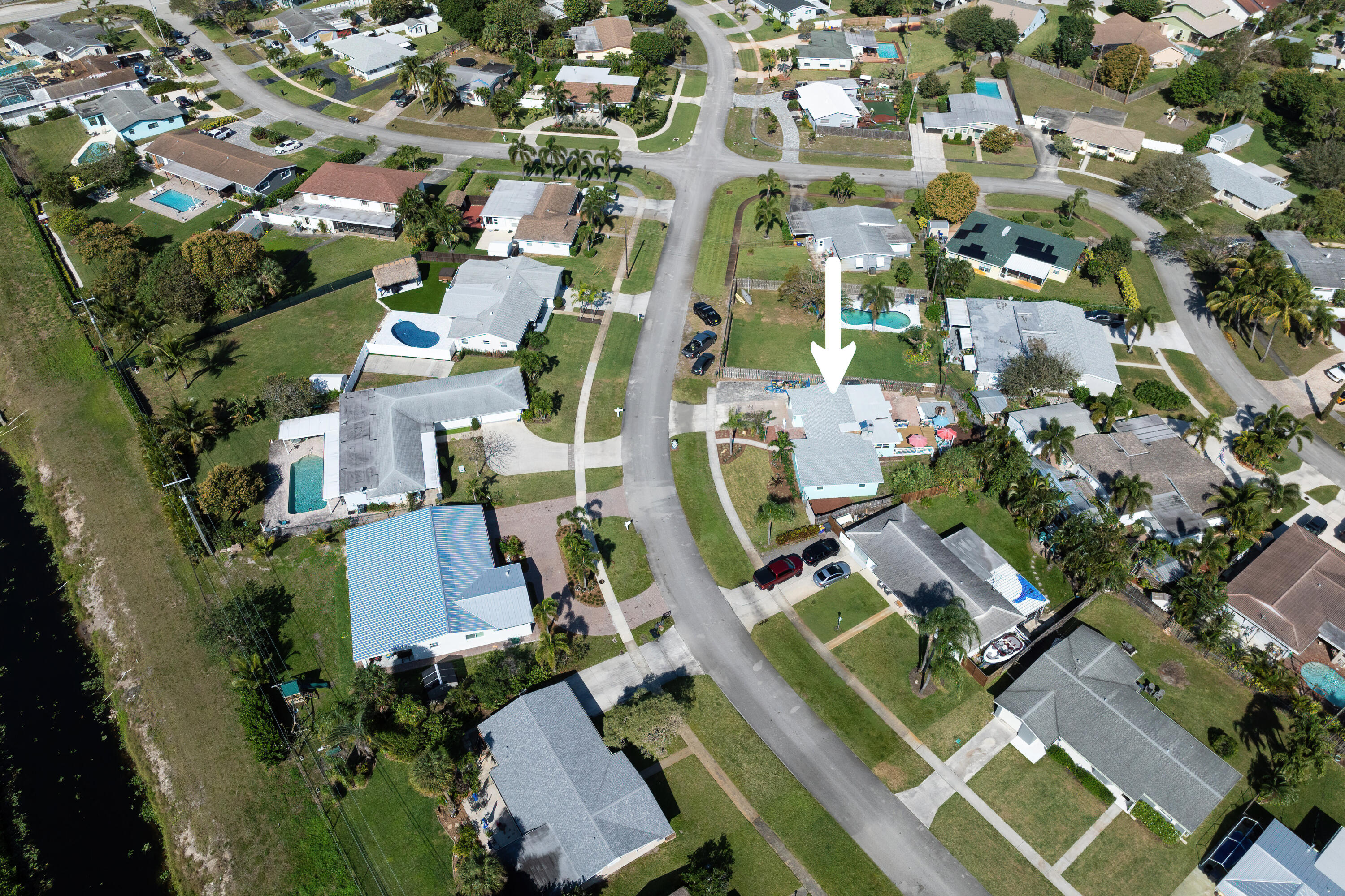 Charming mid-century, CBS ranch, 3 bedrooms, 2 baths, one c gar. French doors in country kitchen open to a huge patio (20x18) deck, with fire pit, and electric for your future hot tub. Very private back yard with fruit trees. Room for a 30' + boat or RV. Terrazo floors, double oven, corian counters. All hurricane impact windows/doors. New roof Jan 2024 with transferable warranty. Updated bathrooms with travertine. Palm Springs water and sewer. Lake Clarke area without Lake Clarke Shores taxes, handily located east of Florida Mango Rd s/of Forest Hill Blvd. Recently resodded and landscaped. No HOA. Priced at appraised value! Less than 20 mins. to LW Beach, Palm Beach, Bryant Park for boat launch,PBIA airport, outlet mall, or downtown WPB! Work or Play, Make it your own Margaritaville!