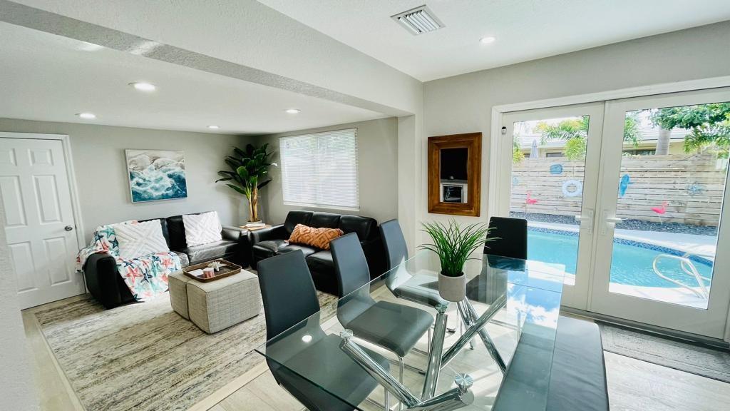 EAST OF US1 LARGE NEW IN 2021 DREAM HOME! 4 BEDROOMS 3 and 1/2 BATHS FOR LARGE FAMILIES OR LUCRATIVE VACATION RENTALS. THIS HOME IS IN THE HEART OF POMPANO BEACH ON A BEAUTIFUL STREET AWAY FROM MAJOR ROADS AND ONLY A HALF MILE TO THE BEACH! THIS PROPERTY WAS LUSHLY LANDSCAPED WITH A RESORT STYLE BACKYARD! IT IS AN ENTERTAINERS PARADISE VERY PRIVATE! LARGE POOL WITH HOT TUB AND AN OUTDOOR LIVING AND DINING SPACE. BRAND NEW SPRINKLER SYSTEM INCLUDED. BRAND NEW EXTENSIVE UPGRADES IN 2021 INCLUDING IMPACT DOORS AND WINDOWS, ROOF, INTERIOR LAUNDRY ROOM, AND NEWER HEATED POOL AND SPA! INQUIRE ABOUT THE FURNITURE AND IT'S EQUIPPED FOR YOU TO MOVE RIGHT IN AND ENJOY YOUR NEW HOME IN PARADISE! THIS HOME TRULY HAS IT ALL