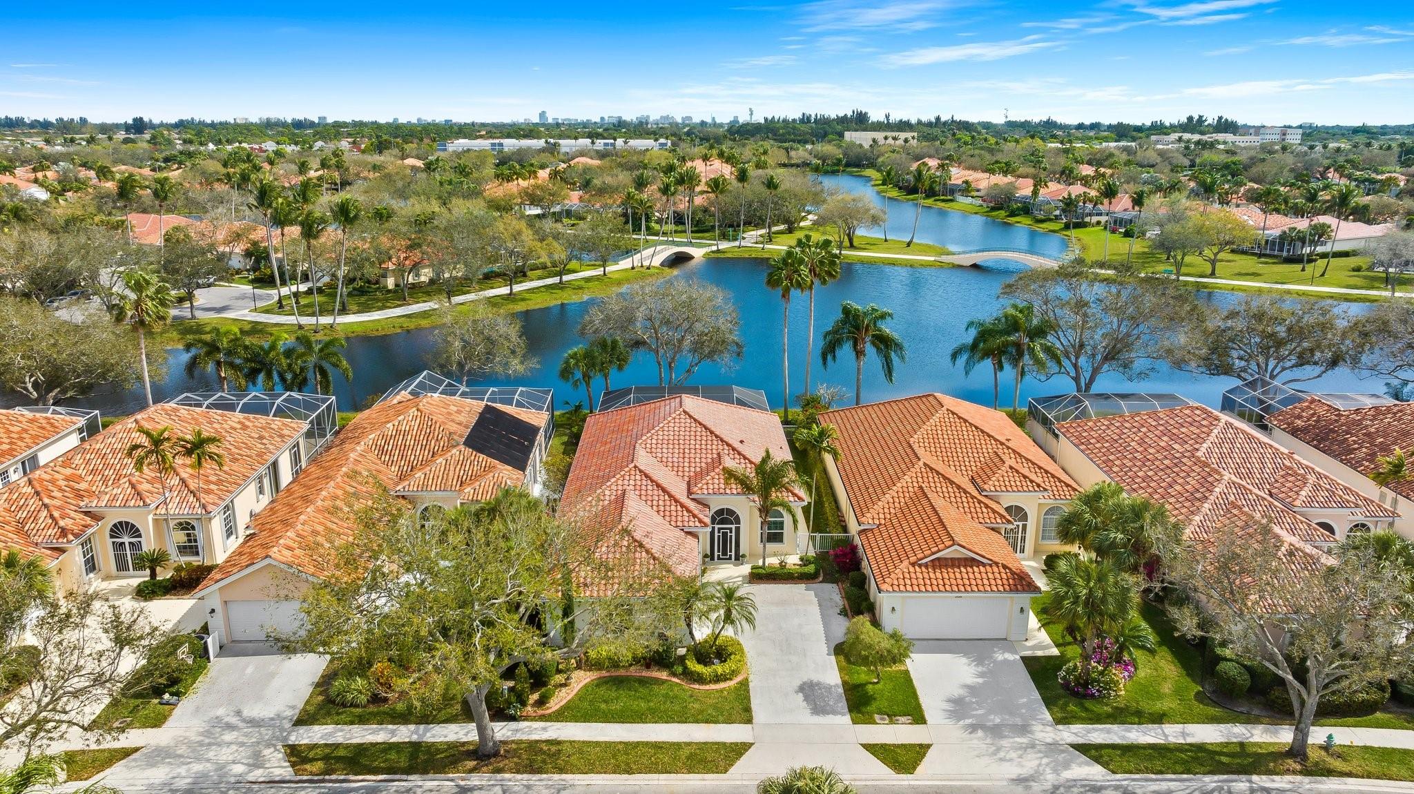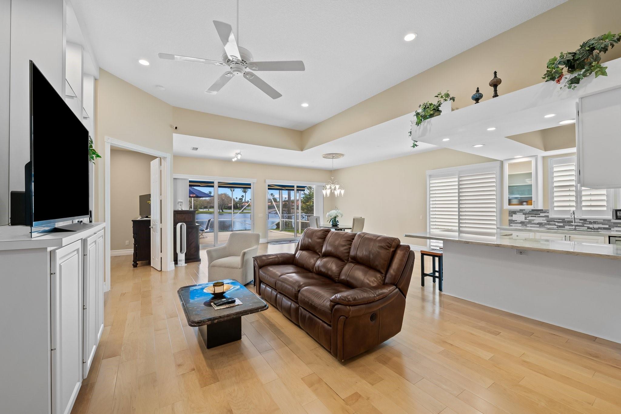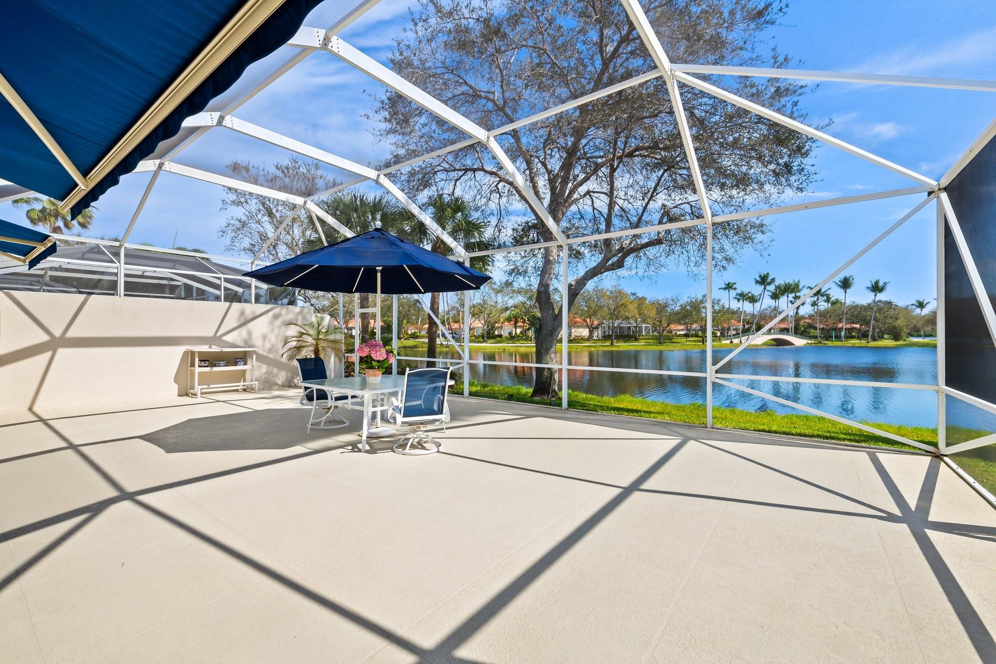 This is it, look no more! No expenses spared with this exceptional home. Spectacular Expanded Oakmont model presently featured as a 3 Bedroom w/Den &/or office 3 Baths. This prime pristine lot with Phenomenal wide water views along with beautifully landscaped bridges. Brand new 2024 Roof, Hurricane Impact windows & Doors thru-out, plantation shutters, Whole house plumbed with H2O Water filtration system, Wood flooring, Two 220 Charging Lines, California Custom Closets thru-out. Totally renovated kitchen with gorgeous Quartz countertops, Upgraded cabinetry, with plenty of storage. Upgraded bathrooms all with top of the line quality. Central Vac 10' Ceilings thru-out and 12' in Great room. Hi-hats galore. Spectacular screened in patio with retractable awnings. New Gutters & Doggie Door