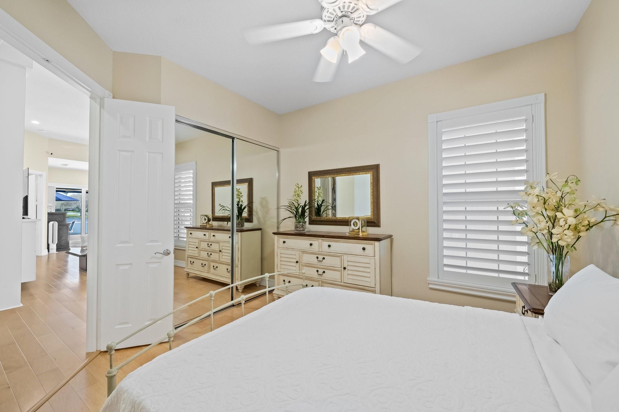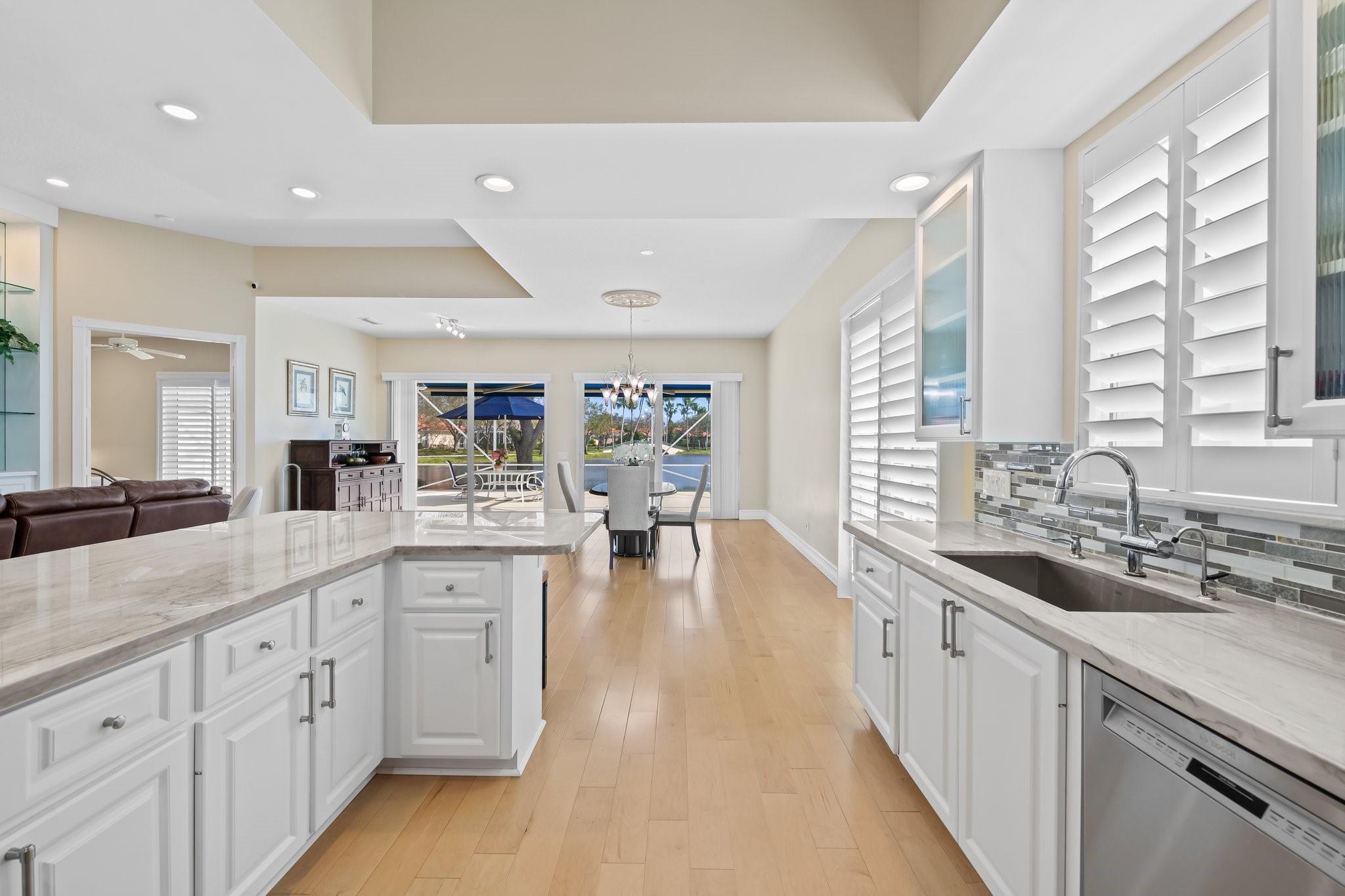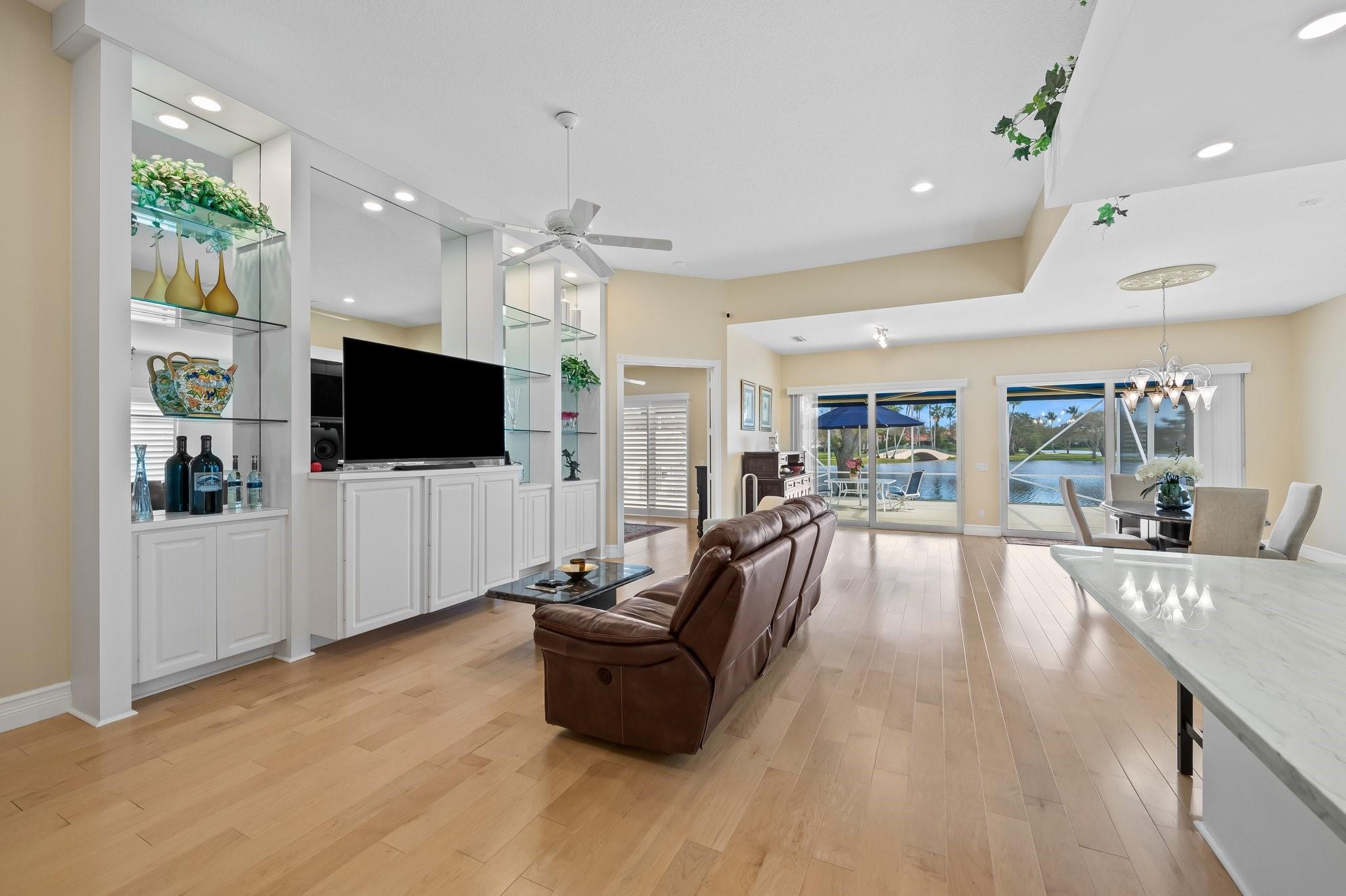 This is it, look no more! No expenses spared with this exceptional home. Spectacular Expanded Oakmont model presently featured as a 3 Bedroom w/Den &/or office 3 Baths. This prime pristine lot with Phenomenal wide water views along with beautifully landscaped bridges. Brand new 2024 Roof, Hurricane Impact windows & Doors thru-out, plantation shutters, Whole house plumbed with H2O Water filtration system, Wood flooring, Two 220 Charging Lines, California Custom Closets thru-out. Totally renovated kitchen with gorgeous Quartz countertops, Upgraded cabinetry, with plenty of storage. Upgraded bathrooms all with top of the line quality. Central Vac 10' Ceilings thru-out and 12' in Great room. Hi-hats galore. Spectacular screened in patio with retractable awnings. New Gutters & Doggie Door
