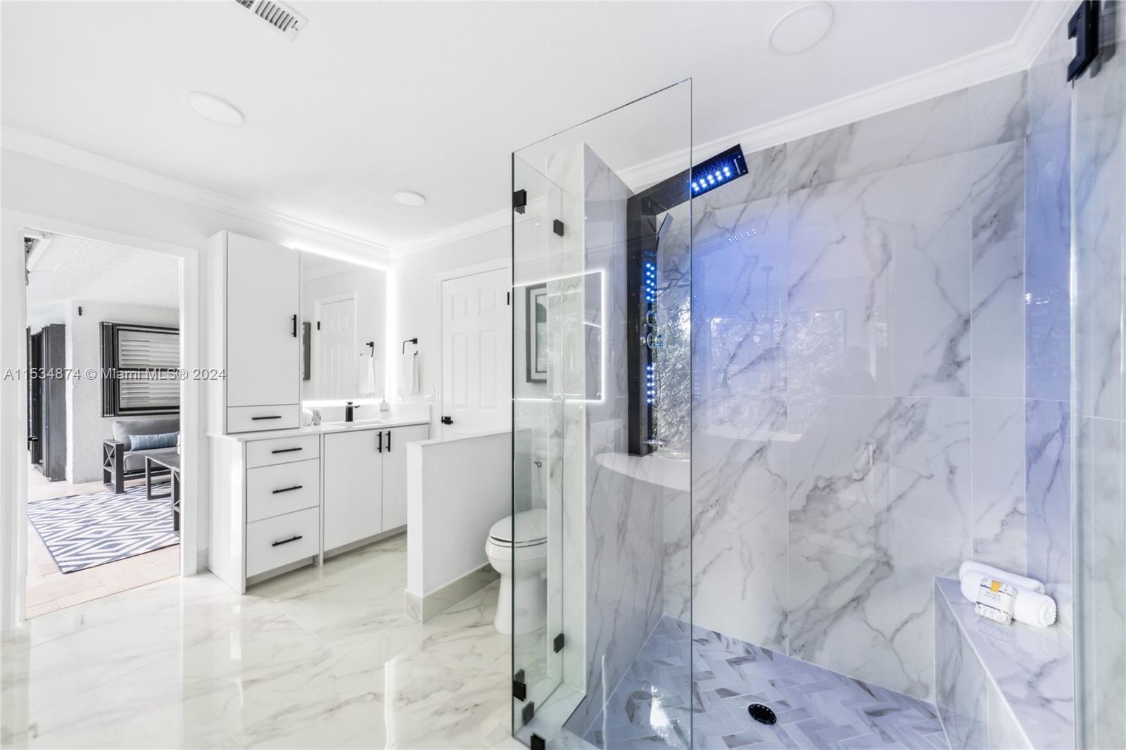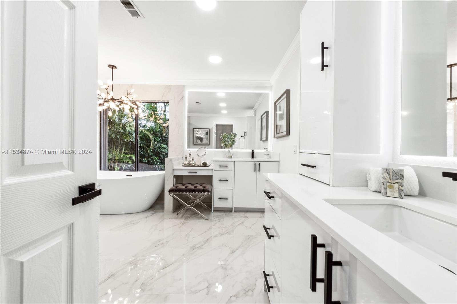 Embrace elegance & comfort in this meticulously renovated pool home located in the desirable Pine Landings neighborhood. Offering a seamless blend of indoor & outdoor living, this open concept residence features stunning water views & tranquil ambiance. Delight in modern design highlighted by an indoor garden, new flooring, crown molding & marble pool pavers. The gourmet kitchen is equipped with quartz counter tops & soft close cabinetry complimented by ample natural light. Luxurious touches include a state of the art shower system, soaking tub & custom cabinetry throughout. Recent updates include a 2023 AC, Hot water heater & dishwasher. Newer pool pump, accordion shutters, security cameras & fireplace. Located within walking distance to nature trails, sports center & waterpark. NO HOA