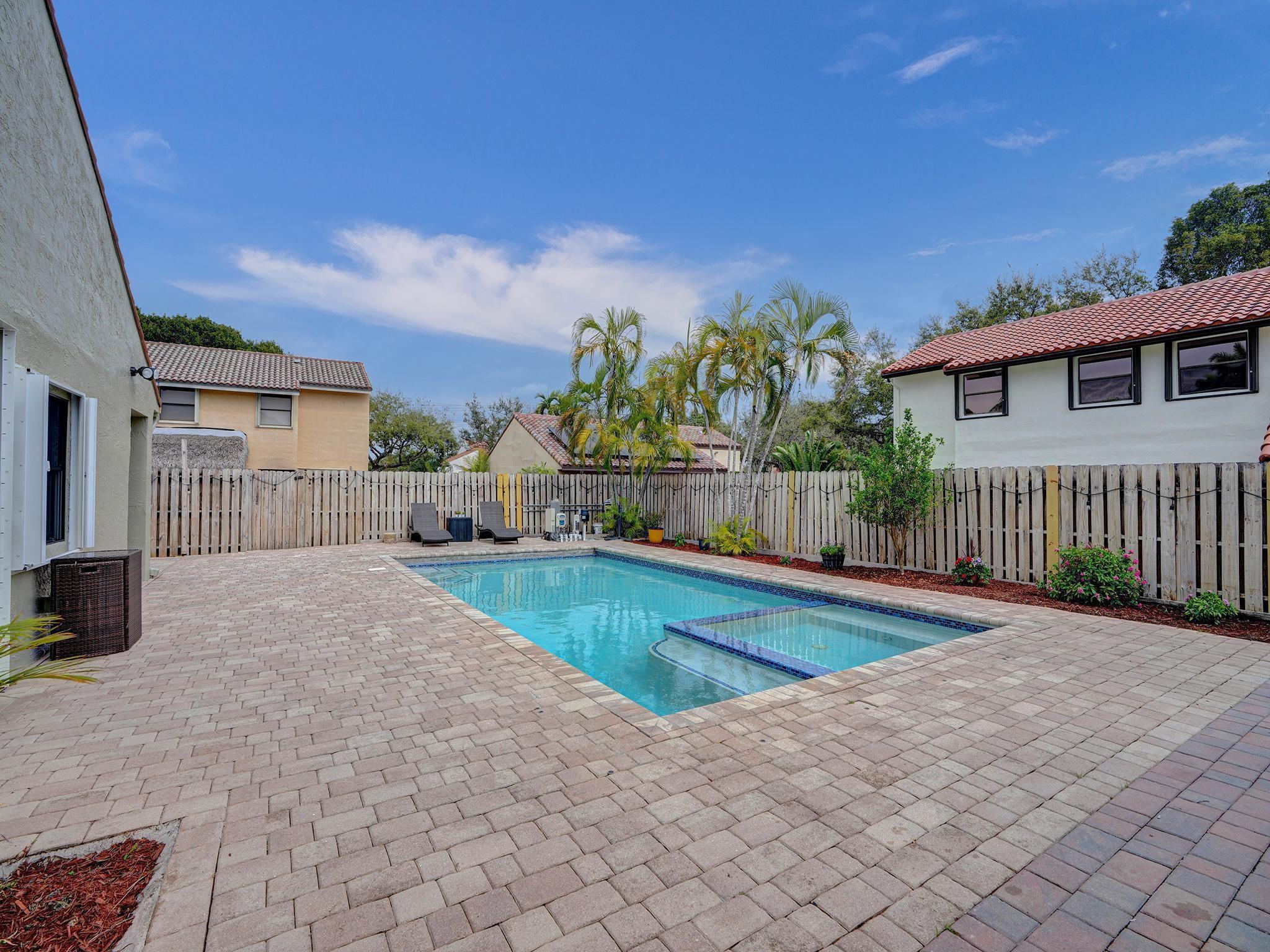 Stylish & Open updated pool home with huge custom pool on Cul du Sac. Plenty of natural light, vaulted and volume ceilings, laminate wood flooring throughout. Foyer entry opens to big living & dining room being used as a great room overlooking the covered patio, pool/spa and private low maintenance fenced yard. Open kitchen w tile counters, wood cabs overlook the pool and patio. Spacious Master Suite w views of pool, good sized bathroom with huge shower & large cedar lined closet. Generous secondary bedrooms off family room with adjacent updated bath with tub. Very large custom salt chlorinated pool and spa with child fence, big paver patio & sun deck. Great Rock Creek location close to parks, top rated schools (walk to A rated elementary school) and area shopping.