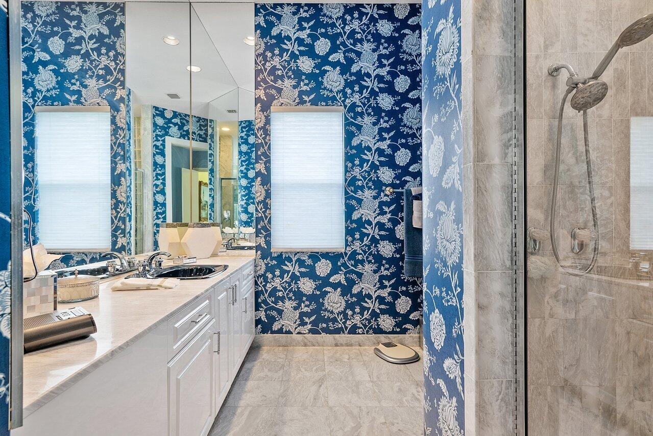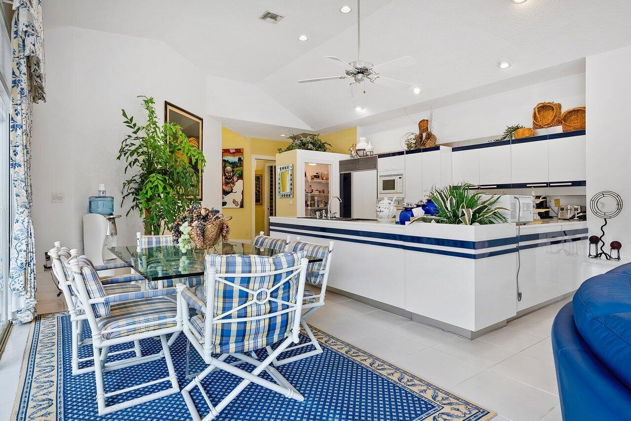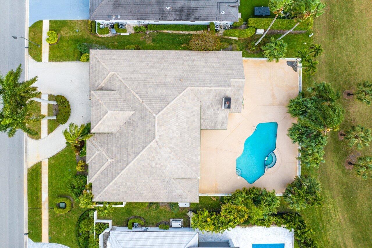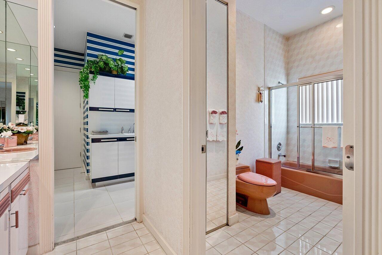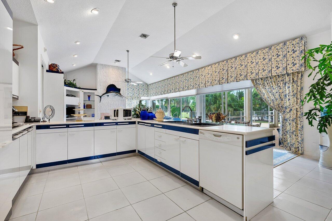 Over 4000 square feet with soaring ceilings and high windows! Spacious split bedrooms - each with ensuite bathrooms plus a large office (has 1/2 bath attached can be 4TH BEDROOM). Primary bedroom boasts his & her bathrooms & two large walk-in closets. Beautiful family room off kitchen has fireplace and natural light from the floor-ceiling windows. A screened porch leads to a spectacular pool & patio with gorgeous golf course views. Great layout! Roof replaced in 2021 - contemporary flat tile! Full hurricane shutter protection & Generator! Desirable boutique Bocaire Country Club is mandatory membership including GOLF - active and inclusive community with high end amenities. Bocaire is eastern club close to beach, restaurants, I95, shopping and in an A rated school district!