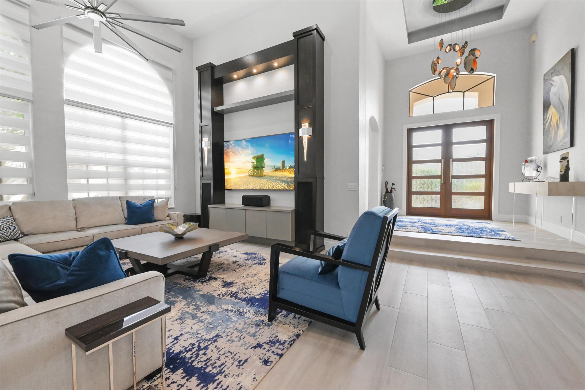 Elegant 3-bed, 3-bath home completely renovated and ready for move in! Enjoy new flooring, a new kitchen and new bathrooms, a custom entertainment center, built out closets, custom office a 5-year-old roof, a generator, accordion storm shutters, epoxy garage flooring and a custom garage system for organization and storage. The renovated pool deck with a new pool heater, new pool deck, new pool tiles and new marciting, overlooks a stunning ( I mean stunning!) water and golf view. Mandatory membership to Woodfield Country Club in the amount $120,000 (one time) plus annual dues.