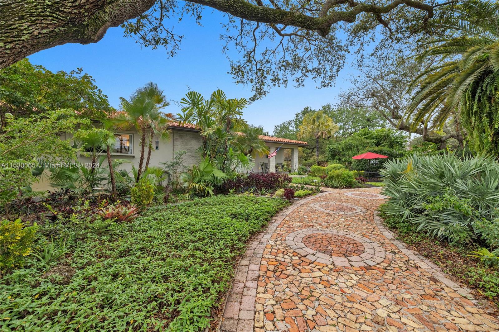 This is what everyone is looking for...Miami Shores retreat w/beautiful OPEN floor plan and lots of natural light & some wood floors. Newer kitchen over looking spectacular lush, mature landscaping w/charming Chicago brick circular drive & winding walking paths through butterfly gardens! 2 master suites! Both bathrms updated! Private cul-de-sac tucked away located on 11,000+/- sq.ft. of land w/fenced back yard. Plenty of ROOM for swimming POOL! Bonus space-HUGE 600 sq.ft garage for total of 2600+/-sq.ft.! Newer impact windows & doors. Pristine condition and LOTS of expansion possibilities --Grab this amazing opportunity! Pleasant walk to neighborhood schools of Mia Shr Elementary+St. Rose of Lima+Miami Country Day School...and close stroll to downtown Miami Shores restaurants +shops.