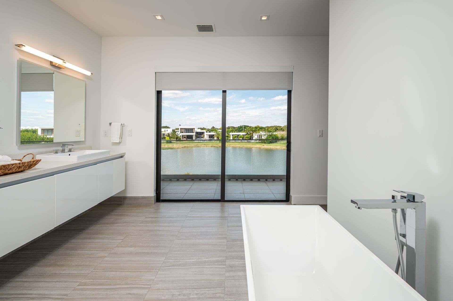 A Modern Masterpiece nestled within the exclusive enclave & gated community of Botaniko Estates in Weston. This newly constructed home designed by world renown architect Chad Oppenheim is just remarkable. Best corner location with beautiful lake views. The spacious open floor plan radiates with natural light and provides over 7,283 sqft of total construction (4,301 under air & 5,044 adjusted).  Residence offers 5 en suits + office and 6.5 baths. Oversize 3 car garage and extended driveway. Gourmet chef-inspired kitchen with gas stove, top of the line appliances, including wine cellar and built in coffee machine. Step outside to you private outdoor oasis with oversized pool, extended covered patio and summer kitchen. *** Impact windows & doors ***