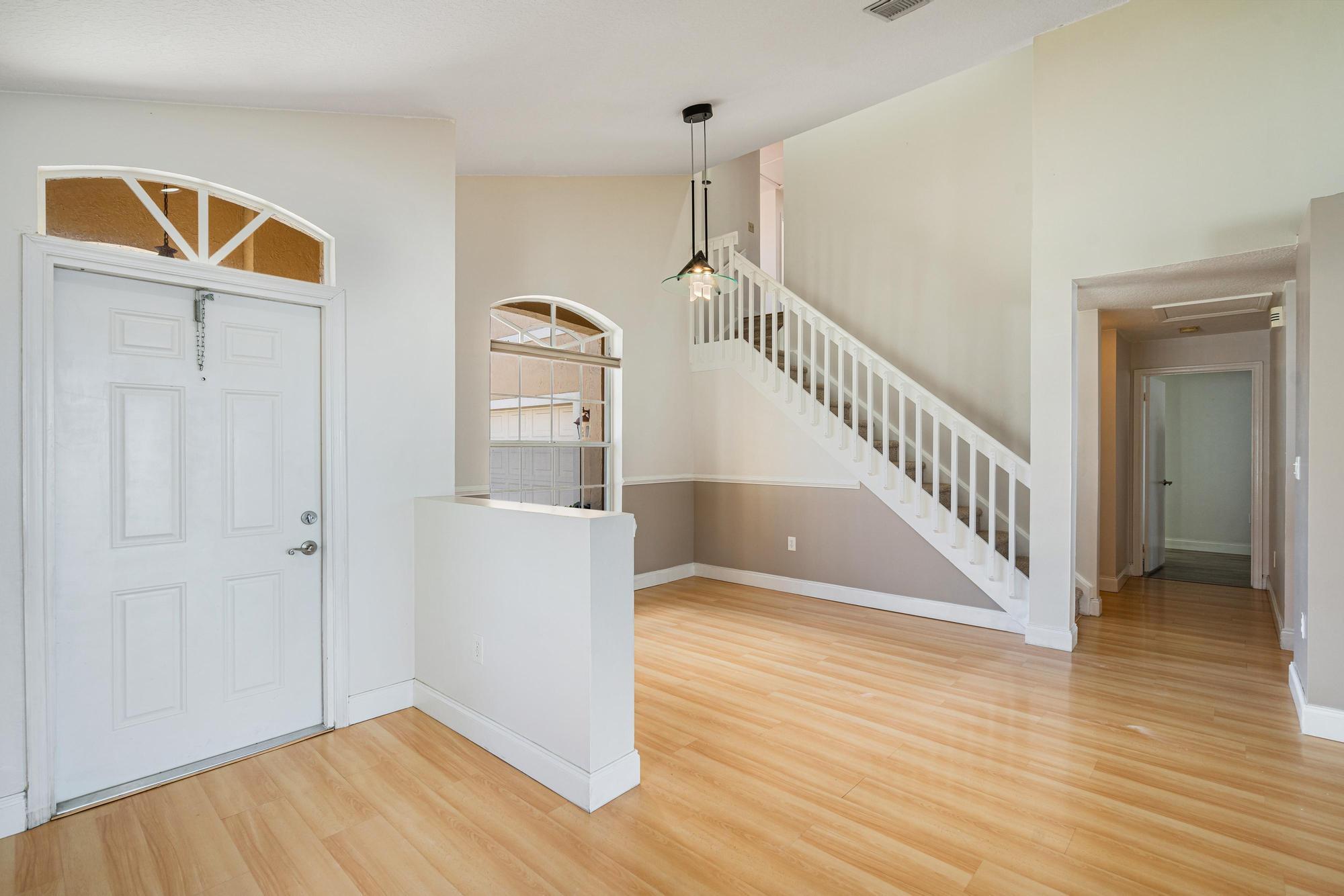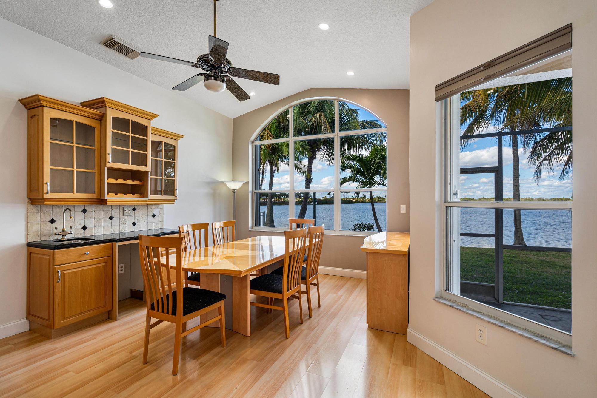 Rarely available waterfront home in Silver Lakes Community with stunning water views and easy access to one of the largest lakes. Enjoy panoramic lake views from the spacious kitchen and dining area, featuring wood cabinets and updated stainless steel appliances. Seamless indoor-outdoor flow to the screened-in patio is perfect for entertaining. There is an upstairs den that can easily be converted into a Fourth Bedroom. Recent upgrades include newly renovated guest, upstairs, and master bathrooms, along with updated A/C and water heater systems. Conveniently located near A+ rated schools and with easy access to clubhouse, pool, tennis, and various amenities.