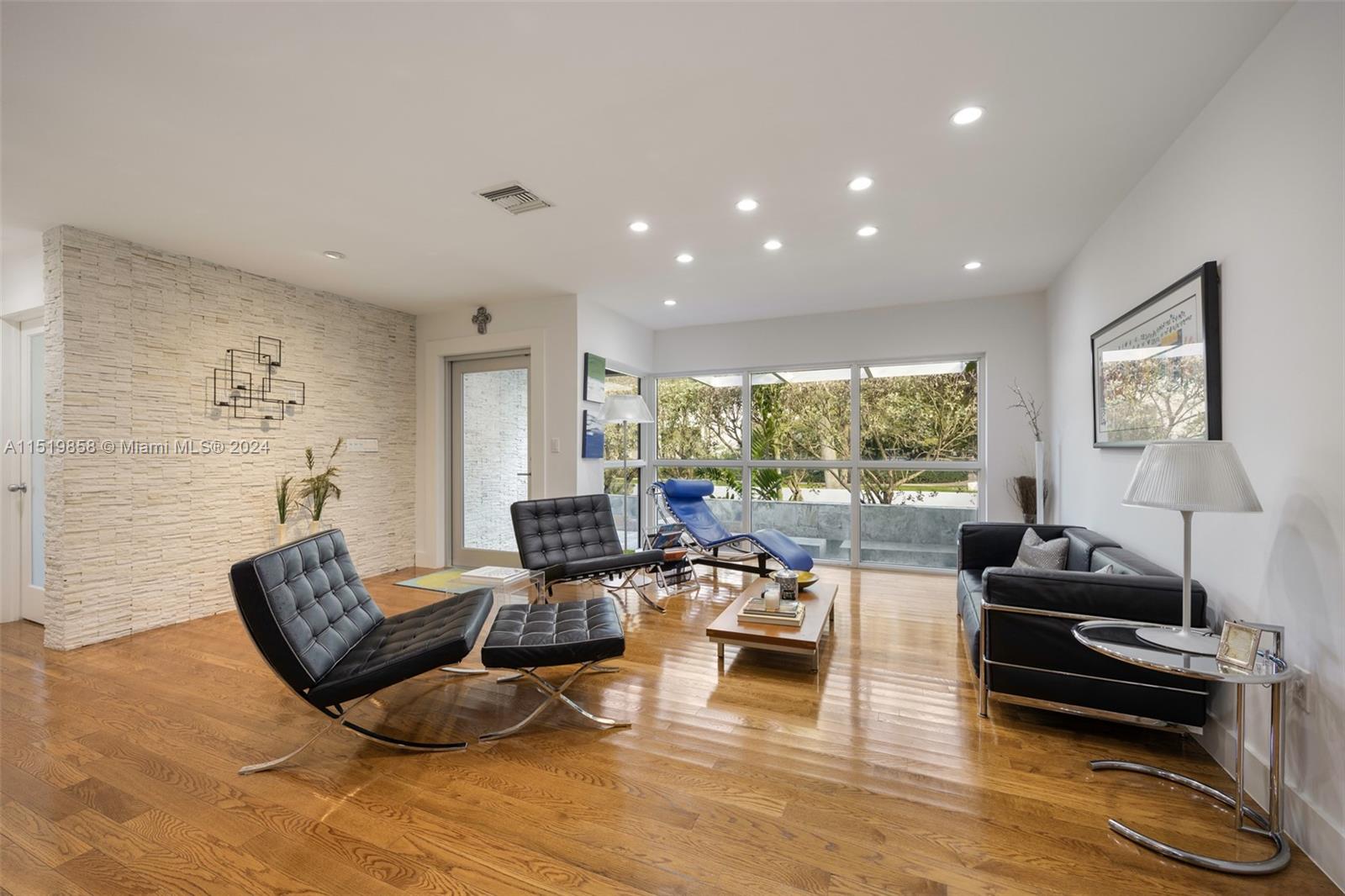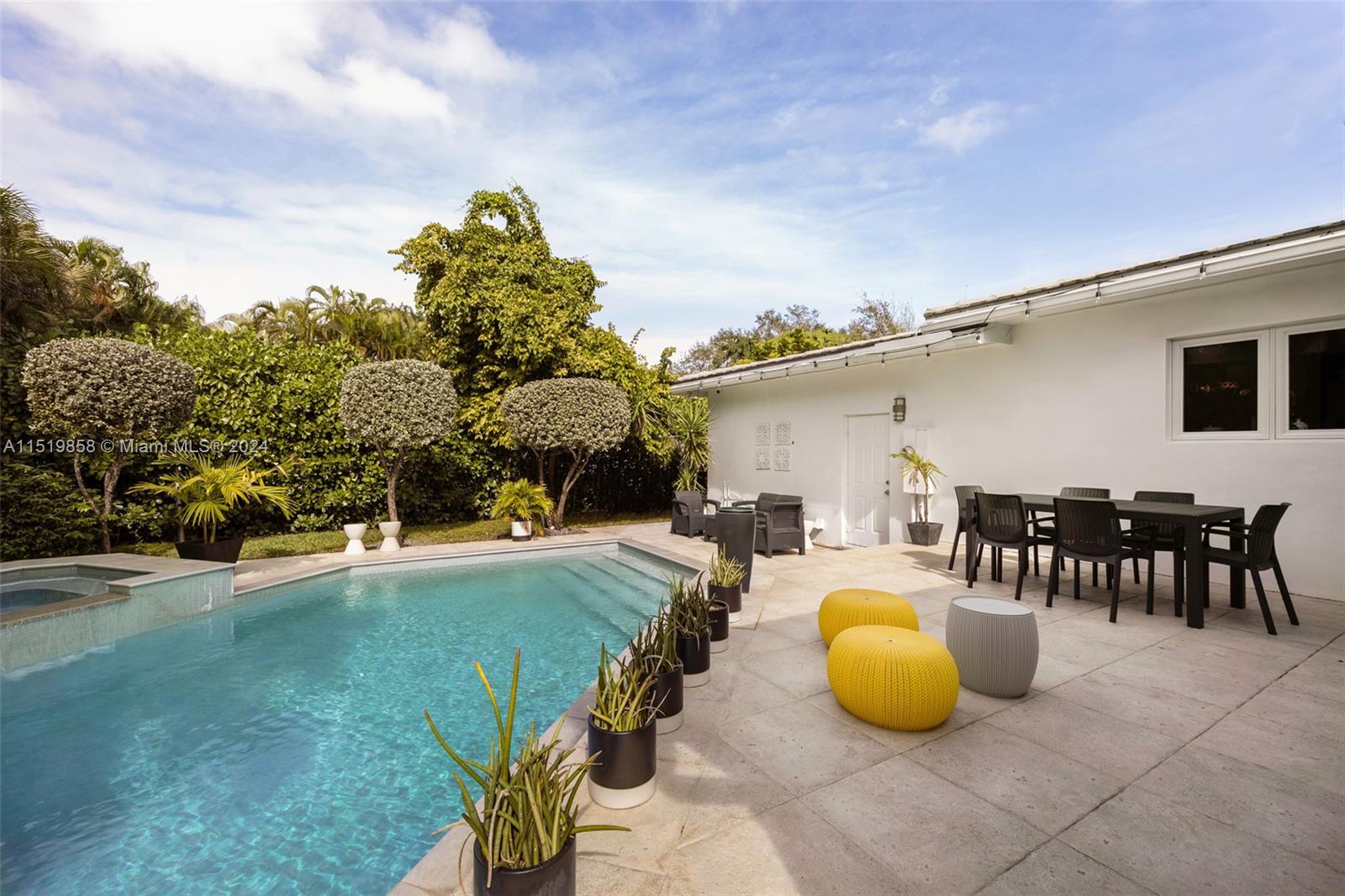 This modern mid-century style home in the sought-after South Coral Gables neighborhood is a true gem. Updated in 2008, this property seamlessly blends contemporary amenities with the timeless appeal of mid-century design. Boasting 5 bedrooms and 4 bathrooms, this home provides ample space for both privacy and shared moments. The addition of a den/loft office adds versatility, making it an ideal space for work or relaxation. The floor-to-ceiling impact windows and doors not only flood the interiors with natural light but also offer stunning views of the surrounding landscape. The open floor plan is a highlight, creating a fluid and dynamic living space that is perfect for entertaining.