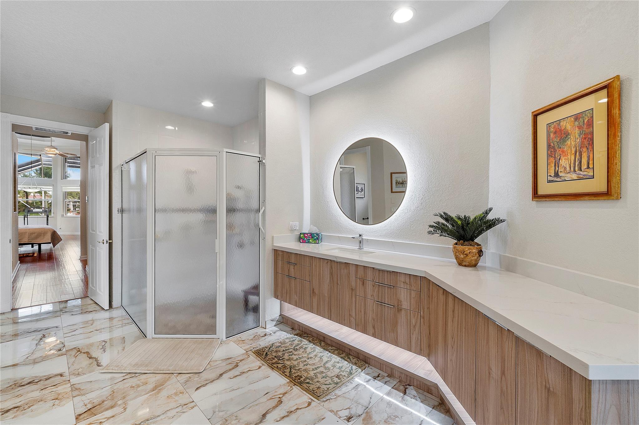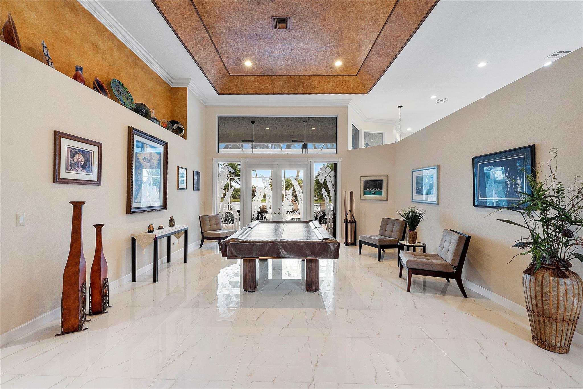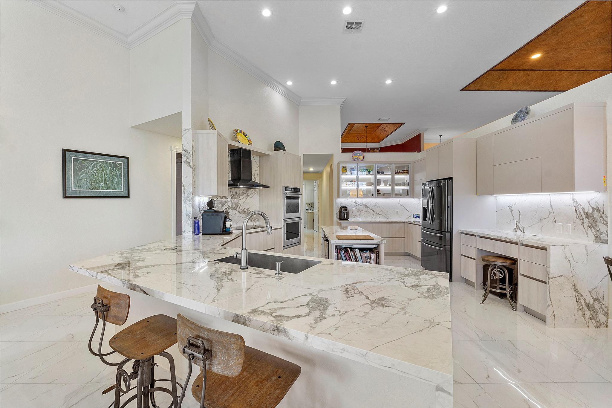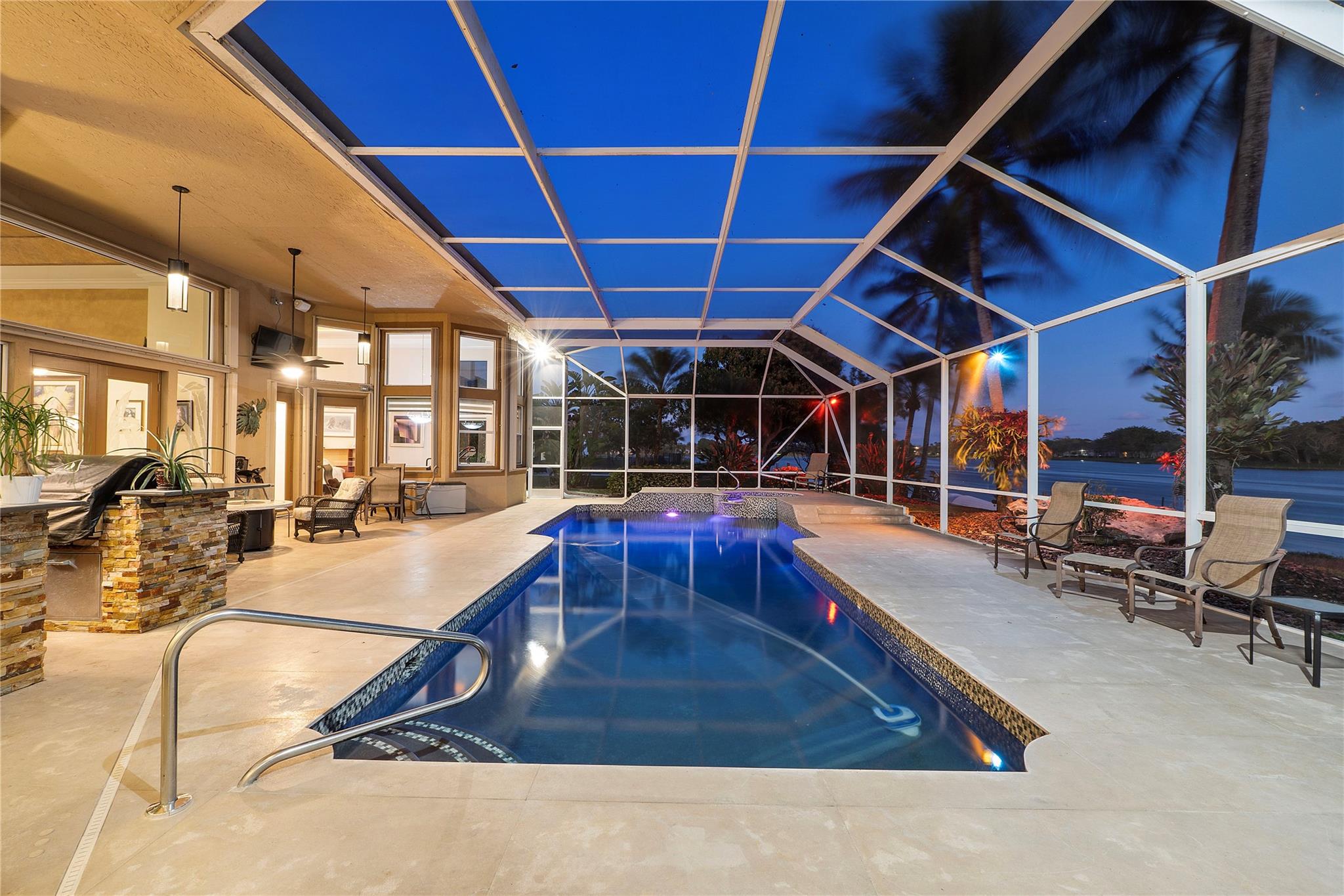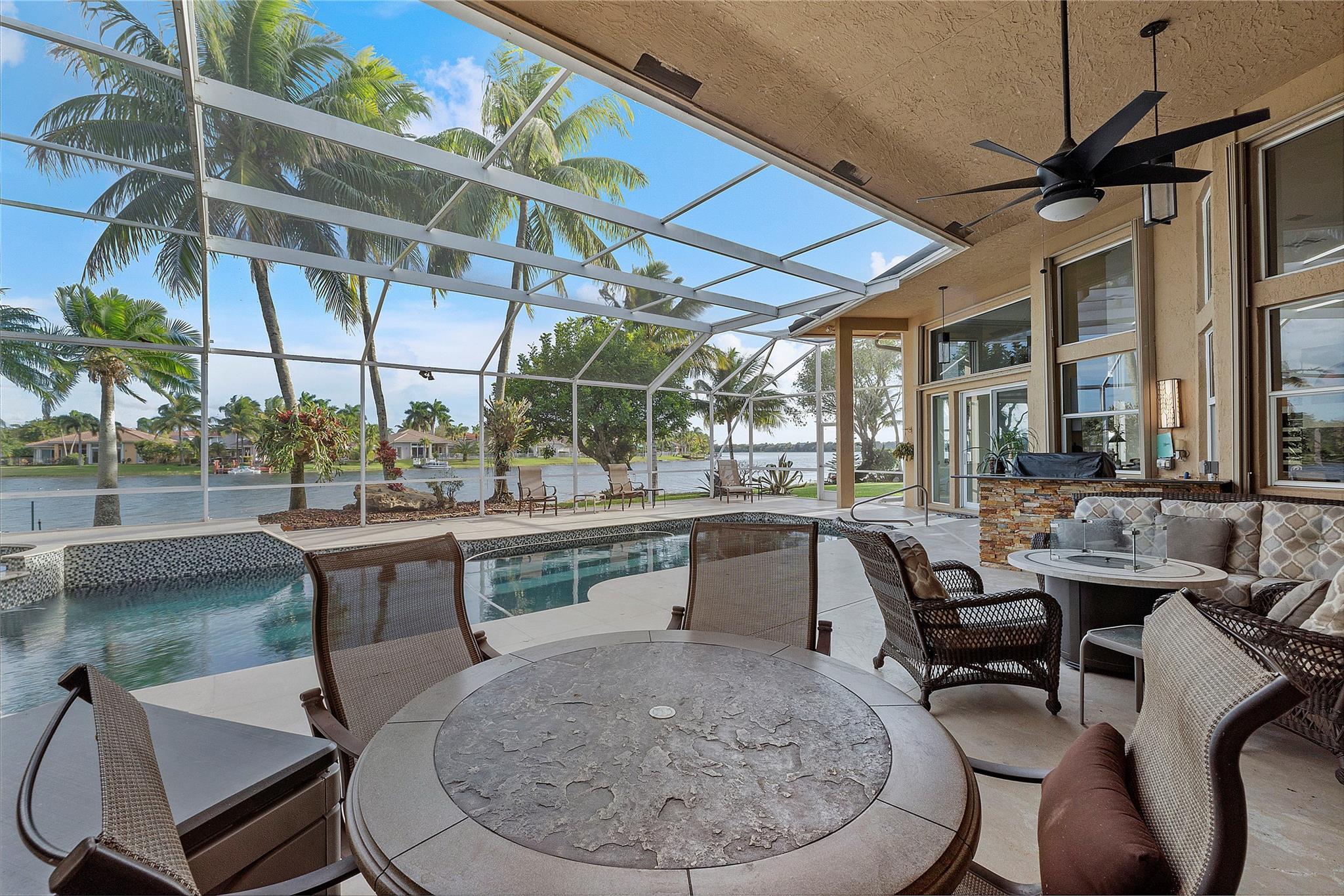 ON 125 LAKE, TOTALLY REMODELED IN LAST 3 YRS! Like New! Amazing Views of 125 acre lake! New Roof 2021! New Kitchen with Porcelain Counters with waterfall accent, Island, Soft open and close custom cabinets, all new Appliances, Double Oven and much more. New flooring throughout home, wood in bedrooms. Screened Pool-Spa Remodeled with new diamond brite, new deck, salt chlorinator and new pool heater. Summer kitchen with Grill and Refrigerator. New Primary Bath with custom floating cabinets, undercounter lighting and Lighted mirrors. Spacious Primary bedroom with sitting area and custom lighting, walk in closets with built ins. Secondary Bathrooms remodeled. Triple split bedroom plan. Huge Circular driveway. Ac's 2017 and 2019. Combination of Impact glass and Accordian shutters.