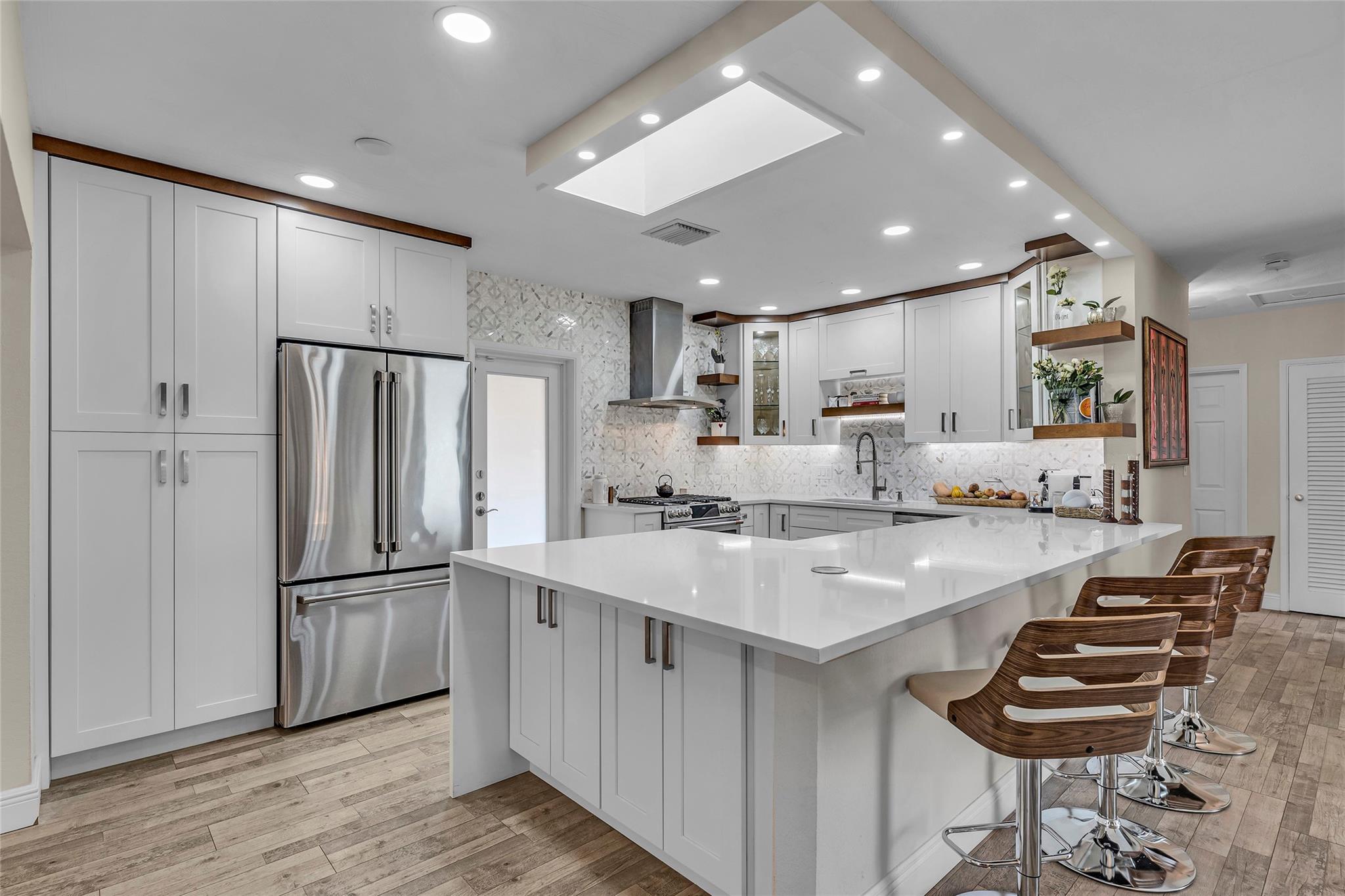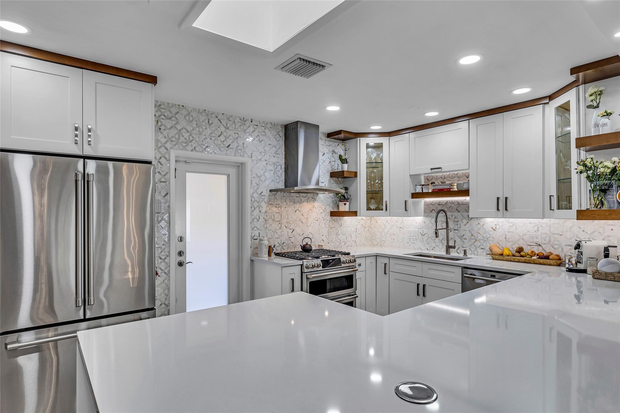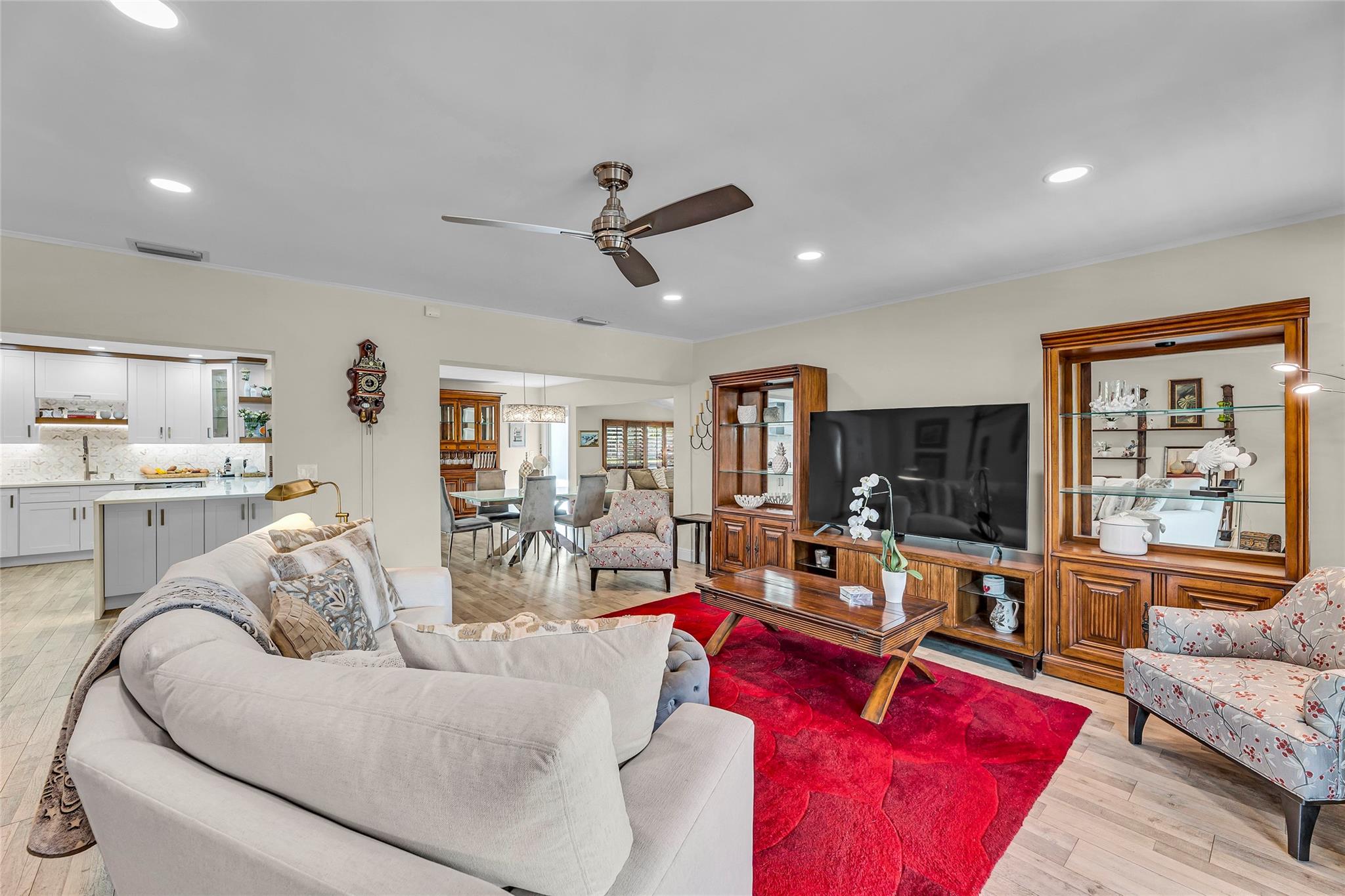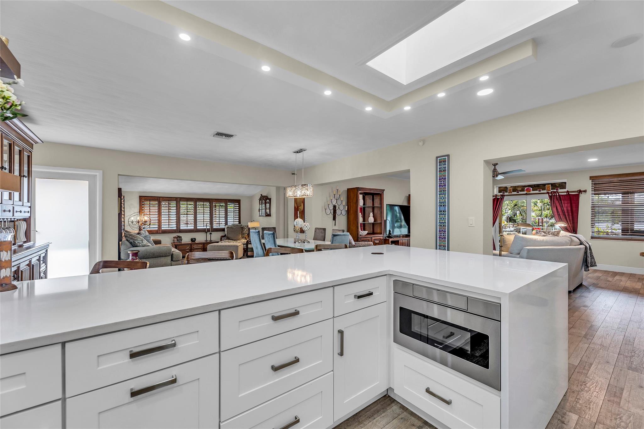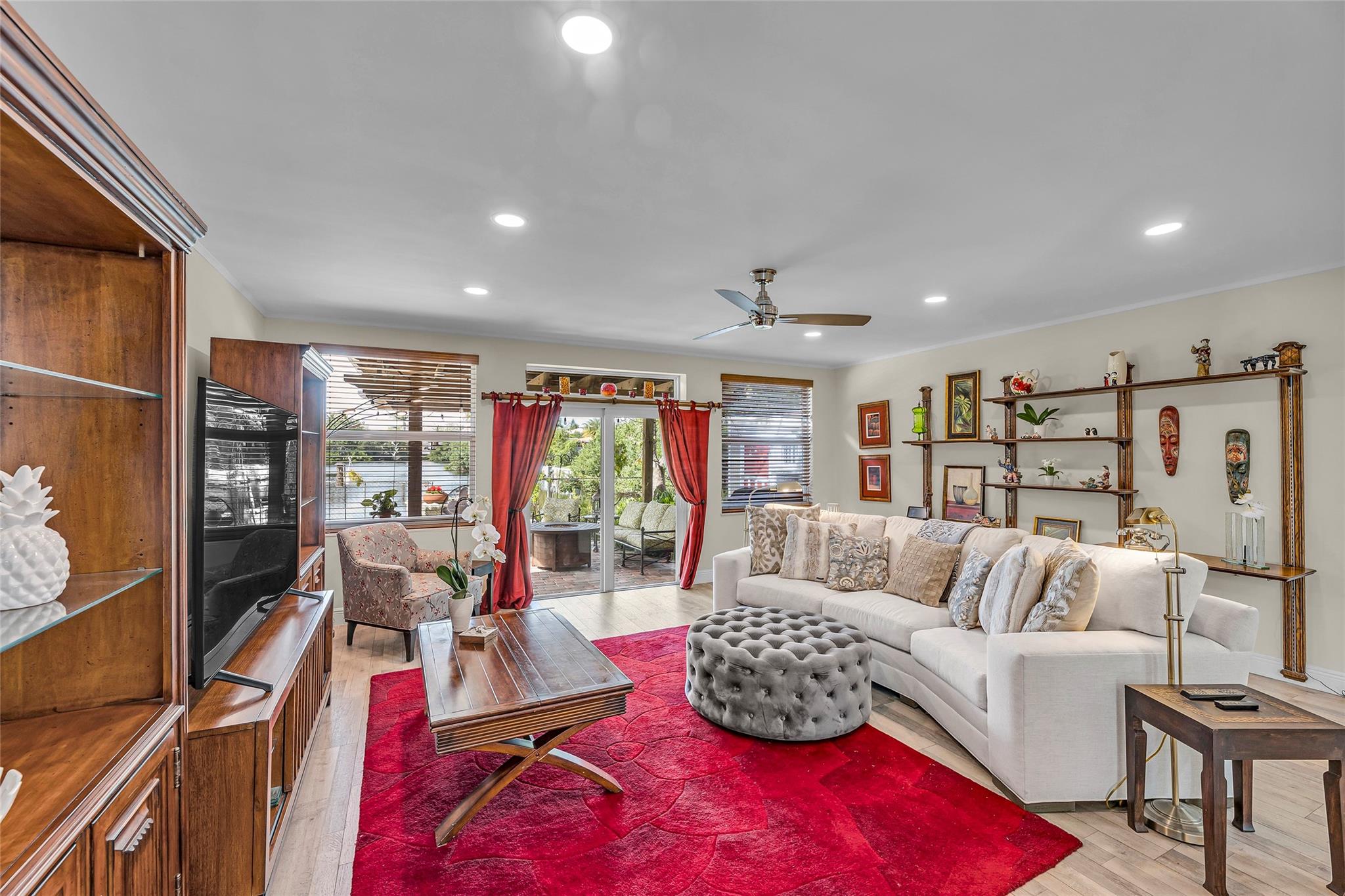 Beautiful sunsets await you in this spacious, waterfront home. Tastefully appointed details throughout this four bedroom, four bathroom remodeled home. New chef's kitchen equipped with gas, quartz counters and GE Cafe appliances. Impact glass throughout (excluding laundry room door in carport) with high end window treatments. Lots of storage in addition to custom office builtins. Home currently has a one/one Mother In Law suite. A must see! Centrally located, quiet neighborhood close to the beach, airport, restaurants and golfing.