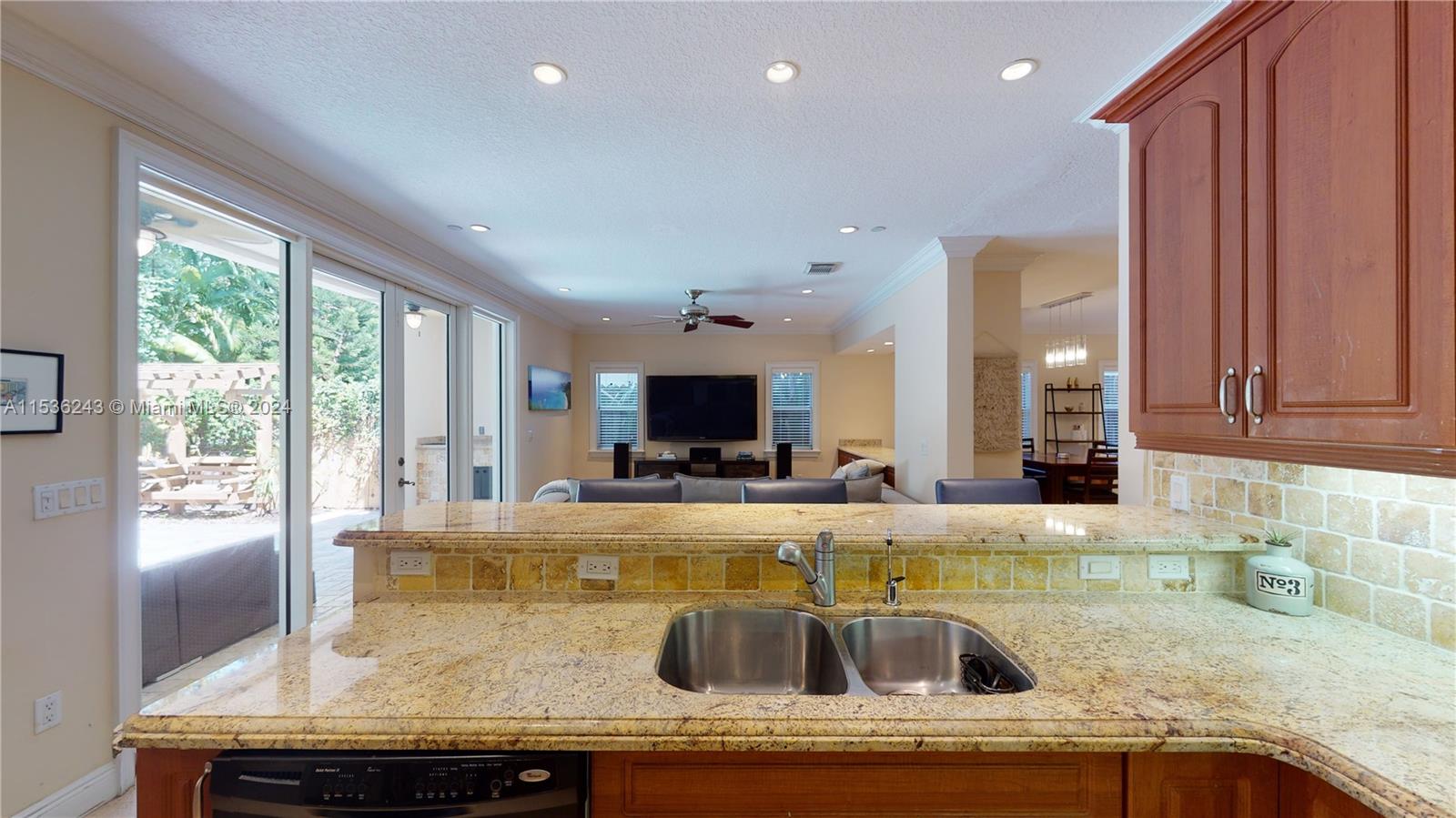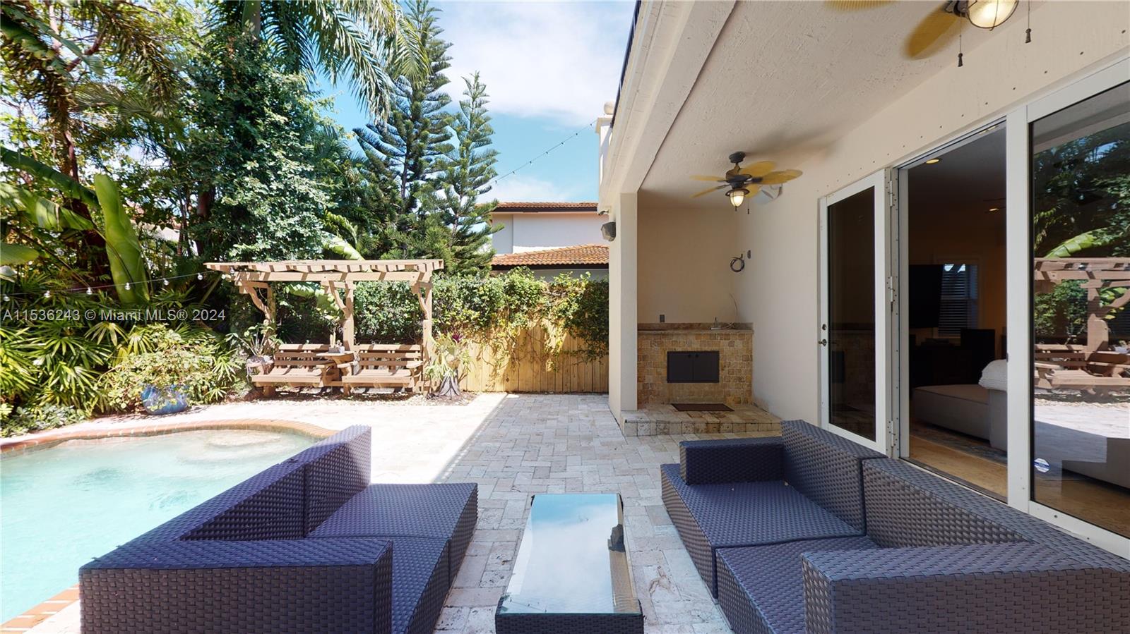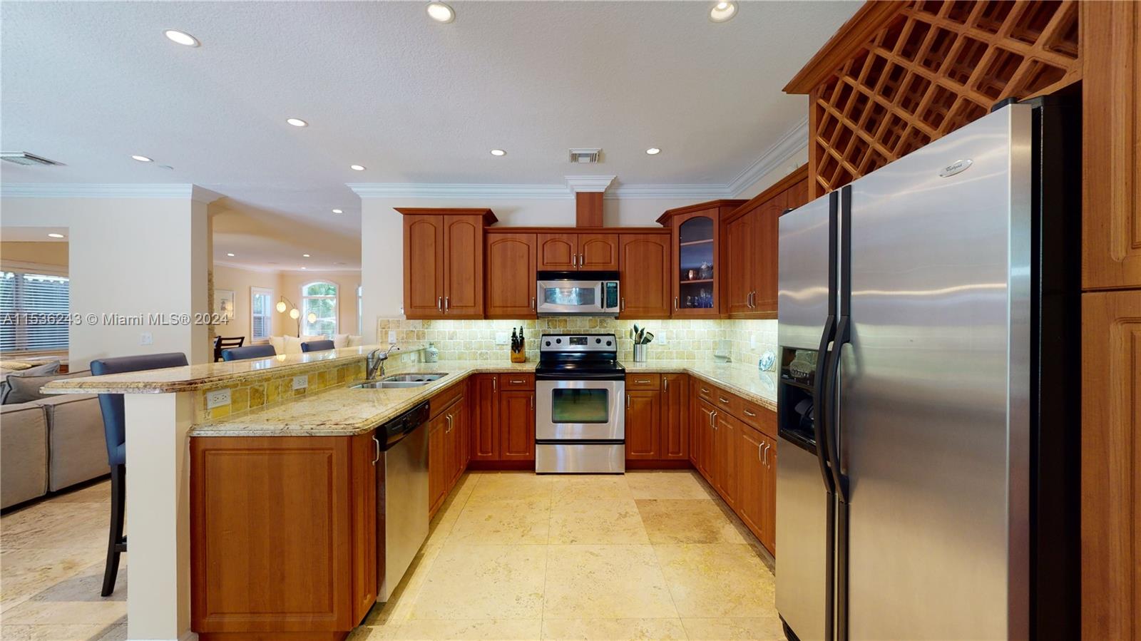 Spacious town home located on a quiet tree lined street. This town home was built on an oversized lot and feels more like a single family home. Lots of natural light in this East/West exposure town home. Travertine floors on the first level. Eat in kitchen with breakfast nook. Large living and dining rooms. Separate family room overlooking the large private pool and covered patio. 20 feet tall privacy wall between the two units. Deep and wide driveway will allow 3-4 cars to be parked inside the gate. One car garage with window and EV charger. Second floor has the spacious primary bedroom with spa style bathroom that has separate shower and tub and double vanity. Two more spacious bedrooms. Two balconies. Unit was recently painted on the outside. No maintenance fee!