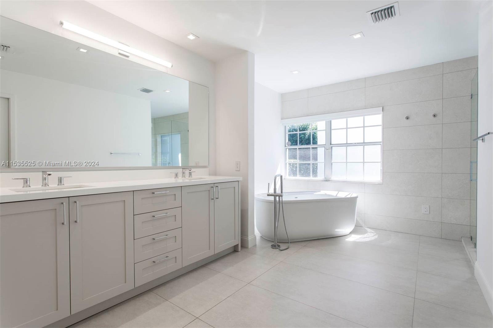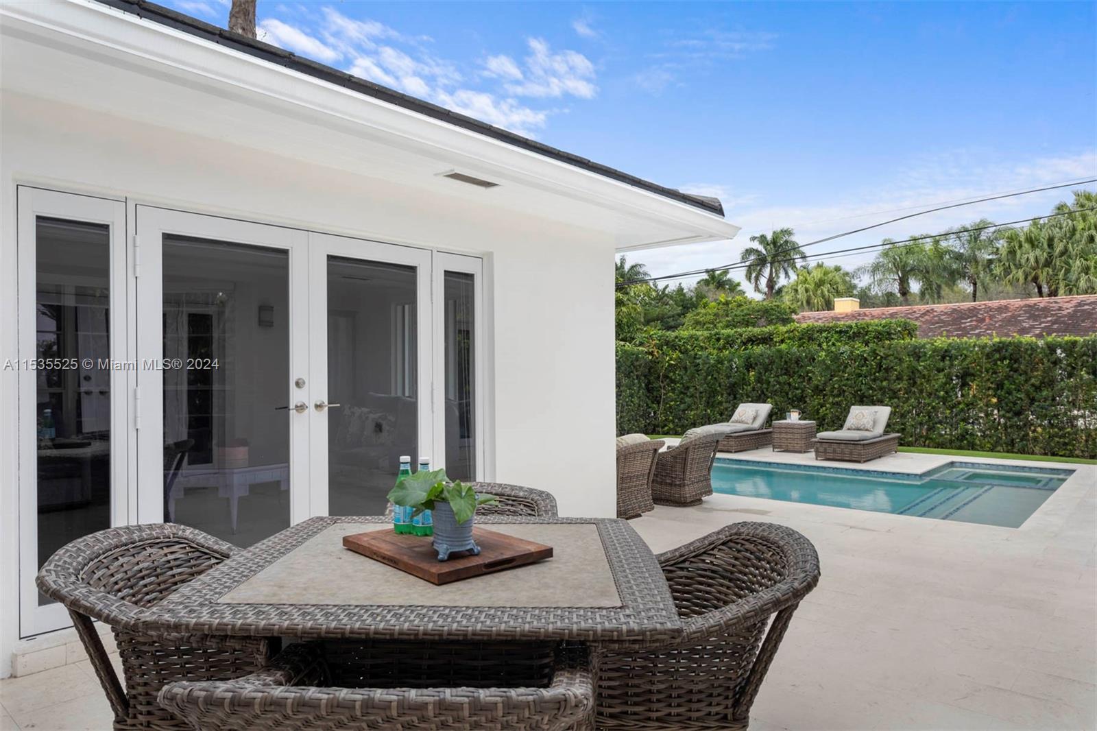 This exquisite residence in South Gables, epitomizing mid-century charm, is bathed in natural light and has undergone a lavish transformation. Poised on a 8,750 SF lot along a tranquil, tree-lined street, this luxurious haven features a thoughtfully crafted split floor plan featuring 3 bedrooms and 3.5 baths. Spacious primary wing with dual walk-in closets, soaking tub and oversized shower. Renovation and pool completed in 2021, impact-rated doors installed 2022. Two car garage with porcelain flooring, mini-split AC, custom cabinetry and laundry. Turn-key home in superb location.