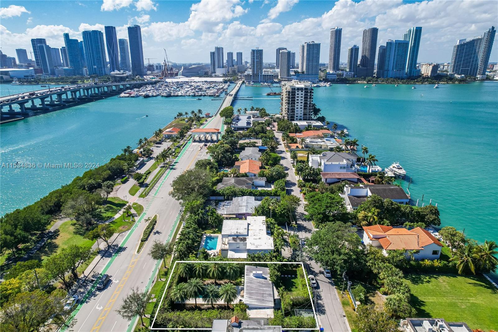 Welcome to 910 N Venetian Drive. This architectural gem, "Heller House 1" was designed by famed architect Igor B. Polevitzky. Recently updated, this 2-bed, 2-bath home is a sanctuary of tranquility, featuring high ceilings, brick walls & 13' windows that fully open into a seamless indoor-outdoor space. The backyard, with a fully motorized, retractable awning, is the perfect place to entertain & host dinner parties, framed by rows of Royal Palms flanking a large 12x40 pool. The 9,000sqft oversized lot is a developer’s dream, affording plenty of room to add on or build your dream home with unobstructed bay views from your future second floor or rooftop terrace. Prime location in Miami's most coveted neighborhoods, this home offers the ultimate blend of luxury, privacy, and convenience.