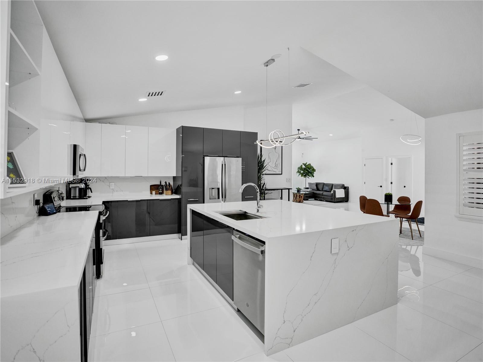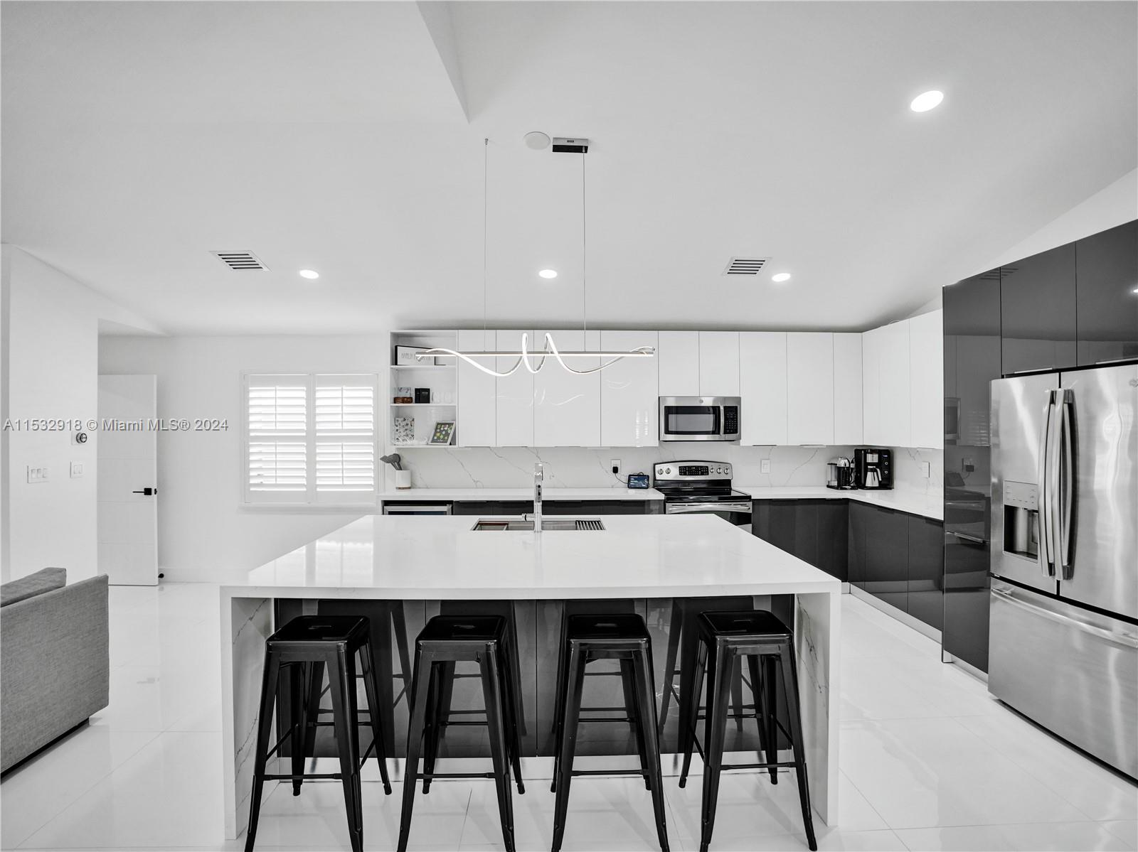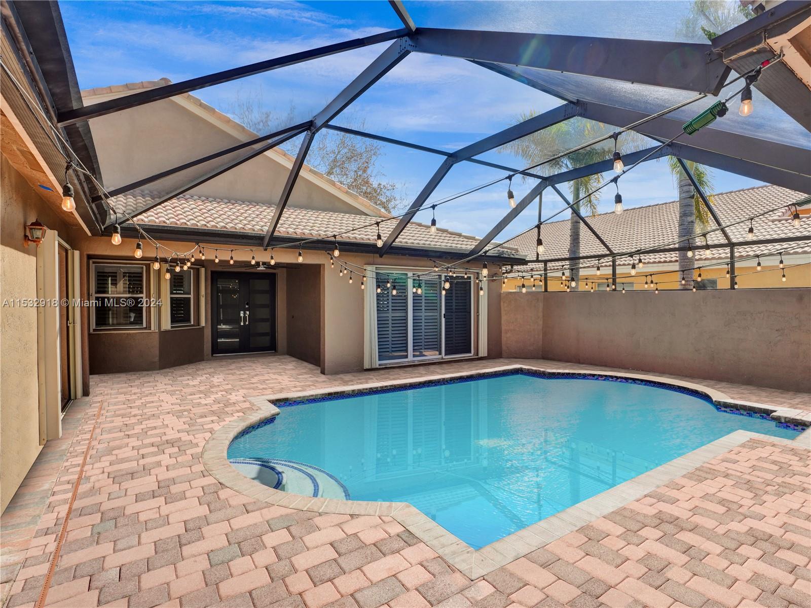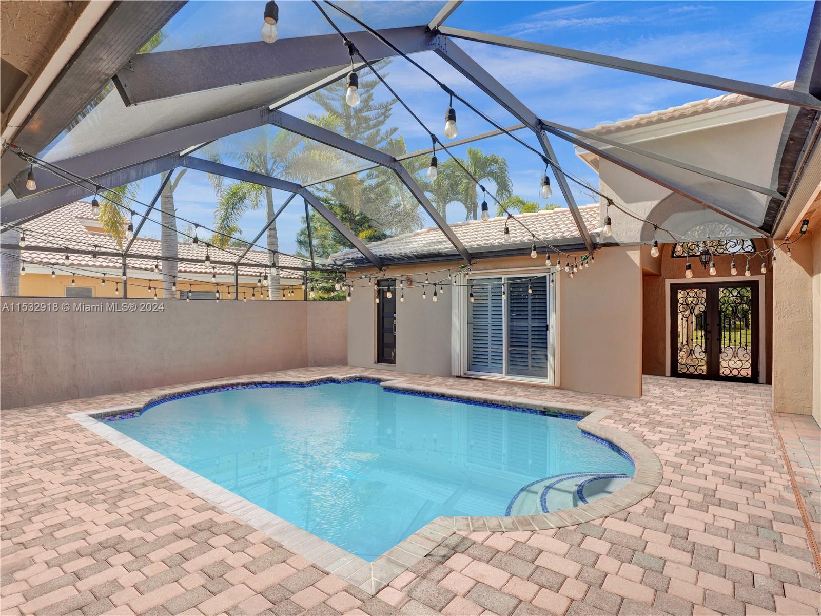 Rarely Available GORGEOUS, COMPLETELY RENOVATED 4/3 Courtyard home in gated Alhambra, Pembroke Pines surrounded by a natural preserve. Step thru the grand iron gates to a stunning courtyard w/freeform salt water pool & identically renovated 4th bedroom/office/cabana house + full bath. Admire volume ceilings in the main house with 32x32 porcelain tiles, calacatta counters & backsplash, plantation shutters, custom doors – all throughout, wine fridge & much more. The spa-like primary ensuite bathroom has a luxurious shower with 2 rain shower panels plus multiple spouts & towel warmer that will provide you with cozy towels after. 2 car garage. Close distance to top-rated public & charter schools, the best hospitals, extensive shopping & dining + easy access to I75, 595 & US27. NO HOA Approval