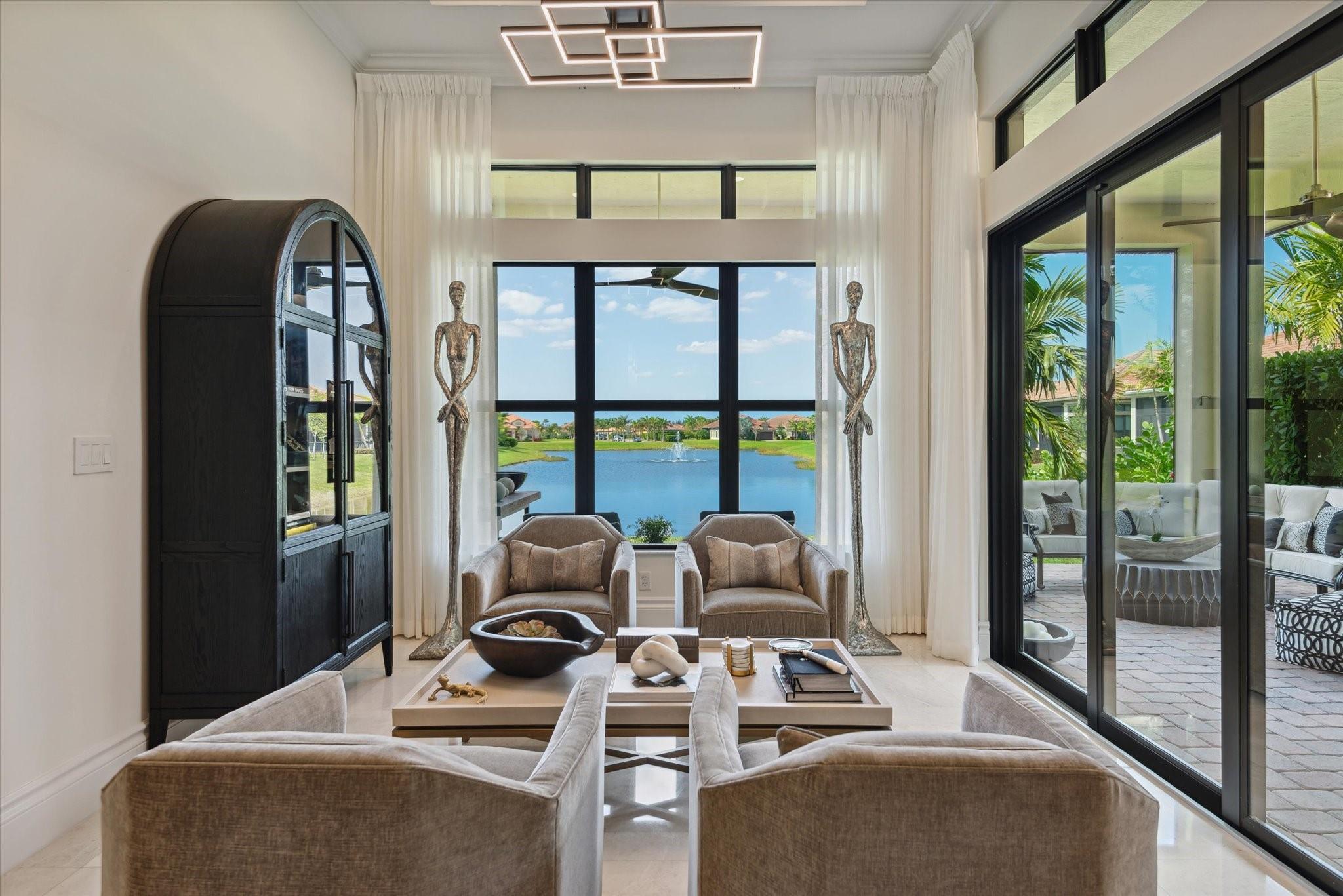 Exquisite 2BR, 2 1/2 bath home plus a den sits on one of the best long waterfront view lots in Four Seasons! This home is a MUST-SEE home upgraded at every turn starting with the dramatic oversized, front impact glass French door with striking views of the lake immediately upon entering this elegant home. Volume 14' ceilings with 3 tray ceilings w/extra wide molding in entry foyer, 8" baseboards & casings throughout home, quartz countertops in kitchen and baths, natural gas range and tankless water heater, 24x24 marble floors in all rooms, upgraded faucet w/gold accents in kitchen, double oven, phantom screen on patio works with remote control, epoxy floor in oversized garage w/custom cabinets in lg. storage area/golf cart parking, and full house generator. Too many upgrades to list!