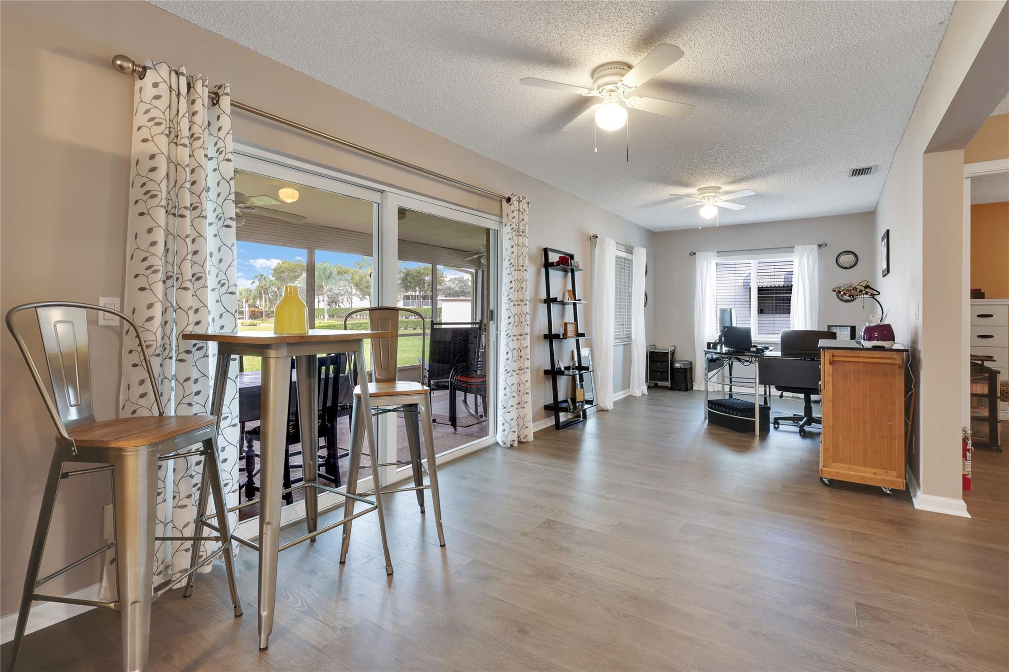 (55+ Community) Enjoy Cypress Lakes Golf & Lifestyle in this beautiful remodeled lake front 2/2 with 1 Car Garage, Family, & Den*Hurricane impact resistant windows & doors*New laminate wood flooring*Kitchen updated 2022 – In Kitchen Recessed lighting, Quartz Countertops, Stainless Steel Appliances Dishwasher, Deep sink with Nickle faucet, Side by side fridge with bottom freezer, Flat top stove, Nickle handles on white cabinetry, Kitchen appliances replaced 2022*9 Newer Ceiling fans*Screened patio with serene view of lake*Community Boasts Electronic Guard gate*Club House*Golf course*Theatre*Swimming Pool*Sauna*Hot tub*Putt Putt Golf*Tennis Courts*Pickle ball*Basketball*Shuffleboard*2 exercise rooms*Library*Maint fee includes cable TV & lawn maintenance front yard & back & sprinkler system*