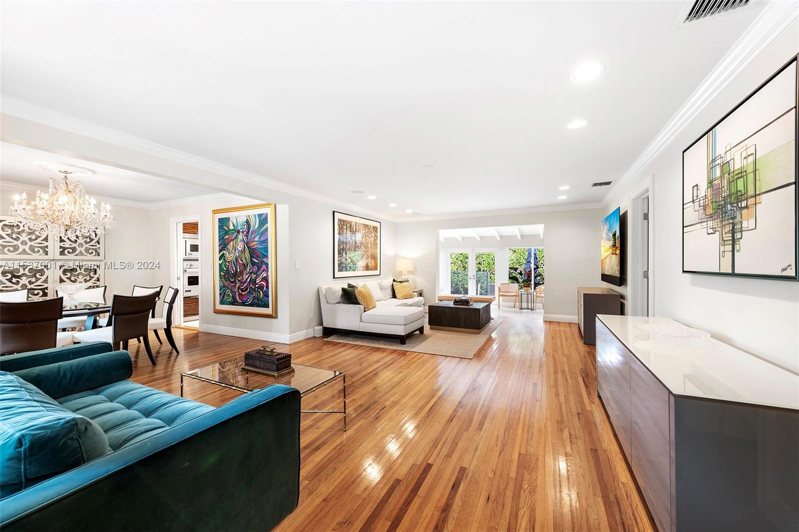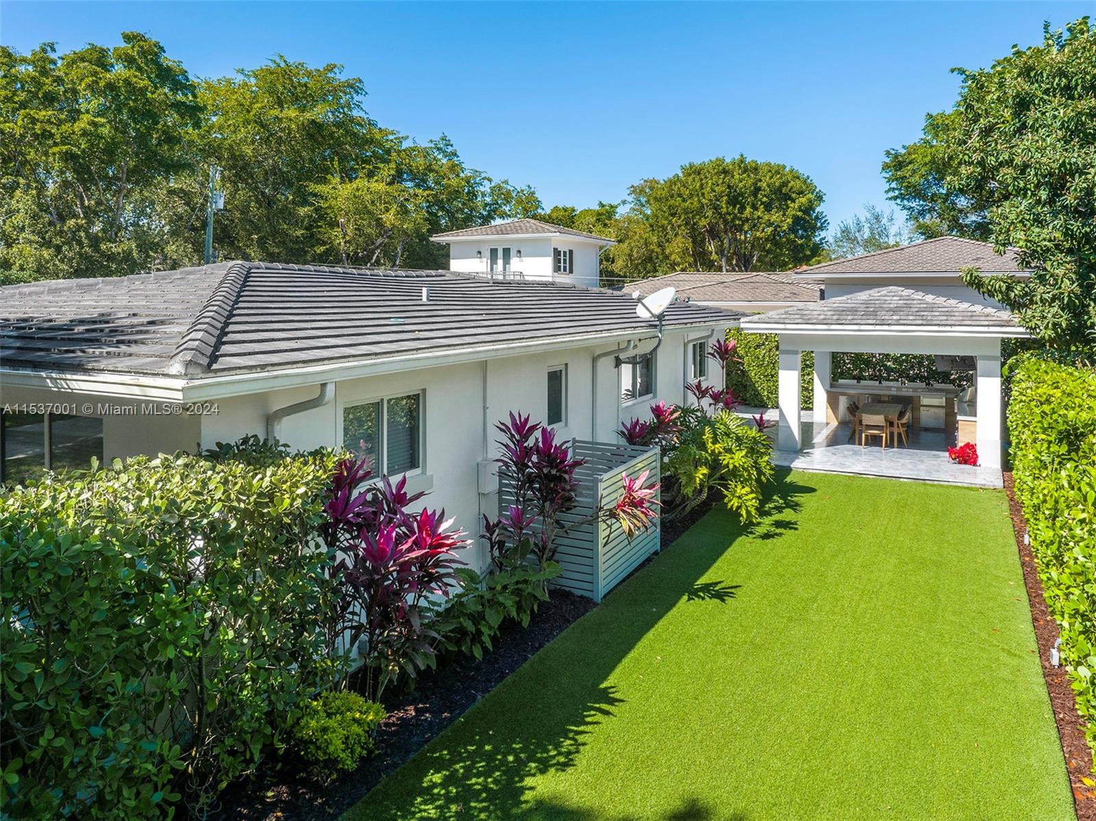 A true gem offered in the sought after Platinum Triangle neighborhood of south Coral Gables. This warm & inviting 4 bedroom, 2 1/2 bath residence sits on a spacious (11,008 SF) corner lot in a quaint tree lined street. Features include an open floor plan w/a multitude of windows that allow for an abundance of natural light throughout, a private bedroom corridor incorporating all four bedrooms, a family room overlooking the pool & backyard, state of the art summer kitchen ideal for entertaining, walled in yard w/artificial grass perfect for kids to enjoy & spacious driveway w/EV charging station. Ideally located w/in close proximity to a variety of excellent schools, Matheson Hammock, Coconut Grove, South Miami, Merrick Park & Miracle Mile.