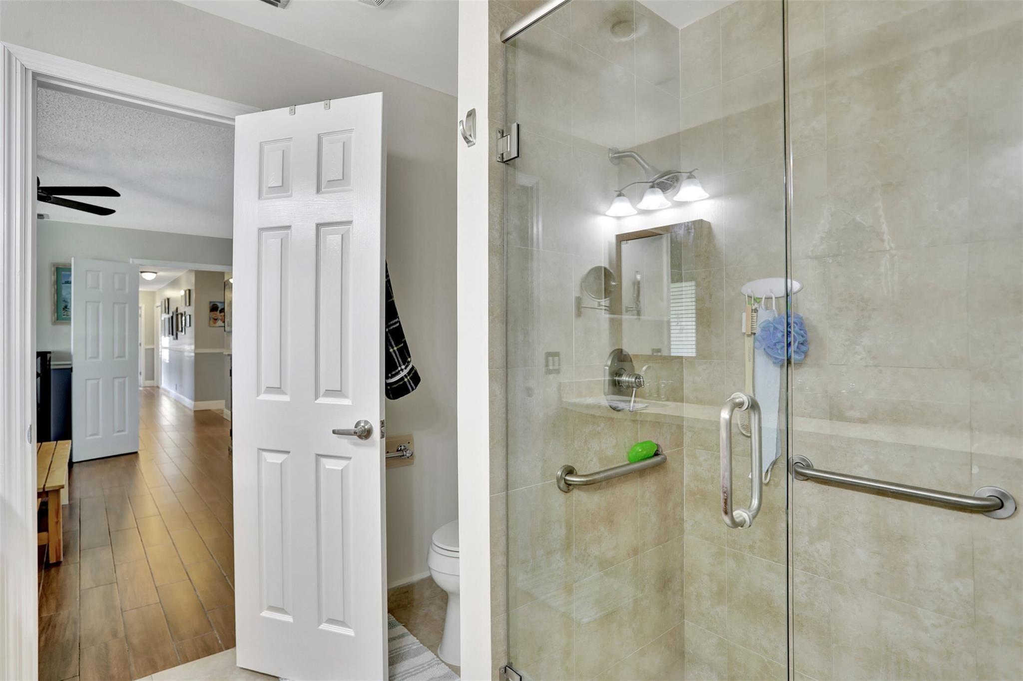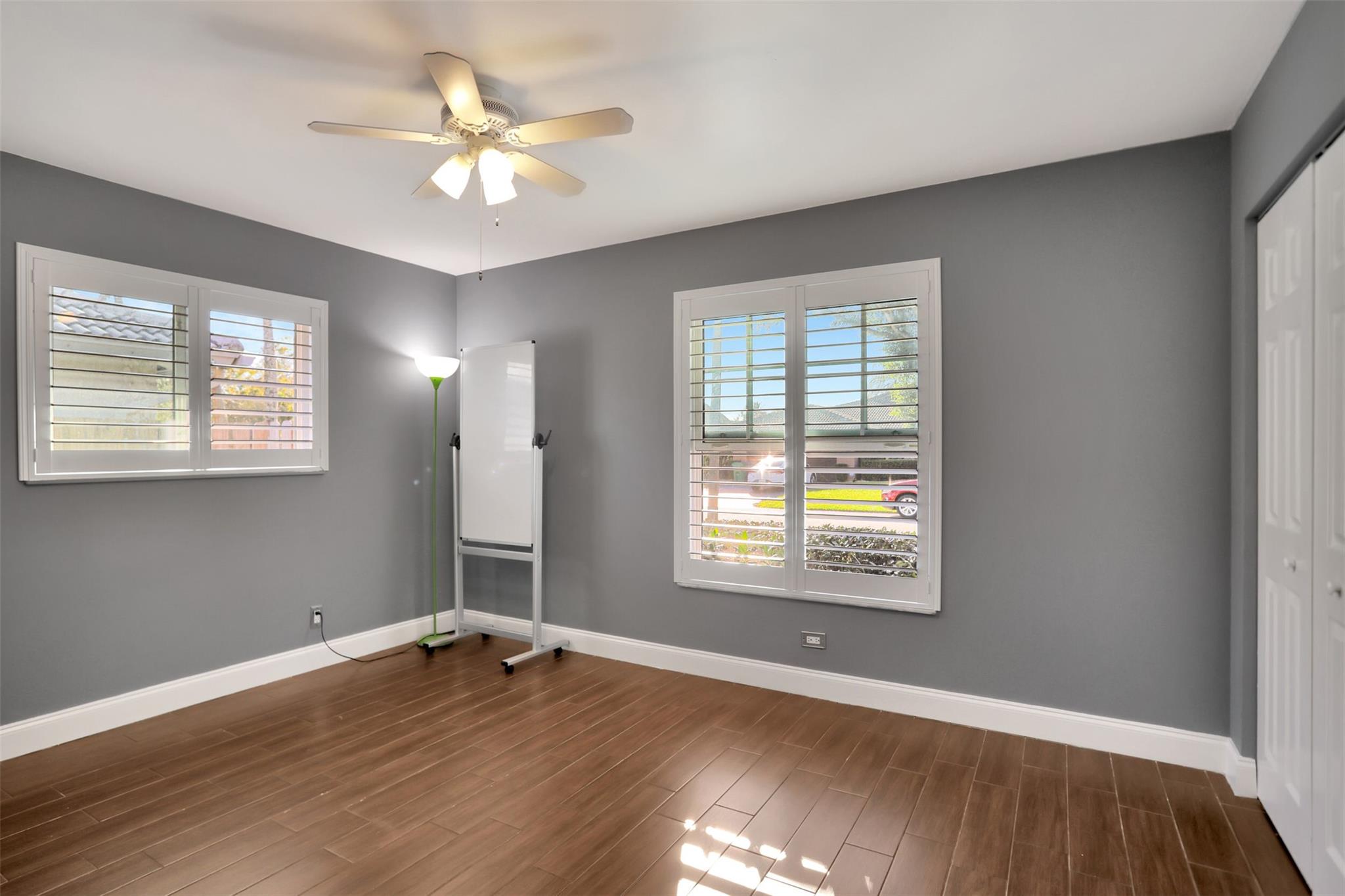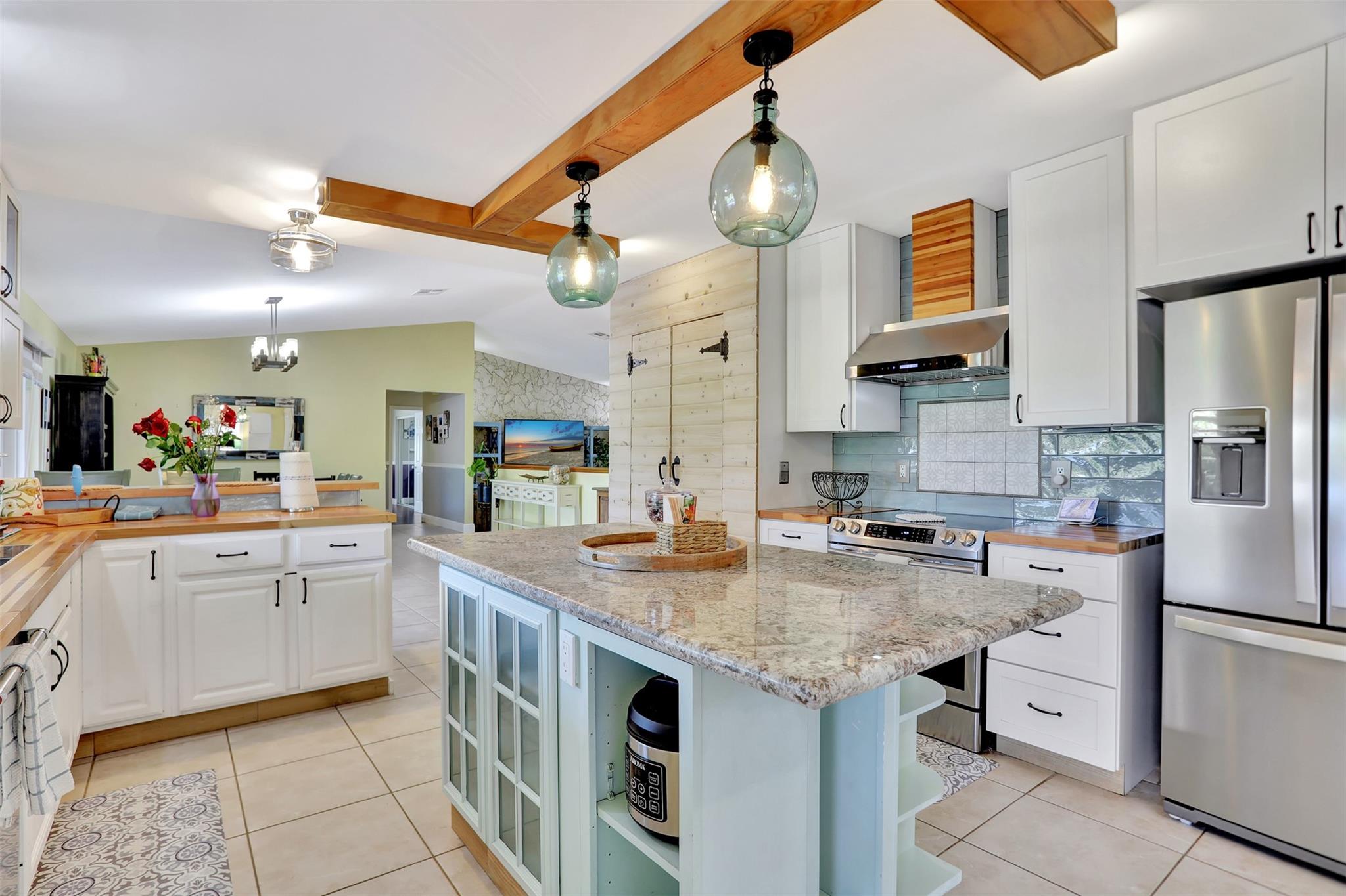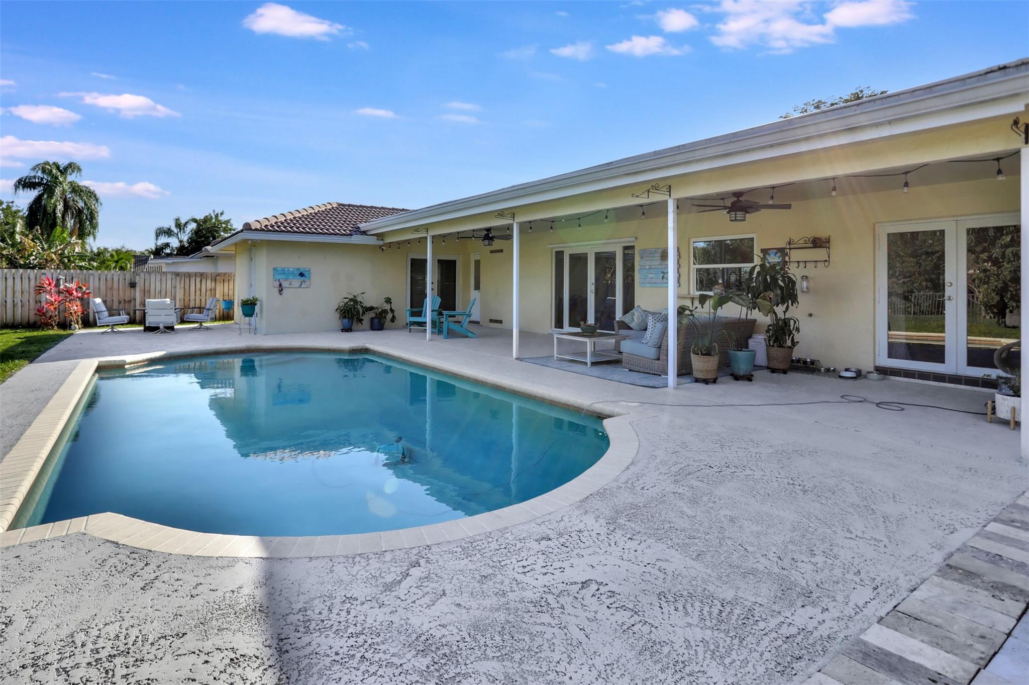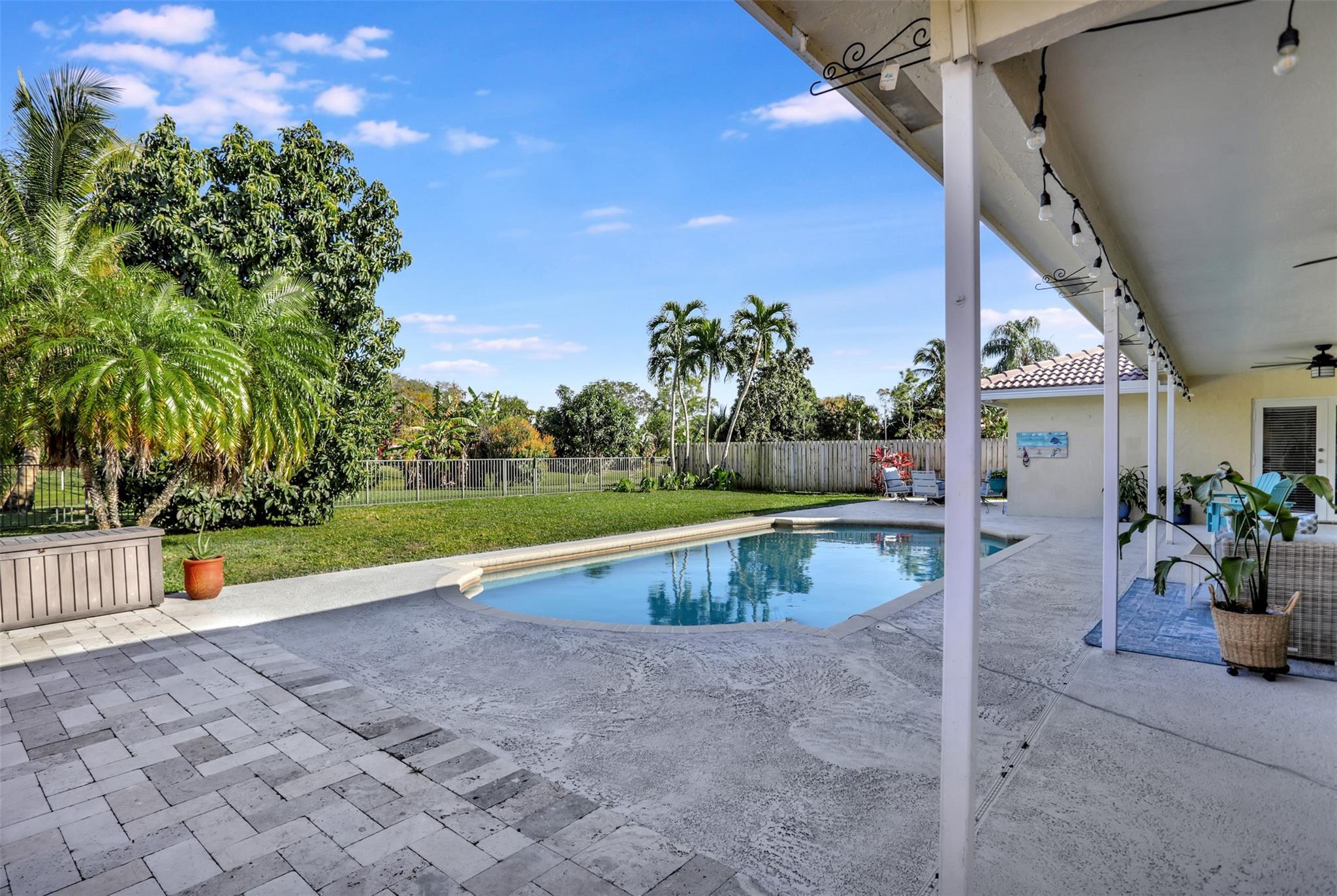 This stunning waterfront pool home in Cypress Glen is a rare find for those seeking modern luxury living. It features 4 bedrooms, 2 bathrooms, a bonus den, and impact windows that offer breathtaking views of the pool and water. The remodeled kitchen has a butcher block countertop with a granite island, while vaulted ceilings and an open floor plan create a seamless indoor-outdoor transition. The master suite boasts a walk-in closet and a remodeled bathroom with dual sinks and limestone countertops. The property also includes a large fenced yard with various fruit trees, an expansive pool/patio area, and a circular driveway. With impeccable condition and model-like quality, this home is a must-see.
