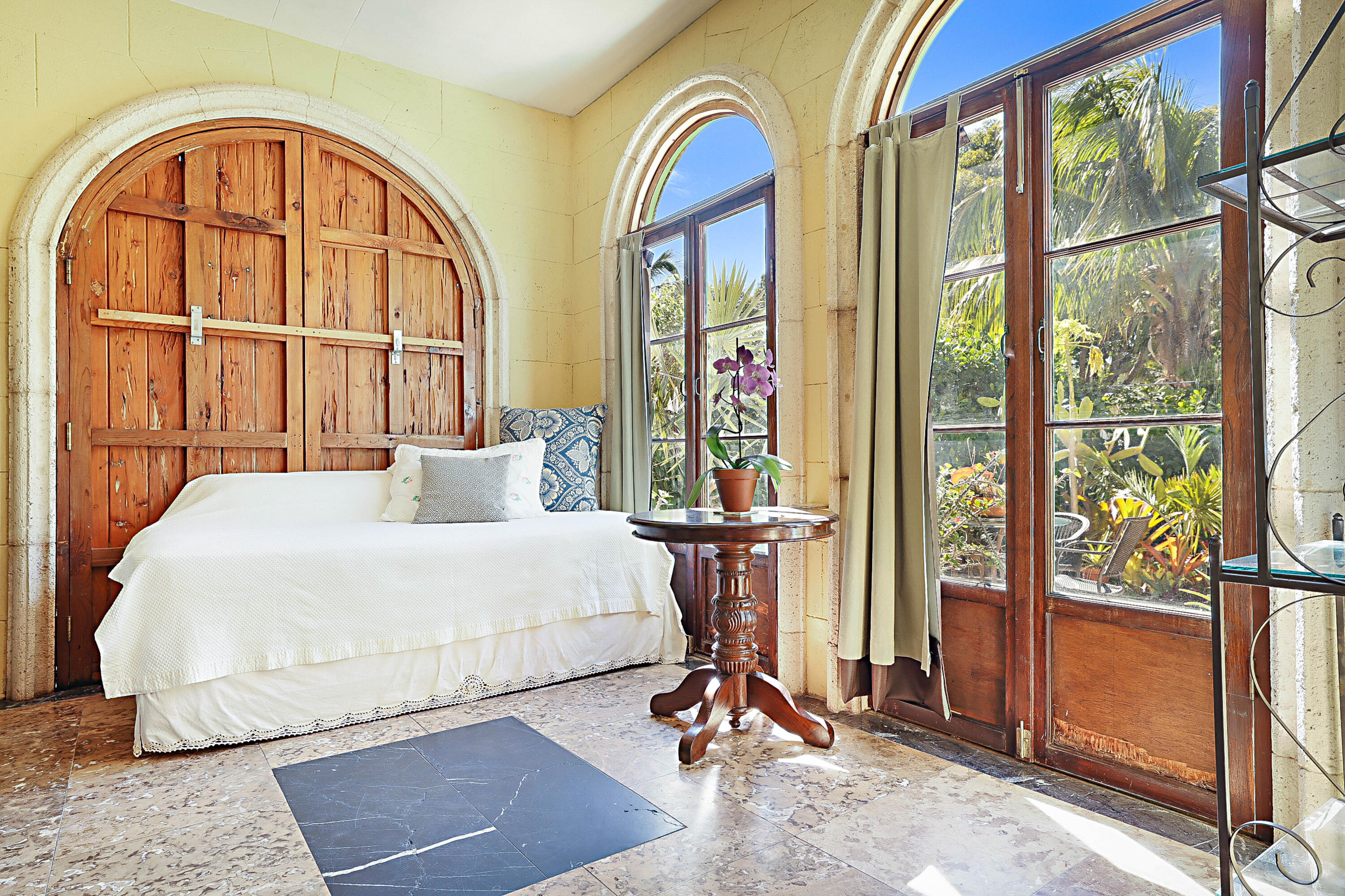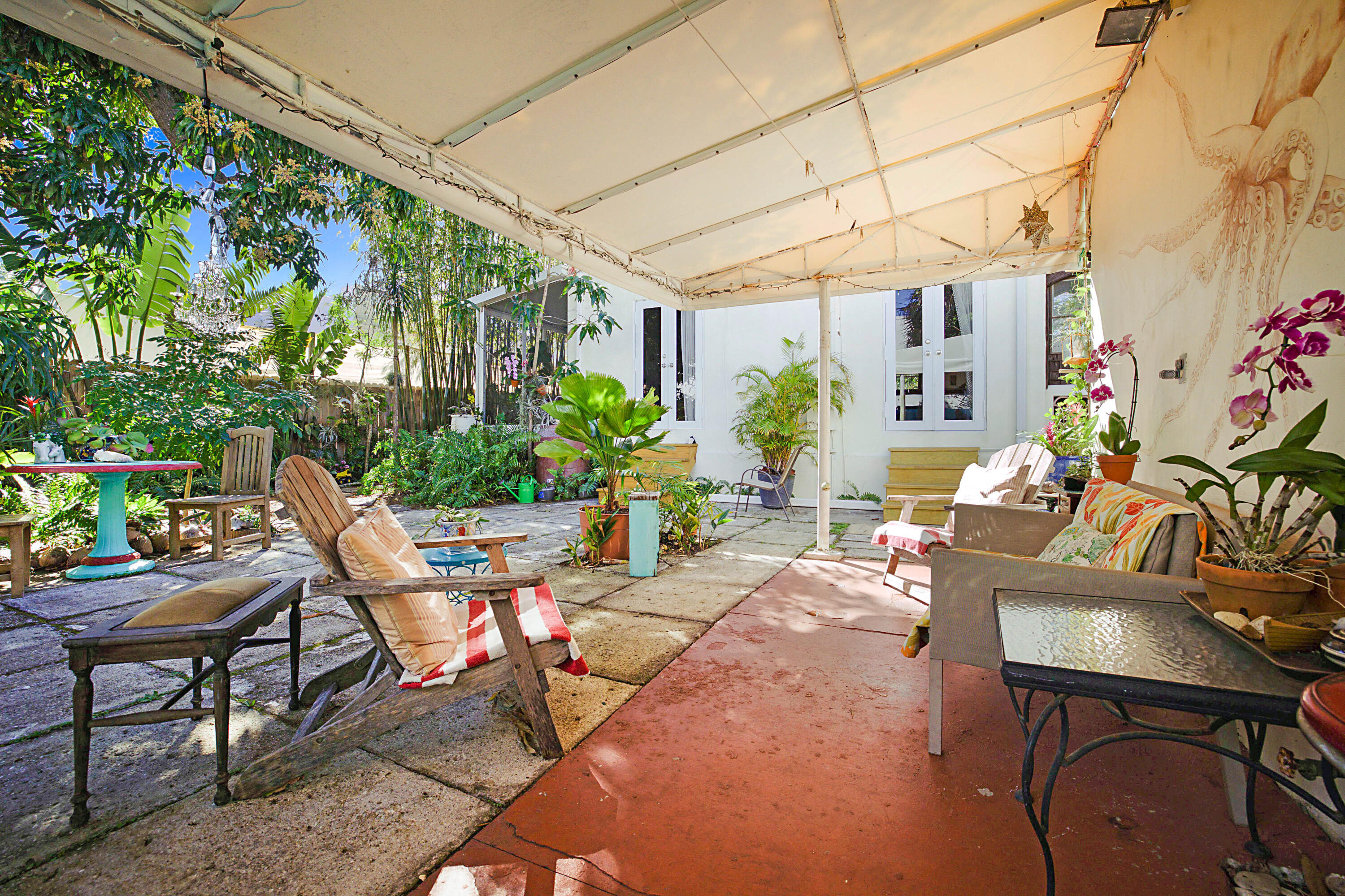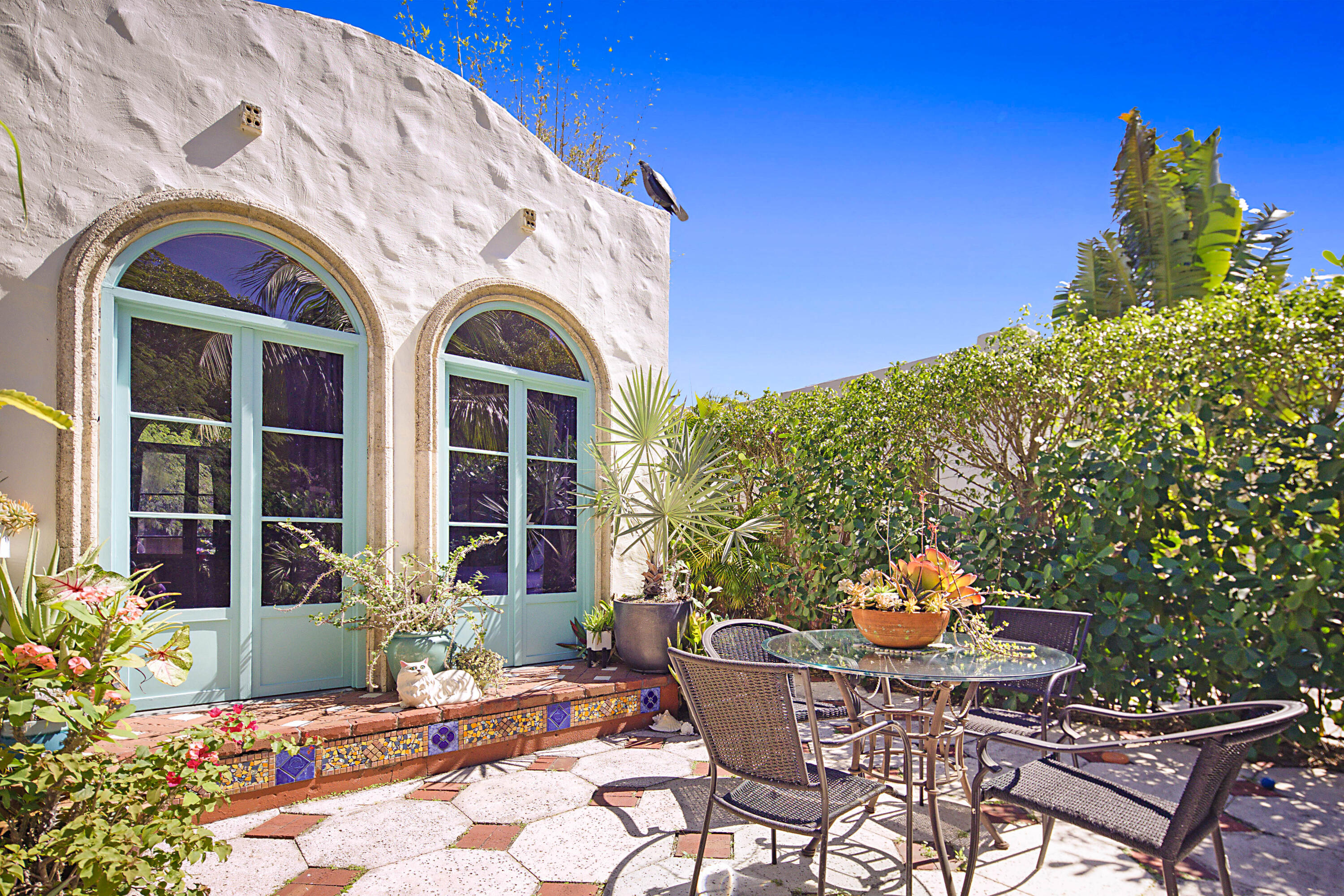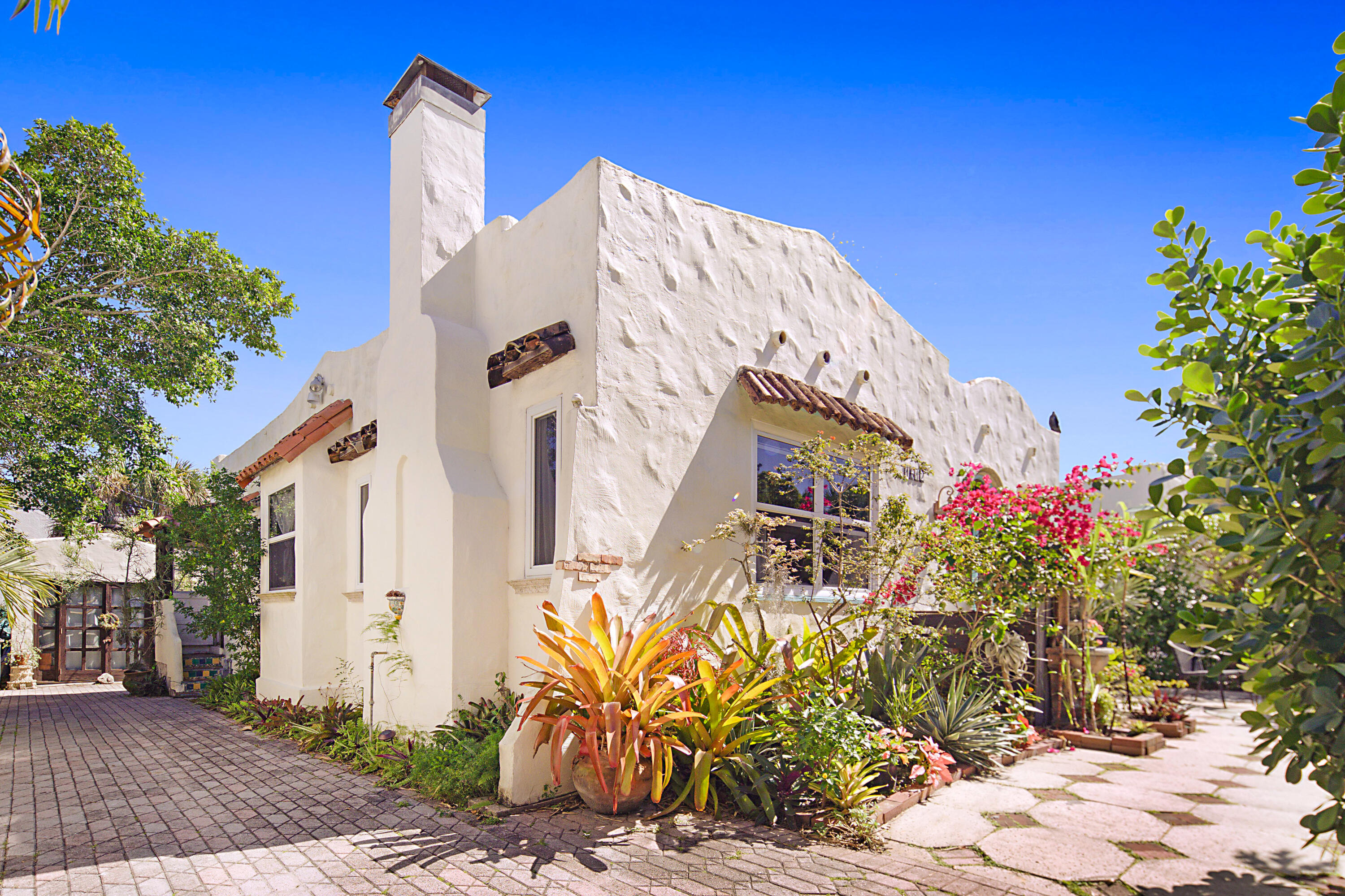 Welcome to a charming and unique Spanish 2-bedroom 1 bath cottage in the coveted Grandview Heights neighborhood.This lovely courtyard home boasts a large set of original oversized pecky cypress doors, leading into an entryway with Cuban tile and matching floor to ceiling arched windows. Additional historical features include Pristine hardwood floors, stone fireplace, and a screened side porch. recent changes are an open renovated kitchen, new impact windows and newer AC. This private lush, landscaped yard has a small unfinished guest cottage with electric. Room for a pool and nice size gated driveway. Ideal location on a beautiful one-way street with a large, manicured swale. Within walking distance to Rosemary Square and Downtown WPB. A block to the Norton Muesum