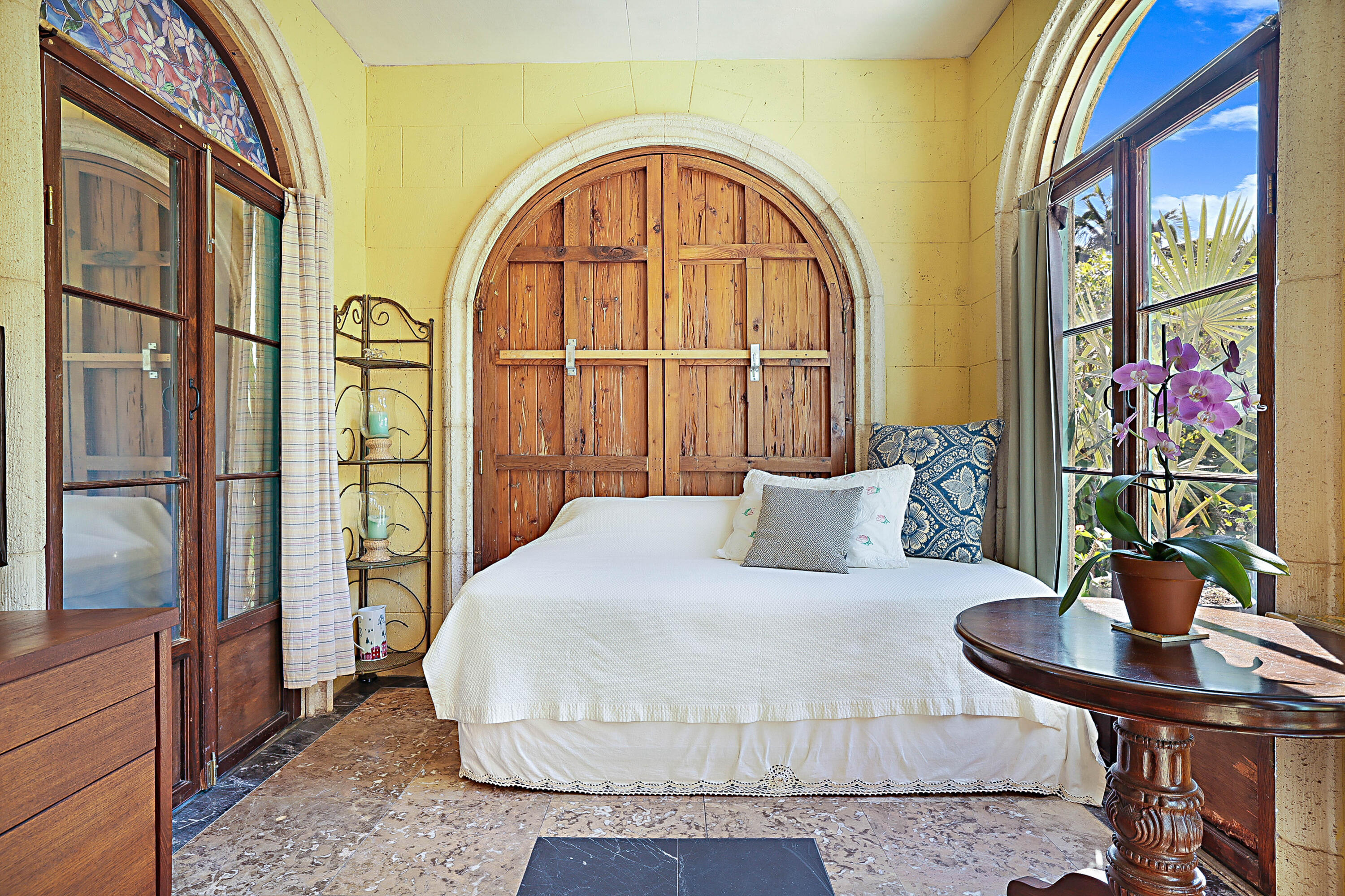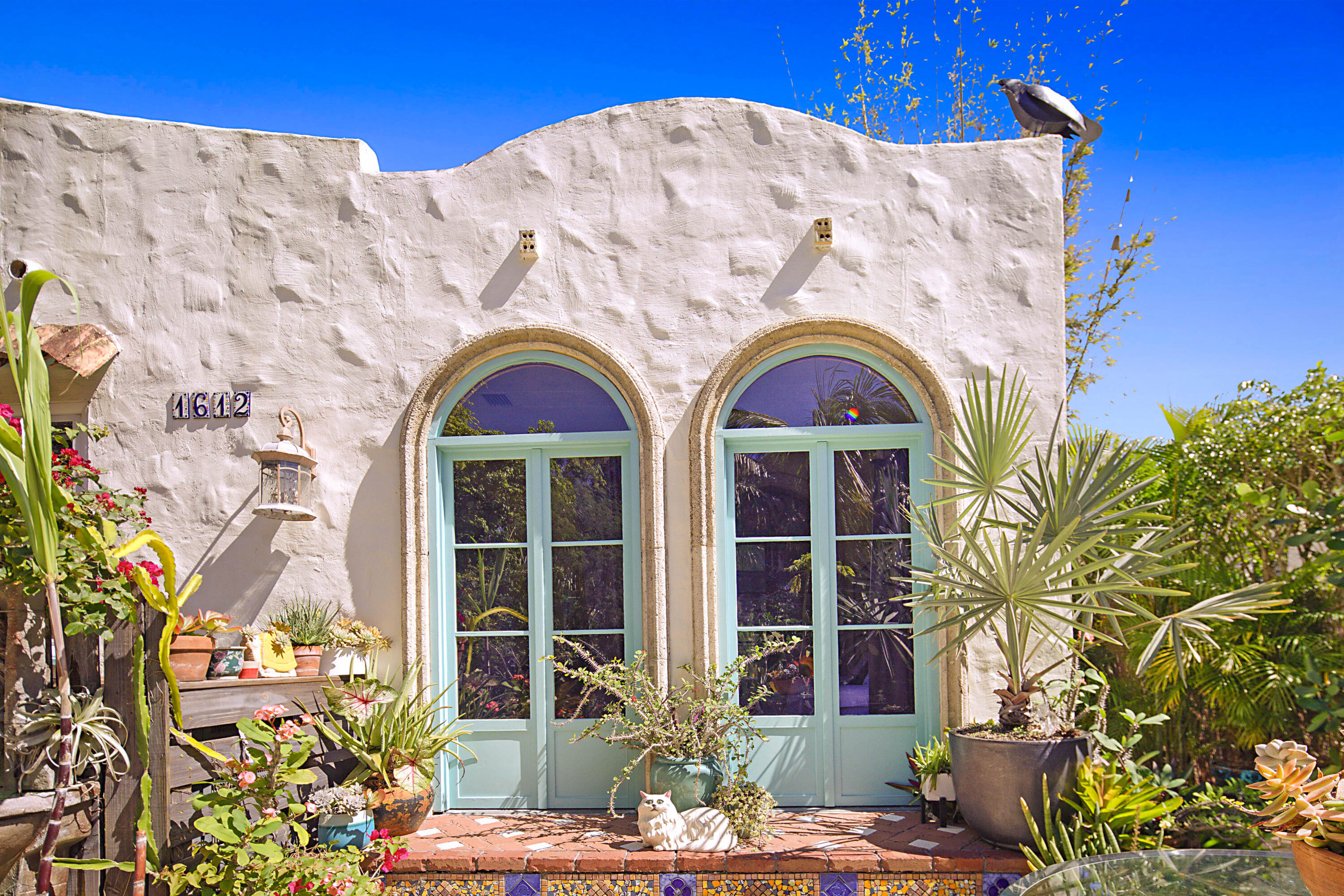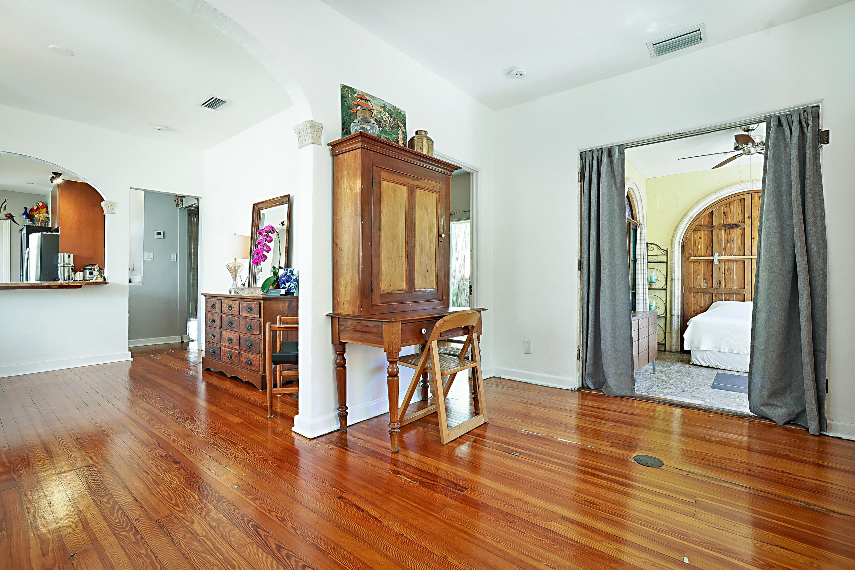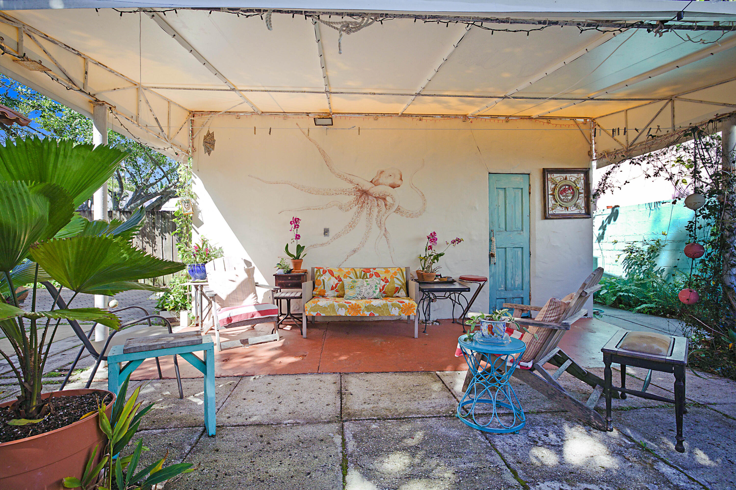 Welcome to a charming and unique Spanish 2-bedroom 1 bath cottage in the coveted Grandview Heights neighborhood.This lovely courtyard home boasts a large set of original oversized pecky cypress doors, leading into an entryway with Cuban tile and matching floor to ceiling arched windows. Additional historical features include Pristine hardwood floors, stone fireplace, and a screened side porch. recent changes are an open renovated kitchen, new impact windows and newer AC. This private lush, landscaped yard has a small unfinished guest cottage with electric. Room for a pool and nice size gated driveway. Ideal location on a beautiful one-way street with a large, manicured swale. Within walking distance to Rosemary Square and Downtown WPB. A block to the Norton Muesum