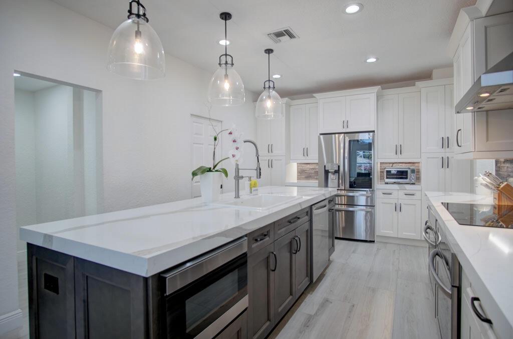 Totally updated waterfront home in the Resort style community of Boca Falls. Roof New in 2018. Kitchen features double ovens, large island & beverage bar with open concept to family room. Luxurious first floor primary bedroom with direct access to pool. Primary bathroom fully renovated with designer cabinets, quartz counter tops, free standing tub & separate large shower. Family room features a built-in electric fireplace & volume ceiling. Upstairs features a loft with two built in workstations, 2 bedrooms & luxury bathroom. Back yard is appointed with a resort style pool area with an outdoor kitchen & amazing waterfront view. Boca Falls has its own private entrance to ''A'' rated Waters Edge Elementary. Community features manned gated entry, resort style pool, clubhouse & Gym.