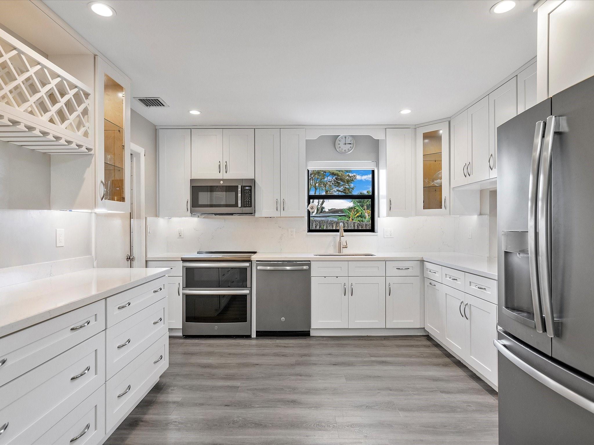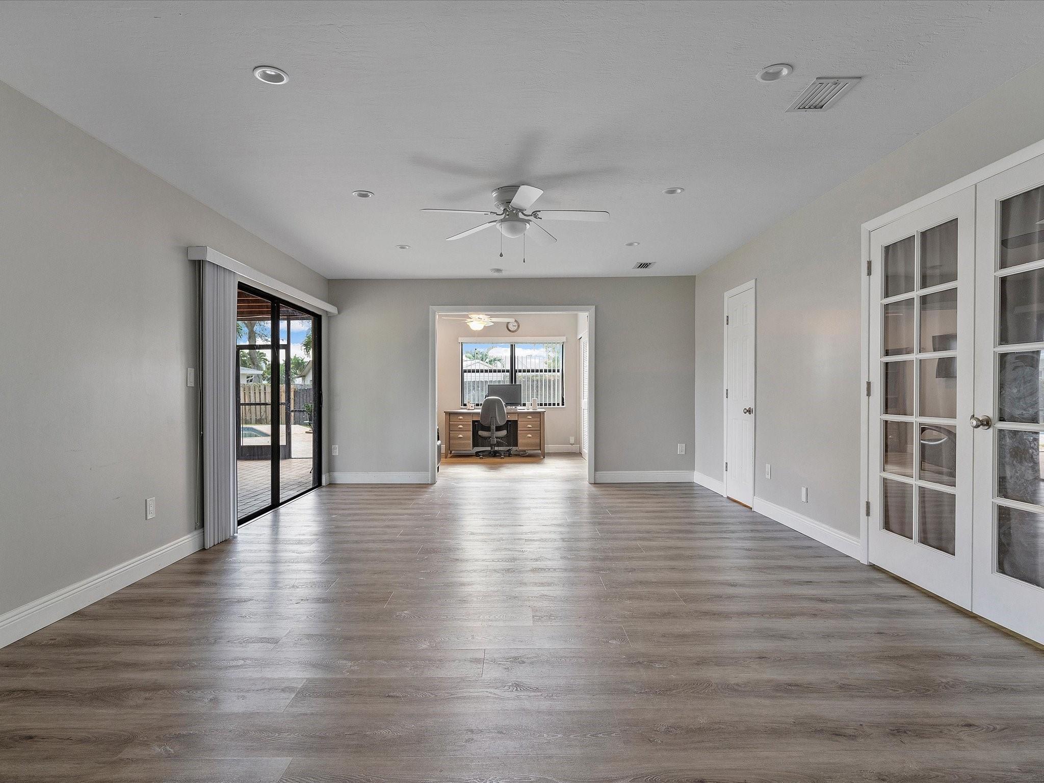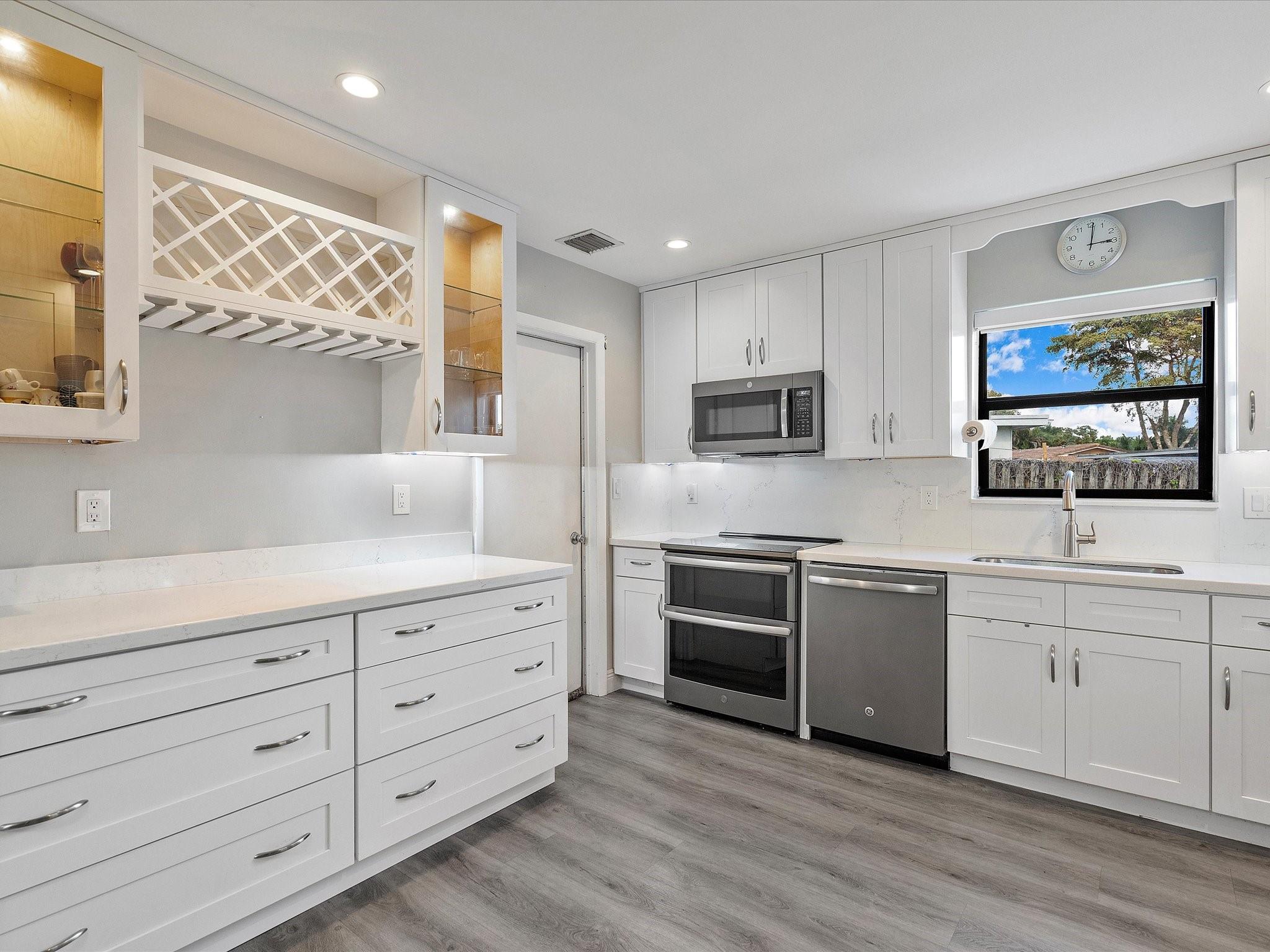 Beautifully Renovated 4 bedroom 2 bathroom home WITH POOL in the Highly Sought-after Pembroke Lakes community. It features luxury vinyl throughout, formal living & dining rooms, a spacious den, recessed LED lighting, a central vacuum system, & a NEW roof! The kitchen offers white cabinets w/42” uppers, quartz countertops, & premium GE appliances. Your Primary Suite has finished closets & a modern ensuite. Florida is for outdoor living & you'll live well out on the screened paved patio. Or lounge by the pool while watching the kids play in the large grassy fully fenced yard. There's also a 2 car garage, new electric panel, & hurricane shutters. This community has no HOA and is close to huge parks, great schools, golfing, grocery stores, shopping & entertainment. Sqft larger than tax rolls.