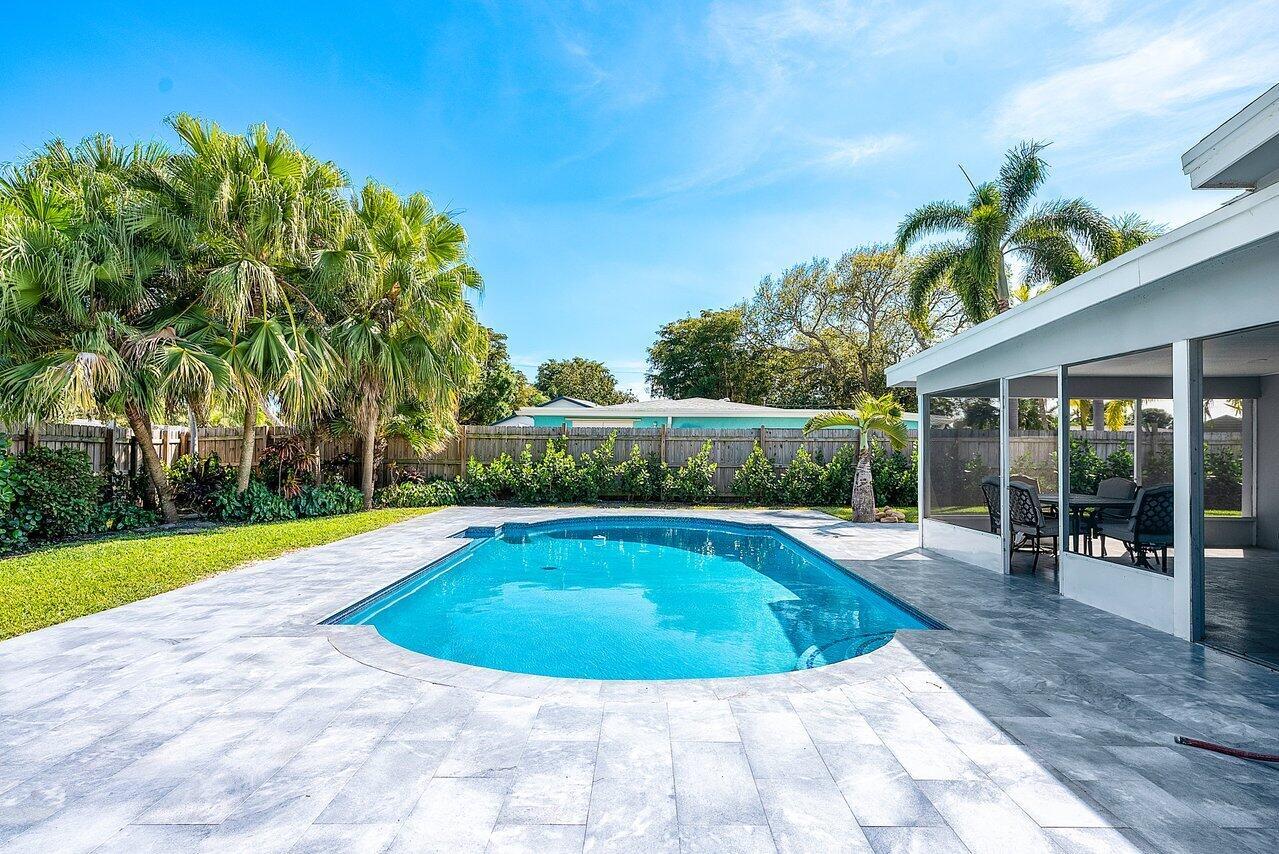 BEAUTIFUL FULLY RENOVATED 3 BEDROOMS AND 2 BATHS AND 1 CAR GARAGE CORNER DHOME IN HIGHLY DESIRABLE NEIGHBORHOOD. UPDATED KITCHEN AND BATHROOMS AND IMPACT WINDOWS ALL AROUND. NEW PAINT INSIDE AND OUT WITH NEW FLOORING. OVERSIZED CORNER LOT WITH NEW RENOVATED POOL. THIS HOME FEATURES A BEAUTIFUL LANDSCAPING, FENCED IN BACKYARD AND ENCLOSED PATIO OVERLOOKING THE POOL. OPEN FLOOR PLAN WITH PLENTY OF SPACE TO ENTERTAINING (INDOOR/OUTDOOR). CENTRALLY LOCATED WITH EASY ACCESS TO I-95, MINUTES AWAY FROM PBIA, PALM BEACH OUTLET STORES, CITY PALCE ETC. THIS IS A MUST SEE!!!