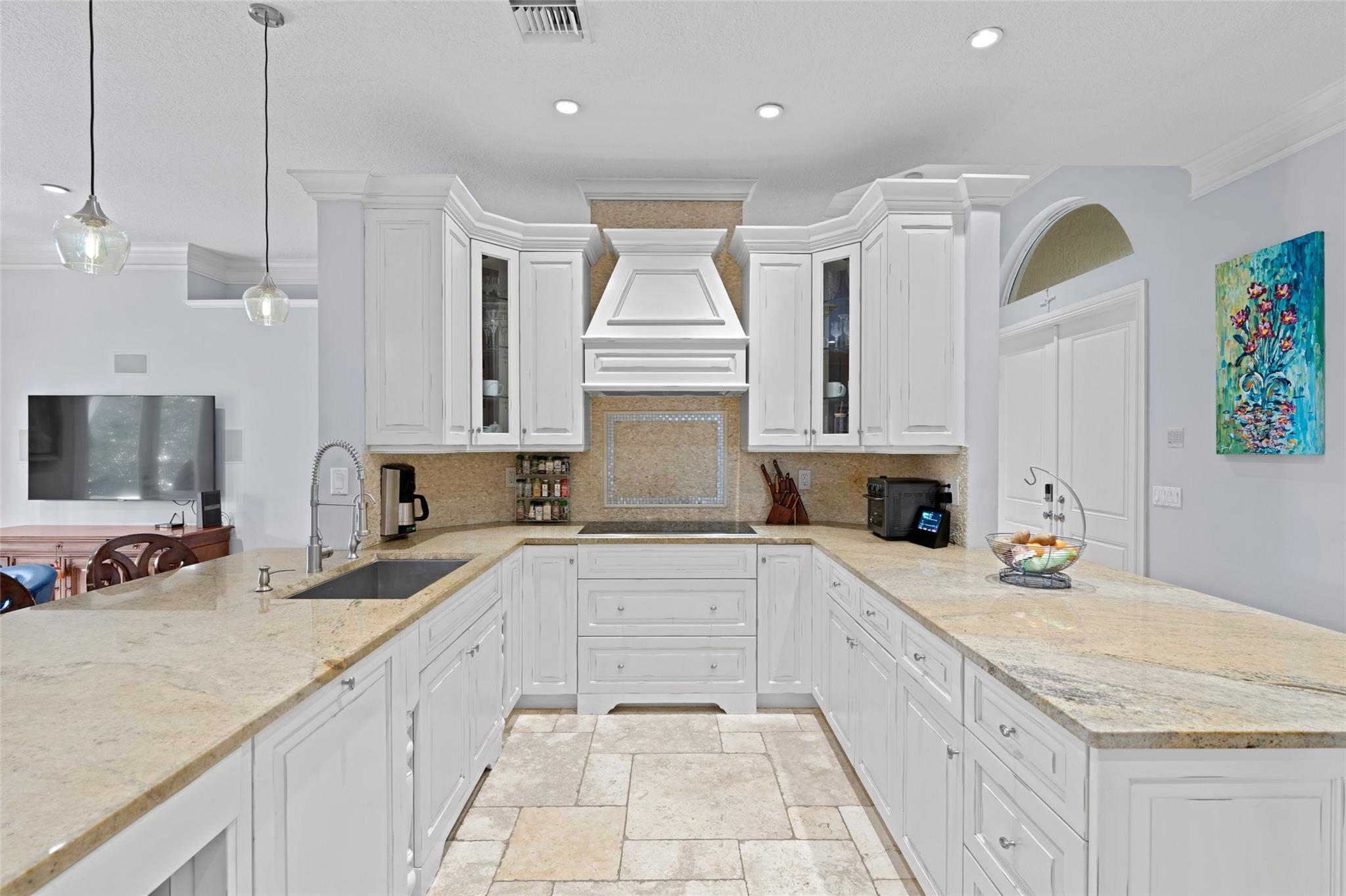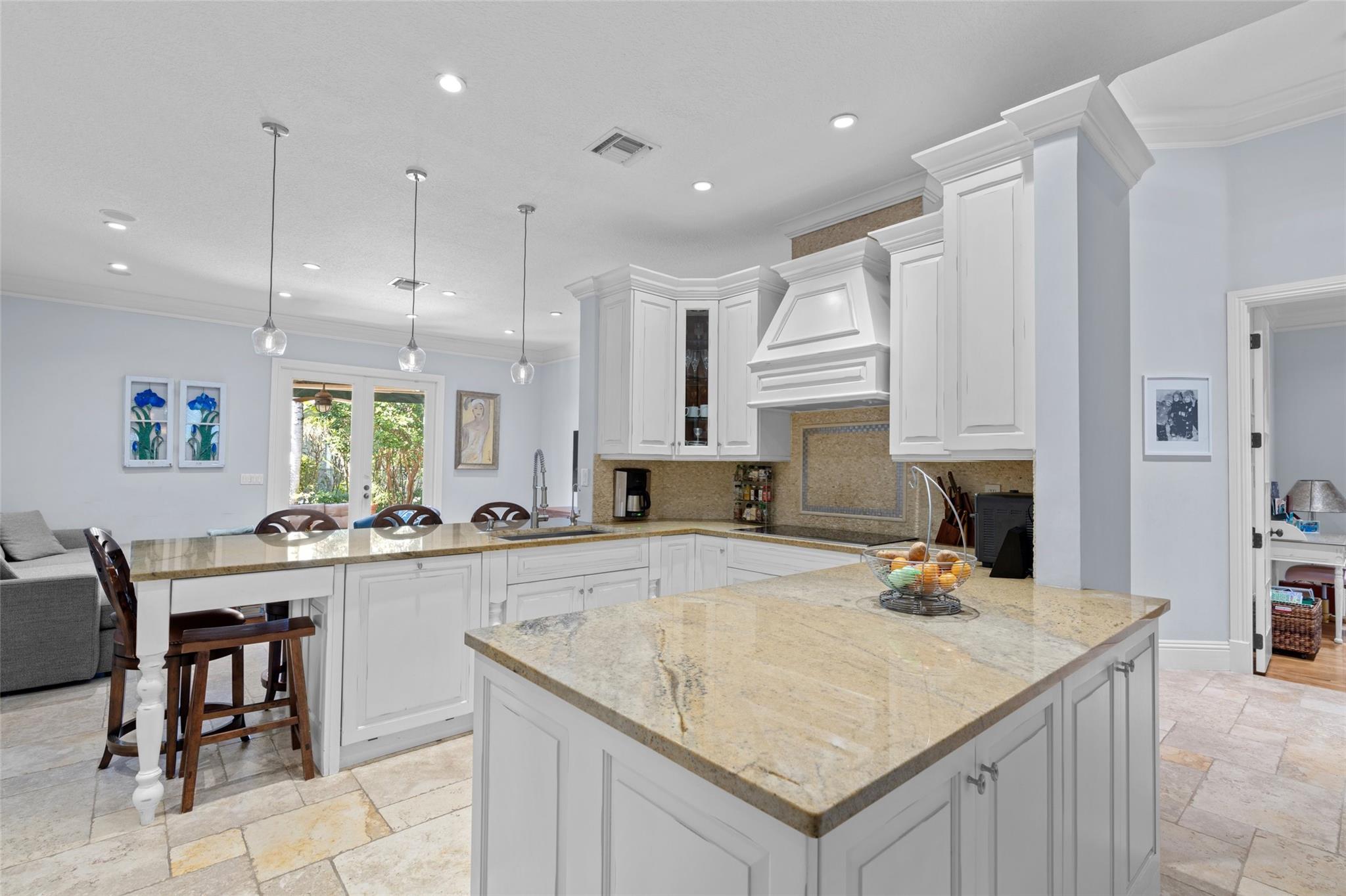 This true 4 bedroom, 2 bath single family sanctuary boasts a possible 5th bedroom or office space. Move-in ready with all the bells and whistles including a brand new roof, impact windows and doors, luxurious natural stone flooring, updated baths, and a high-end designer kitchen. Private patio and pool with outdoor kitchen great for entertaining plus enough car parking for 6 cars in addition to the 3 car garage! Nestled on a tranquil cul-de-sac street with an open park in front, just steps away from top schools, parks, great dining plus easy highway access. This gem won't last long!