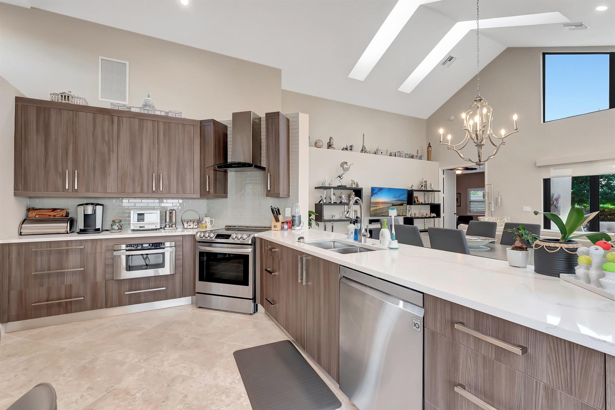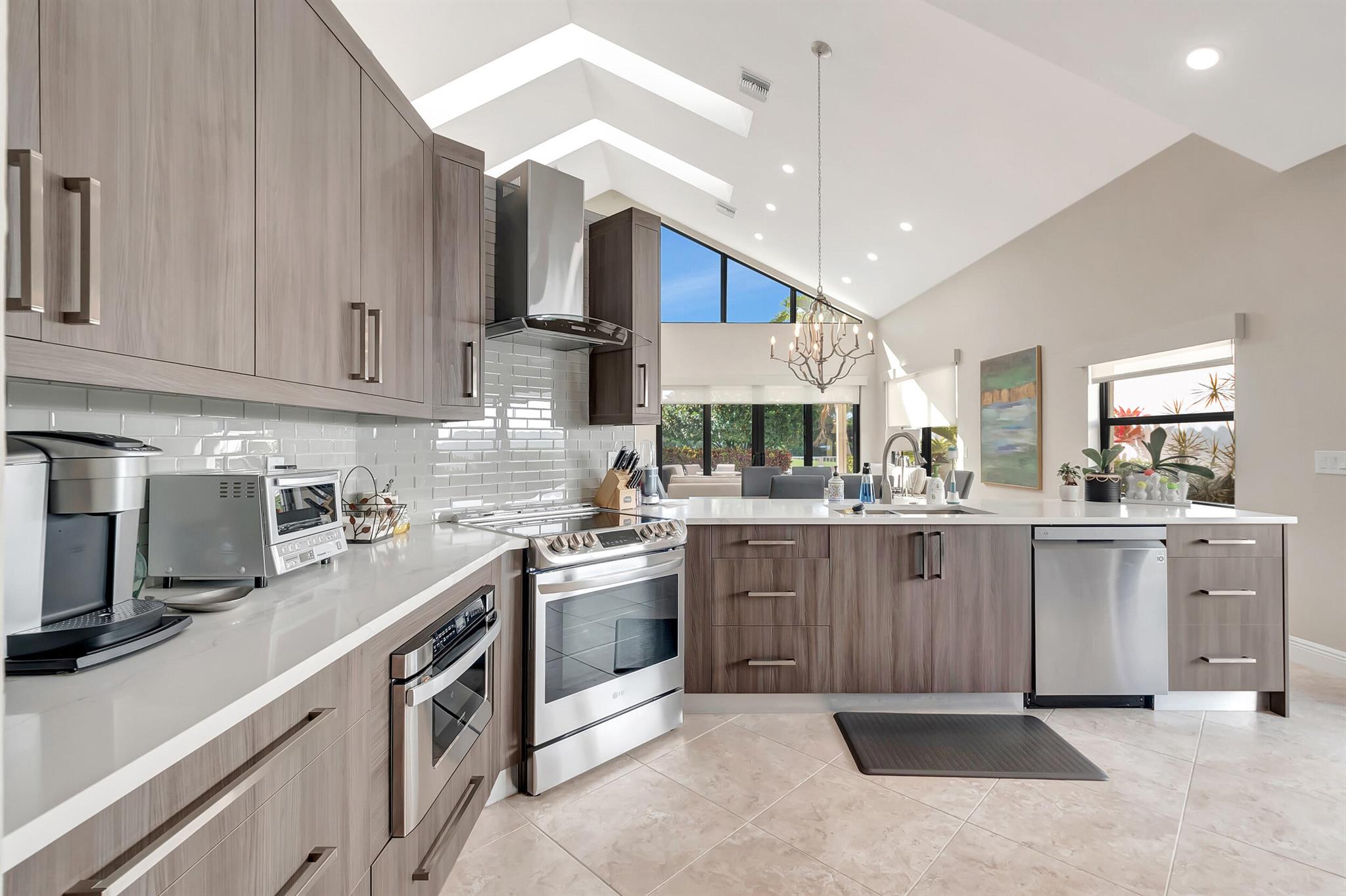 Enter into this beautiful, open airy 3 BR, 3Ba redone home.Freshly painted,sky lights, modern kitchen with quartz counters. All redone baths and closets with plenty of storage. Lovely patio & property overlooking the golf course. Hurricane glass throughout . New front door. This home I'd ready to move in!Come and enjoy the fabulous Polo Club lifestyle.Golf, tennis and pickle ball available.Mandatory membership