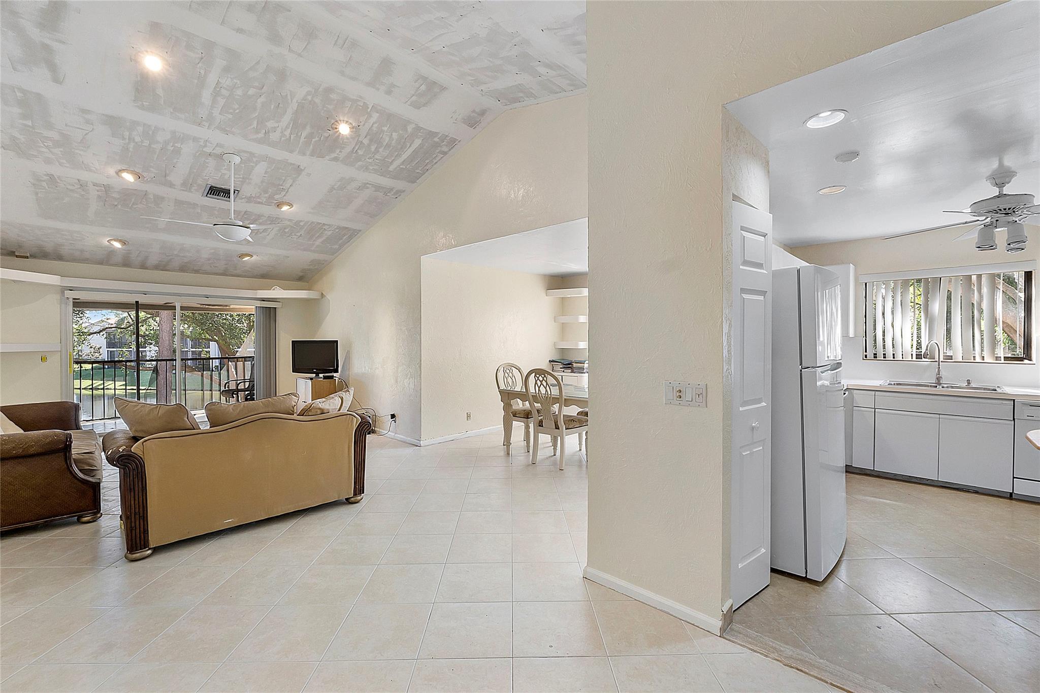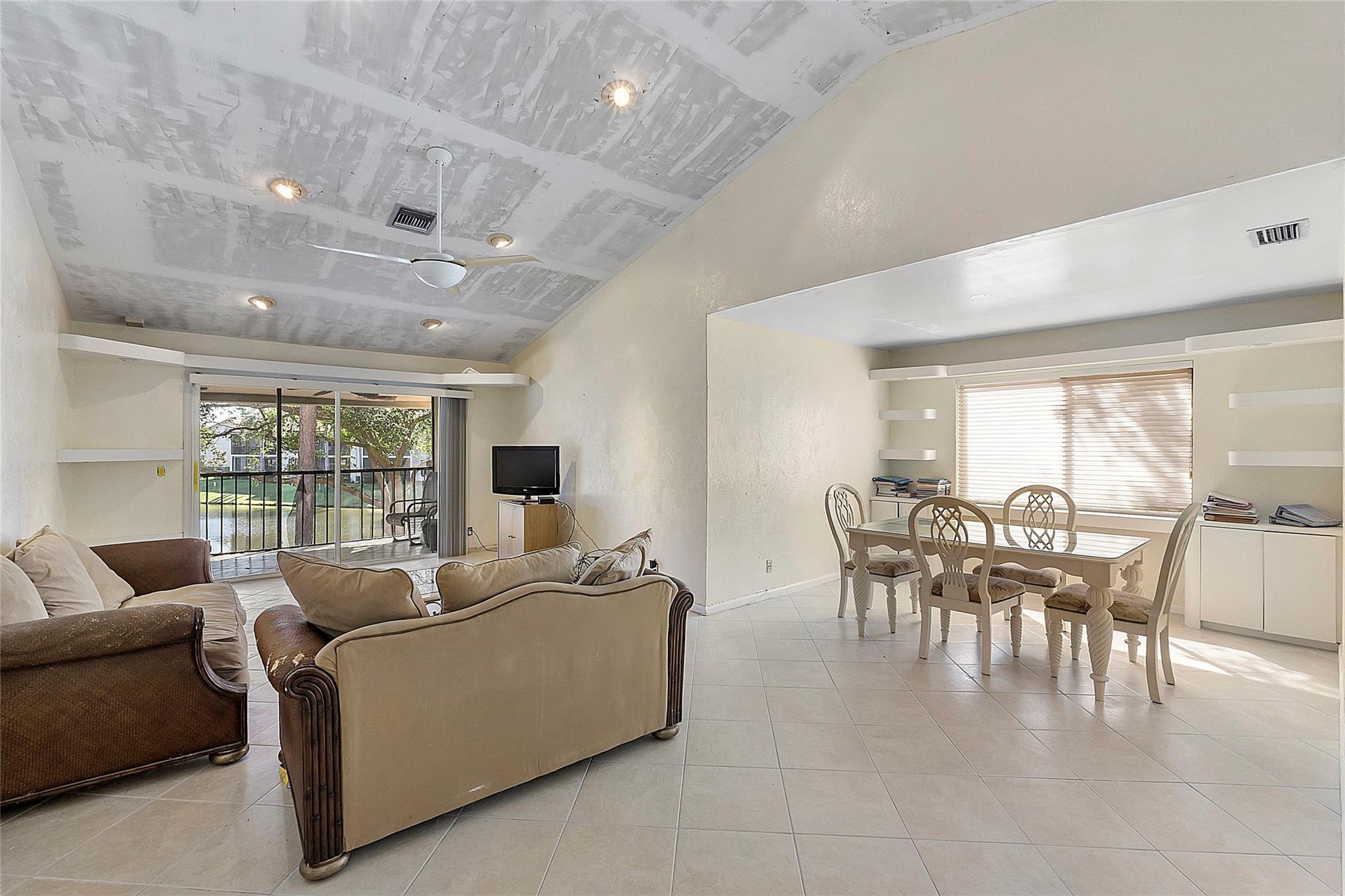 LOCATION, LOCATION, LOCATION. 3 bed 2 bath waterfront coach home near Town Center of Boca. This home is a blank slate with unlimited potential. Its gorgeous lake views are one of the best in the community. End unit with vaulted ceilings. The home needs some TLC. 2 of the bedrooms need flooring, ceiling needs painting. Primary bathroom has dual sinks, walk-in shower and separate tub. Attached 1-car garage with direct access to the unit. Perfect for an investor, handyman, or someone who wants to customize their own finishes. Close to high end shopping, restaurants and highway. Schedule your showing today! SCREEN ENCLOSURE ON PATIO IS NOT SECURE! PLEASE BE CAREFUL WHEN SHOWING! CASH OR REHAB LOAN ONLY DUE TO PROPERTY CONDITIONS!