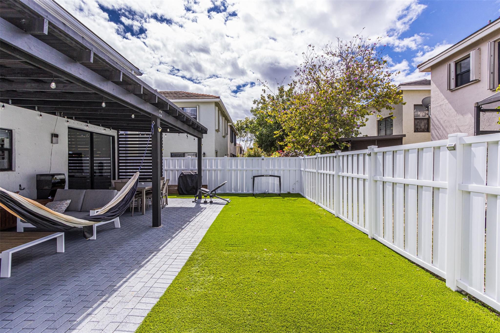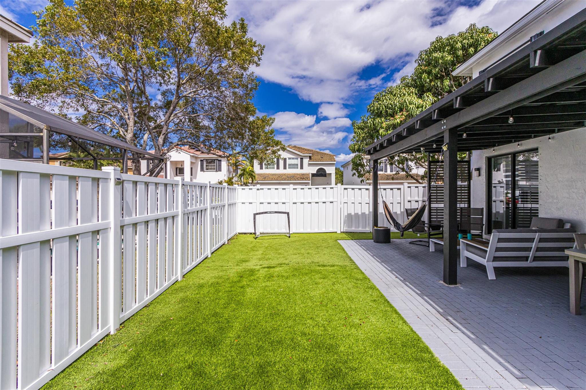 Discover the charm of this spacious 3 bedroom, 2.5 bath home, ideally situated on a beautiful corner lot. with both privacy and security, the property is fully fenced, for your peace of mind. Step inside to find a modern haven, meticulously updated with a new roof (2018), newer A/C, and appliances. Accordion shutters stand ready to provide seamless storm protection. Enjoy effortless commuting with convenient access to a major highway nearby. Outside, the backyard is welcoming with lush artificial grass, creating an inviting space for outdoor relaxation and entertainment. Don't miss the opportunity to make this stylish and conveniently located home yours. Schedule your showing today!
