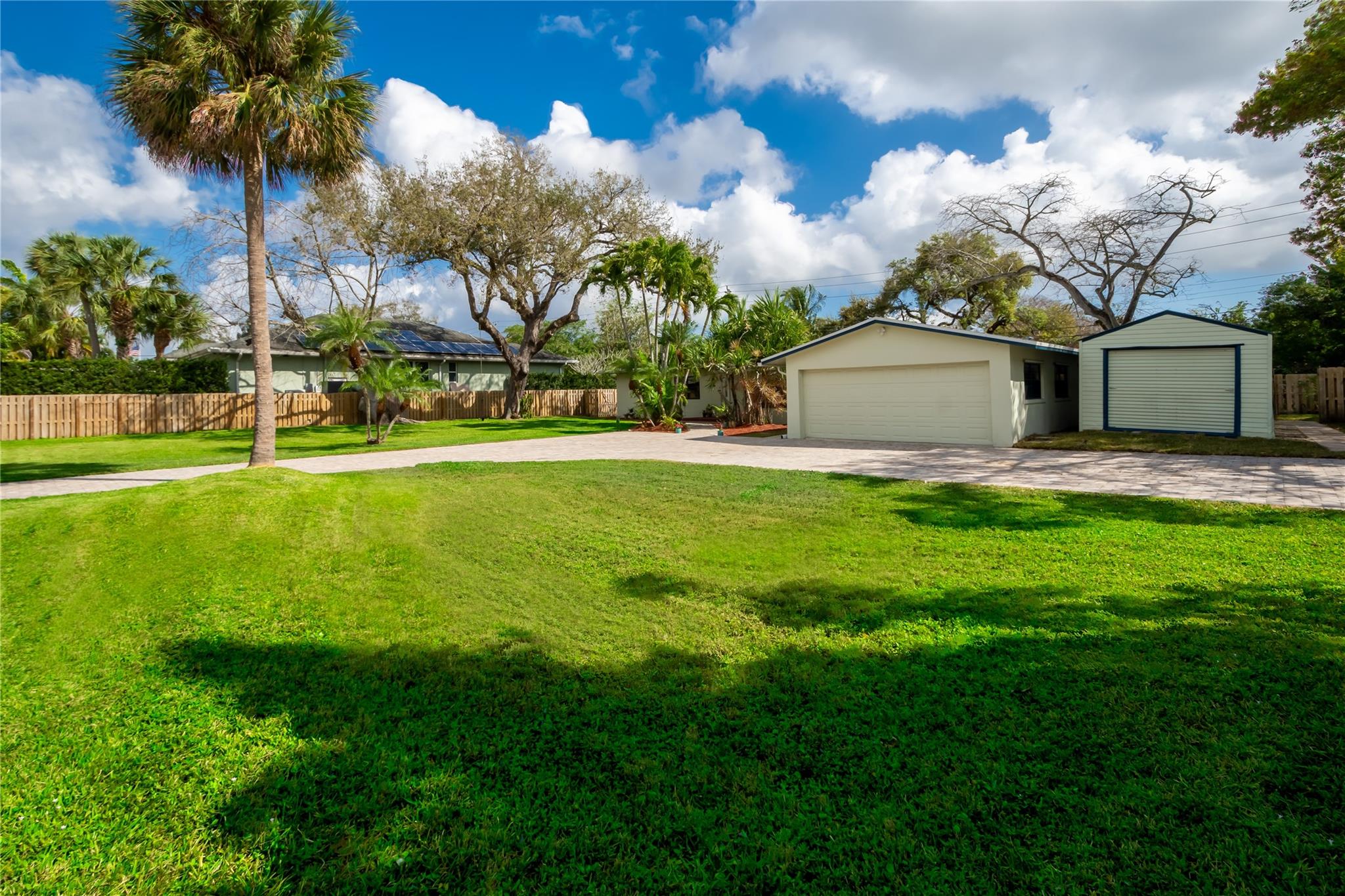 Discover the epitome of opportunity and the rarity of a double lot property spanning over 17,000 square feet. This newly renovated 2-bed, 1-bath haven boasts a den, pool, separate office/storage and expansive garage for 4+ cars, with a workshop boasting dedicated electric. Wonderful as-is AND offering boundless potential, envision your dream home with our proposed renderings, promising to elevate this property to new heights. A canvas awaiting your personal touch – seize this chance to redefine South Florida living. Plenty of room for all the toys, motorcycles, boats, four wheelers, equipment, etc. This one you must see to truly appreciate. The saying goes, "Buy land, they aren't making anymore." - don't miss this opportunity.
