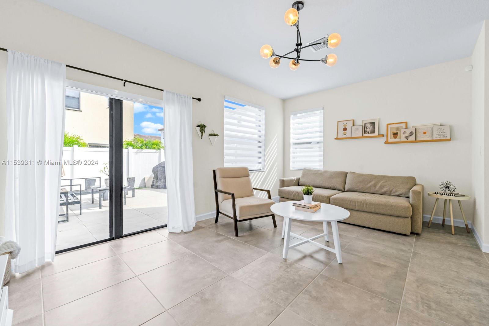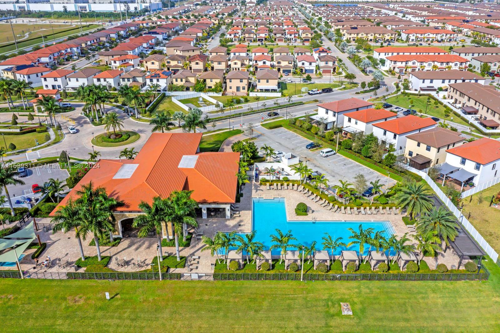 This home is located in the gorgeous gated community of Aquabella. The property sits on a corner lot featuring 3 bedrooms and 2.5 bathrooms with elegant touches throughout. The kitchen is fully renovated with stainless steel appliances and white quartz countertops overlooking a spacious family room. In the primary bedroom, you'll find a large walk-in closet with plenty of storage space. The backyard has cement and an entrance on the side fence for easy access to the yard. Enjoy resort-like amenities including swimming pools, children's park, fitness center, clubhouse and plenty of visitor parking spaces. Great location near major highways and a brand new shopping center featuring Publix, Homegoods, Five Below, and more. A + Rated Schools. Perfect home for first-time home buyers!