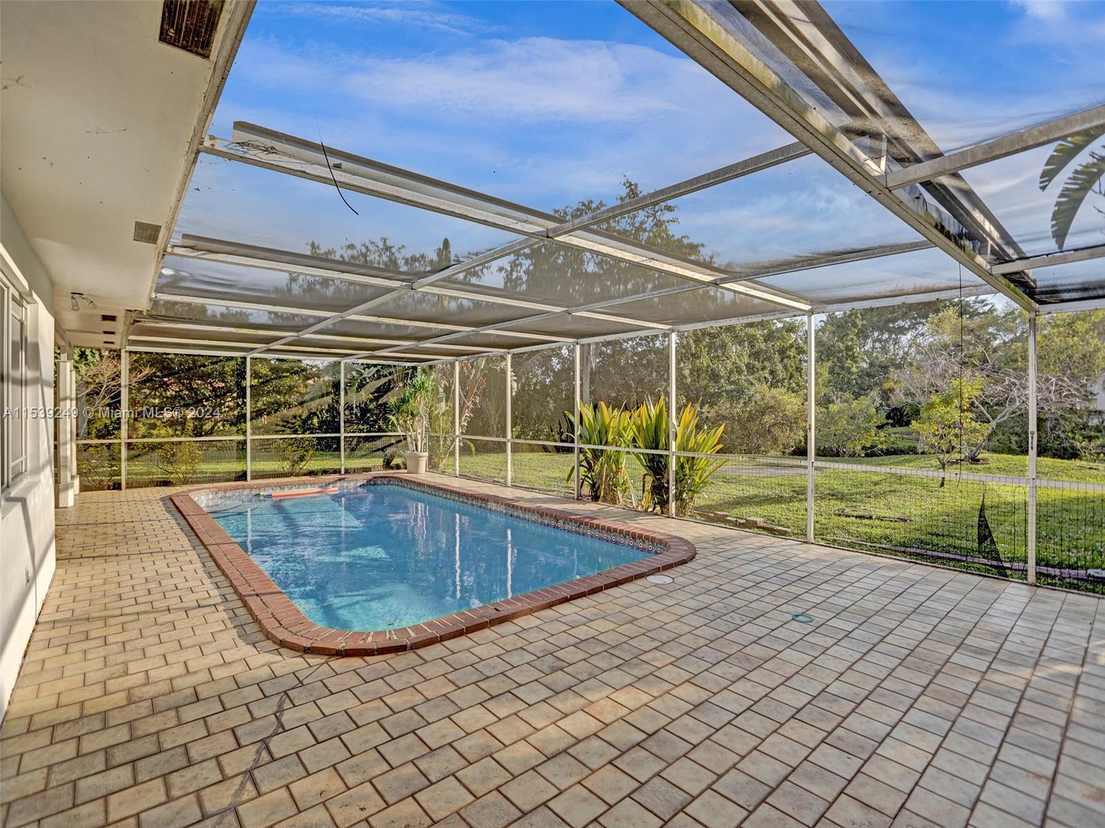 Welcome home to your 4 bed, 2 bath stunning property, offering a perfect blend of modern upgrades and serene waterfront living on a prime corner position with canal frontage. Beautifully updated with solid wood kitchen cabinets, granite counters, and modern appliances. Tile throughout common areas and laminate wood flooring for easy maintenance and a sleek aesthetic, with impact windows and french doors that enhance security and provide energy efficiency. Pavered driveway adds curb appeal, large screened pavered pool deck offers relaxation and entertainment space with captivating views of intersecting canals. Huge landscaped yard, providing ample space for outdoor activities and enjoying the waterfront lifestyle. Don't miss out on the chance to make this your own personal oasis!