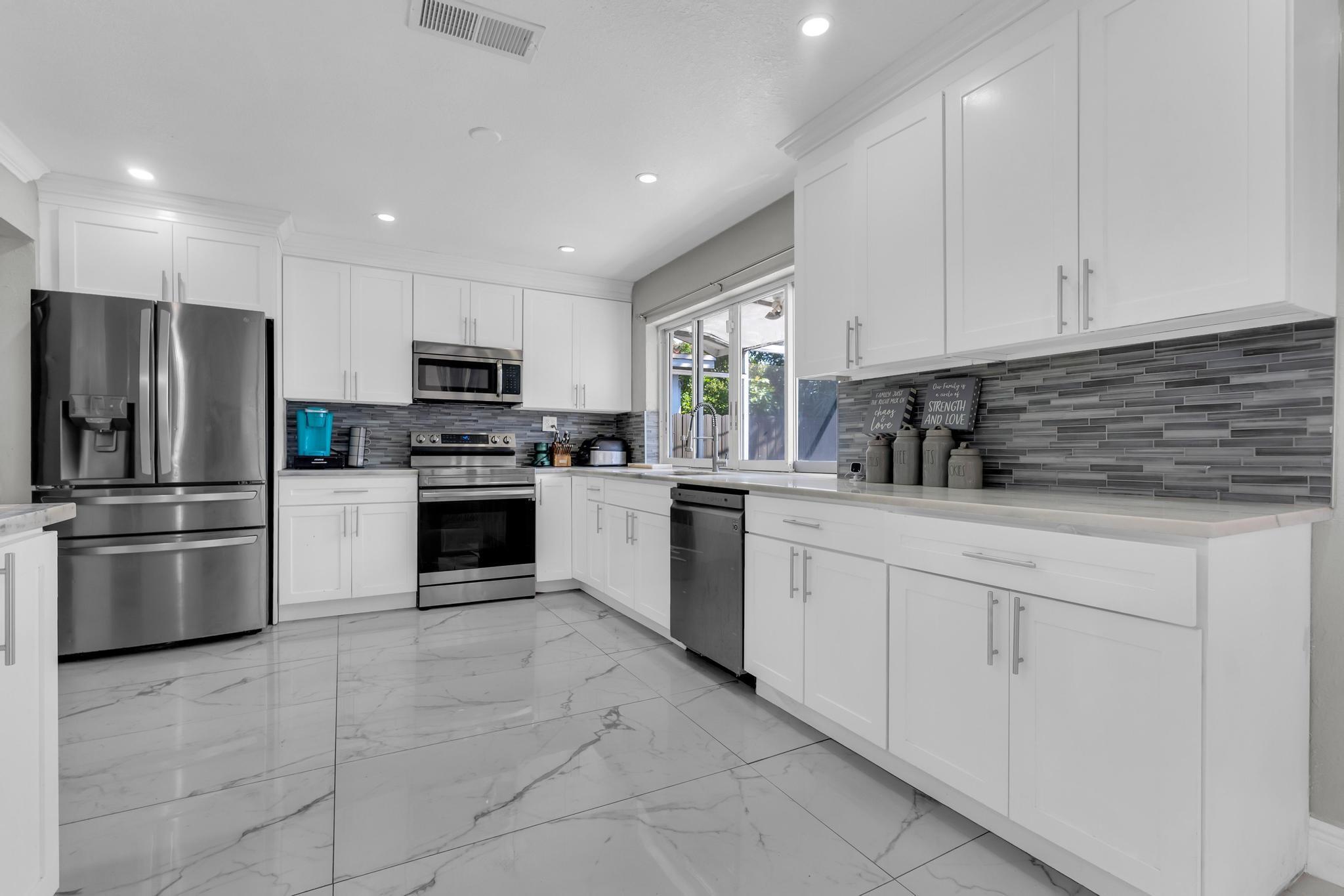 This exceptional opportunity to acquire a beautifully completely remodeled property in the heart of Miramar a waits you. This property features an open concept with crown modeling and new tile floors throughout the house, with newly remodeled bathrooms and a fully remodeled kitchen with an island and stainless-steel appliances. Enjoy wonderful days and nights in the backyard and create long lasting memories in the pool, while enjoying a private fence backyard, which is a perfect kid friendly playing environment or can be used for entertaining while enjoying your private oasis.