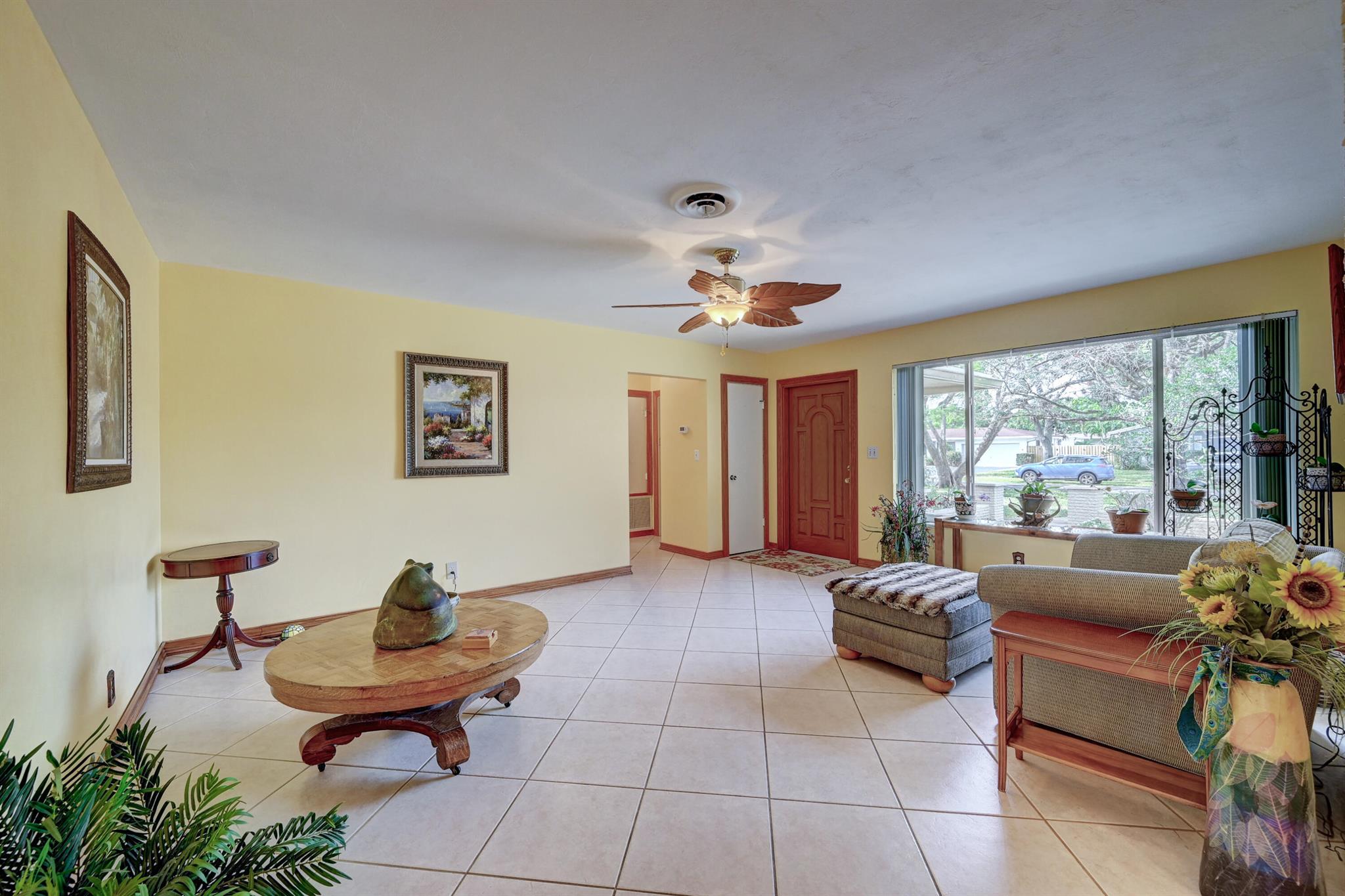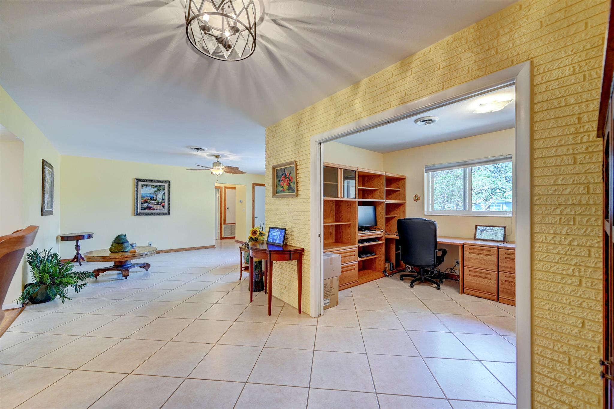 This charming single-family home offers a spacious living area of 2143 sqft.Located in Plantation Park neighborhood. This property is perfect for those seeking a comfortable and stylish living space.As you enter the home, you will be greeted by an inviting exterior entry with a patio area, perfect for enjoying the Florida weather. The dining area features parquet floor, with an elegant chandelier, creating a warm and welcoming atmosphere for entertaining guests. The family room is tiled and features a ceiling fan, providing a comfortable space for relaxation. The home also includes a dedicated office space/ bedroom with a brick wall, ceiling fan, pocket doors, full bath ideal for those who work from home.The kitchen has wood cabinets, granite counter tops,all appliances,breakfast bar