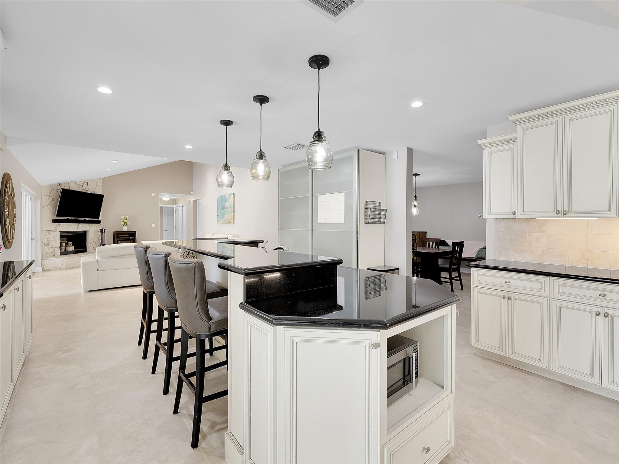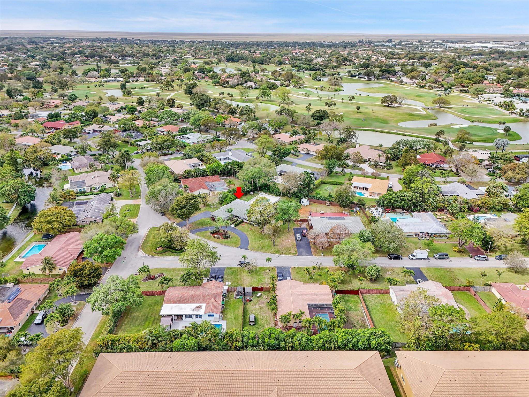 NO HOA! This 4bed/2.5 bath + DEN (no closet) home on half an acre in Coral Springs Country Club offers an OPEN floor plan w/ updated kitchen & bathrooms in 2016! VAULTED ceilings, formal dining, and a family room with a WOOD burning fireplace. The kitchen boasts a pantry, SS appliances, granite countertops, off-white shaker cabinetry, and a center island with pendant lights. Tile flooring in main living areas, laminate in bedrooms. The primary ensuite features a HUGE walk-in closet, and shower. The backyard boasts a POOL, screened patio, fenced yard, and sprinklers on well water. Includes a 2-car garage w/ a circular driveway, 2 A/C's & 2 W/H's. Enjoy sunrises from the family room and sunsets by the pool. DON'T MISS THIS opportunity!