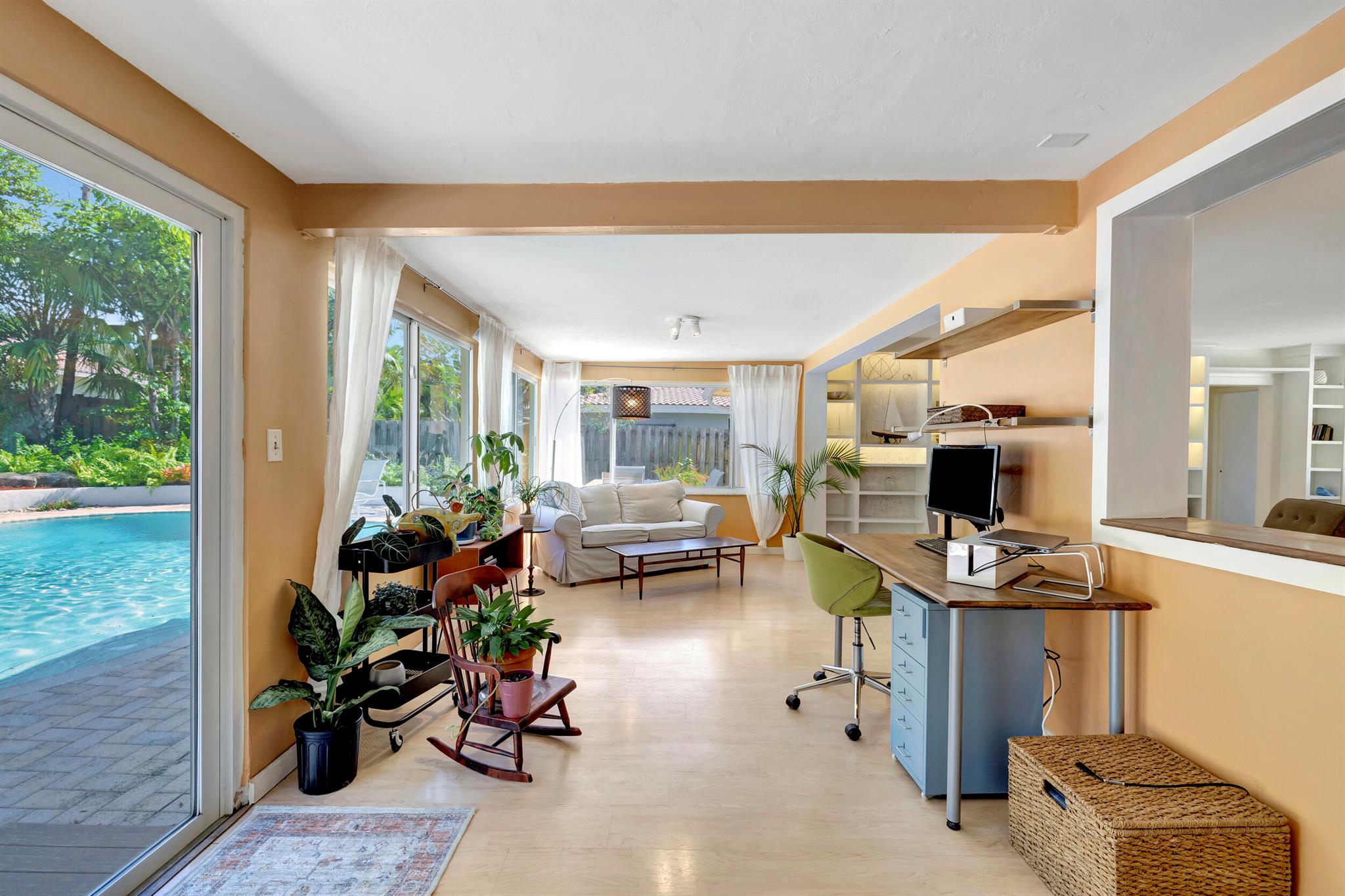 LOCATION, LOCATION, LOCATION... Great East Boca upscale area with amazing neighbors and a kid friendly environment!! Rare opportunity to own this amazing 3Be, 2Ba, 1,432 sqft, 1 car garage single family home with a beautiful pool and walking distance to multiple parks and playgrounds. The property sits on a quiet street for a perfect blend of functionality and style, catering to the diverse needs of modern family life and making it an ideal location to call home. As you pull in, you'll appreciate the lush landscaping and the slight elevation of the property from the street. Once you enter the home you'll recognize the open floor plan with spacious interior, including the airy yet cozy sunroom, filled with natural light. The kitchen includes SS appliances and butcher block countertops,