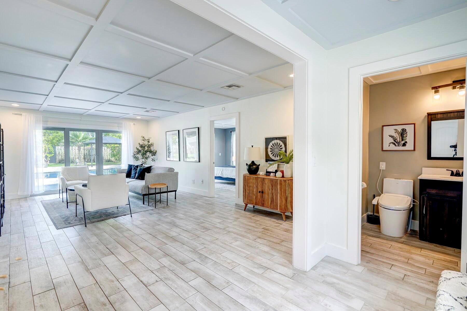 This is your chance to own a home nestled in the heart of Boca Raton, FL. This gorgeous 4 bedroom (plus a bonus room) pool home offers the perfect blend of modern comfort and timeless elegance.Situated in the desirable neighborhood of Palm Beach Farms this residence boasts convenience and serenity. Boasting a sleek, modern design and an array of smart features, this home offers the epitome of comfort and convenience.Step into the heart of the home and find yourself in the stunning updated kitchen, equipped with state-of-the-art LG smart appliances. From meal prep to entertaining, this space is designed for effortless living. Indulge in the spa-like ambiance of the modern bathrooms, complete with smart toilets for added convenience.