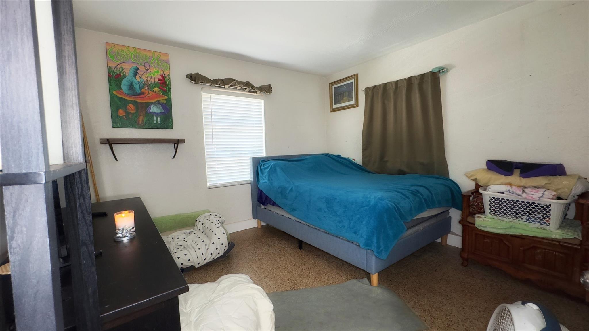 INVESTORS WANTED! This property is being sold AS-IS, offering a fantastic opportunity for both homeowners and investors alike. The front house features a 2-bedroom, 1-bathroom layout that can easily be converted into a 3 bedroom, 1-bathroom by transforming the Florida room. Terrazzo floors, central AC and a roof updated just 6 years ago. What sets this property apart is its dual entryways, providing convenient access from both the front and back. The back unit is designed to accommodate an RV, boat, car, motorcycle(s), or can be utilized as a versatile space for a workout area, office, or workshop. This unit boasts a loft-style living space with 2 bedrooms and 2 bathrooms, perfect for additional rental income or personal use. New roof will be completed prior to closing for the back