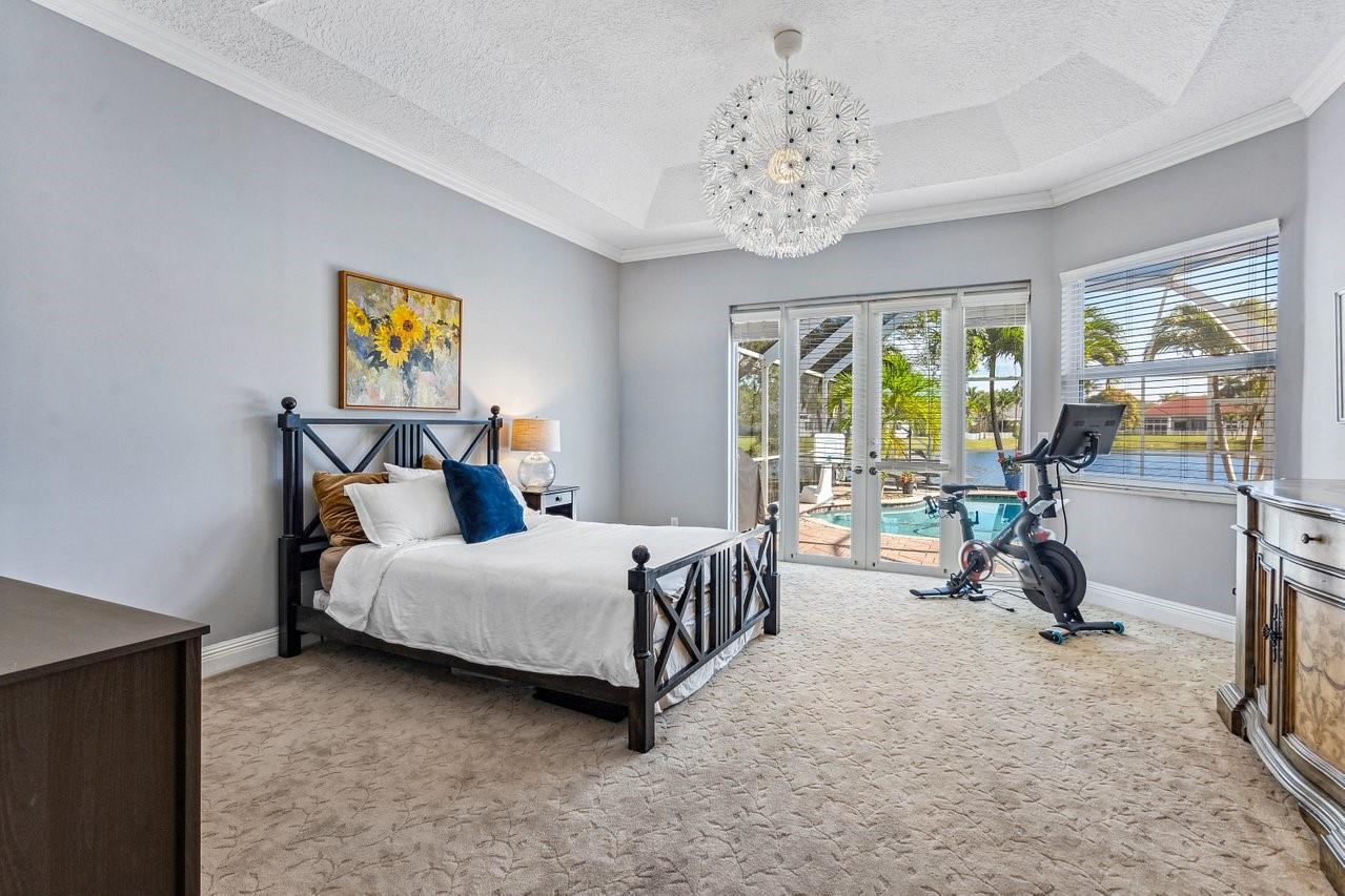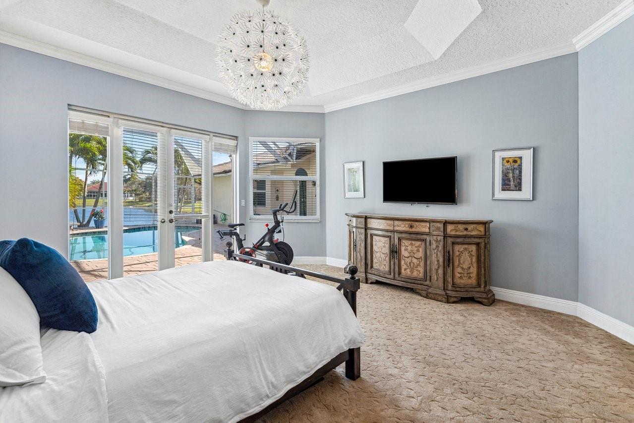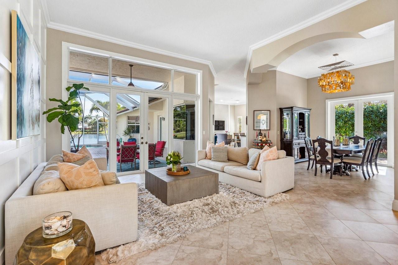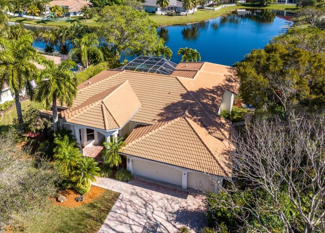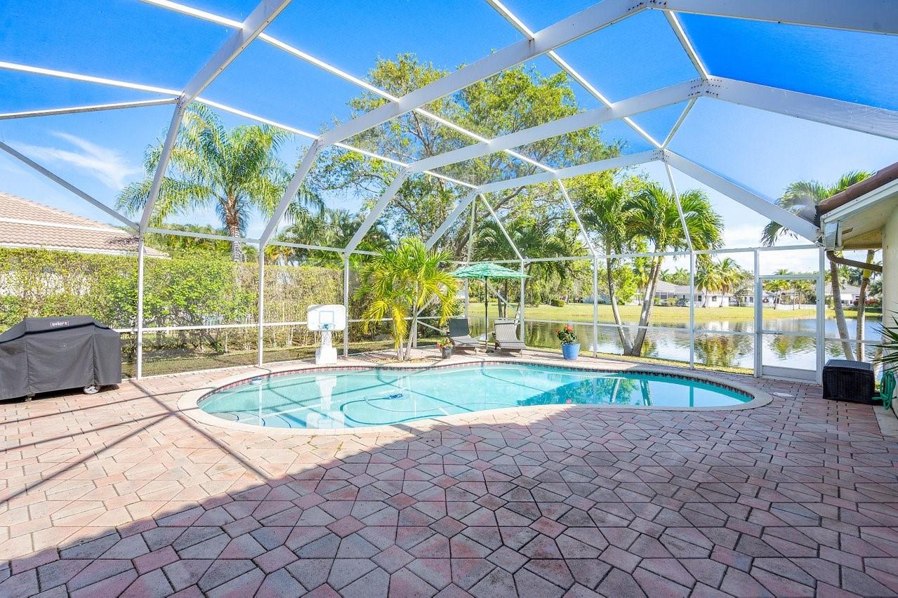 Stunning panoramic lake views take centerstage throughout this beautiful estate home with a 2019 ROOF. Soaring ceilings, expansive windows/glass doors, spacious open living areas, a light & airy interior, huge lanai with saltwater pool & tropical outdoor areas resulted in a quintessential Florida water front home! Perfect for indoor/outdoor living. Impressive curb appeal with a sprawling oversize corner lot, portico entry & double glass doors. Large granite island kitchen overlooks a sizeable family room with SS appliances and eat in breakfast area. Primary suite with spa bath. Beautiful millwork & plantation shutters add to its splendor. Fox Ridge offers a 24-hour manned guard gate, tennis courts, volleyball court & playground w/low HOA fees. Walking distance to all A-rated schools