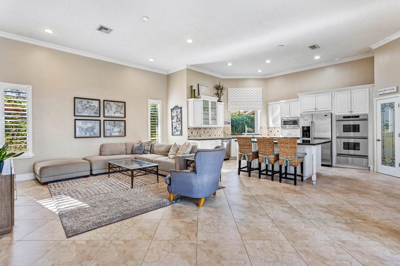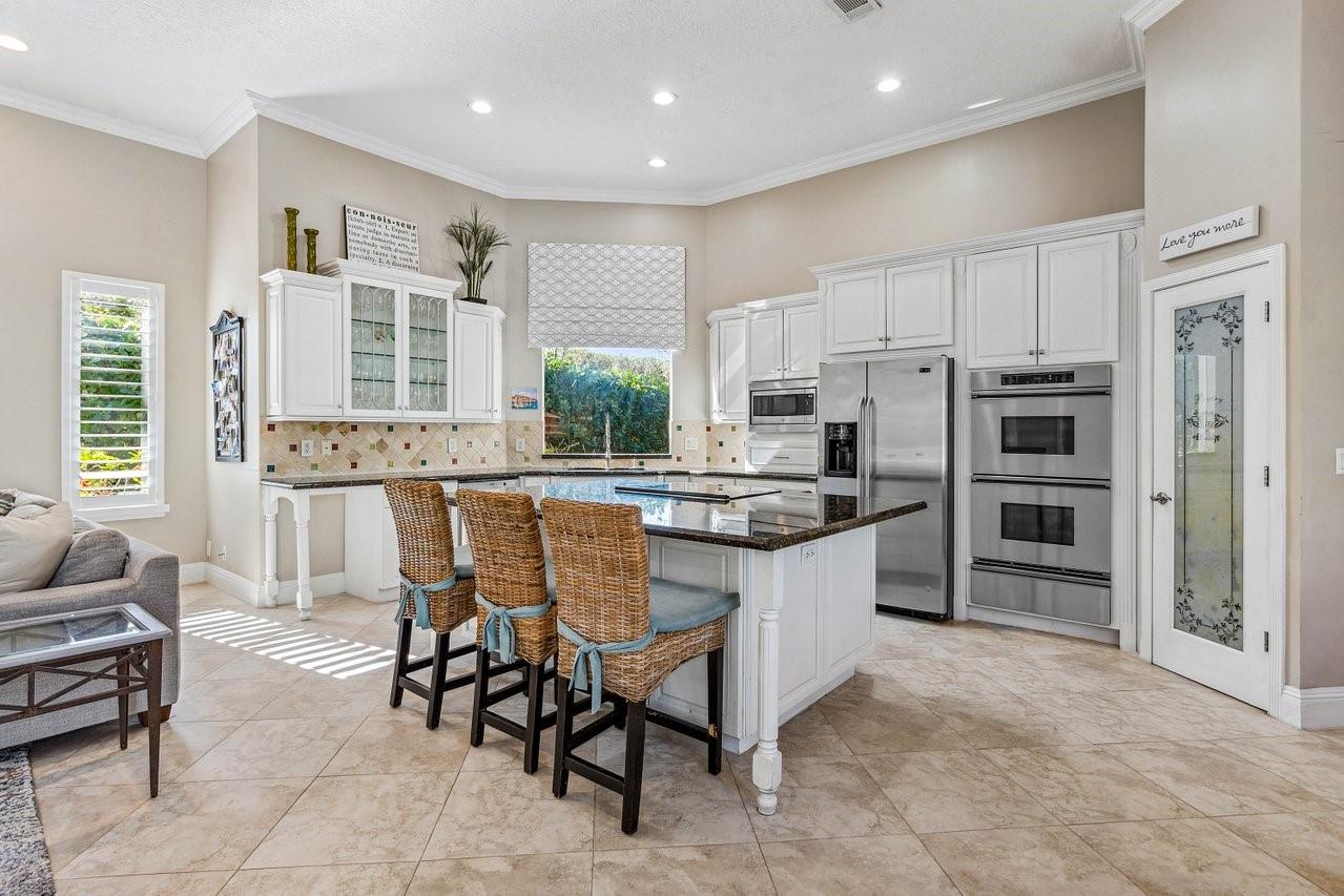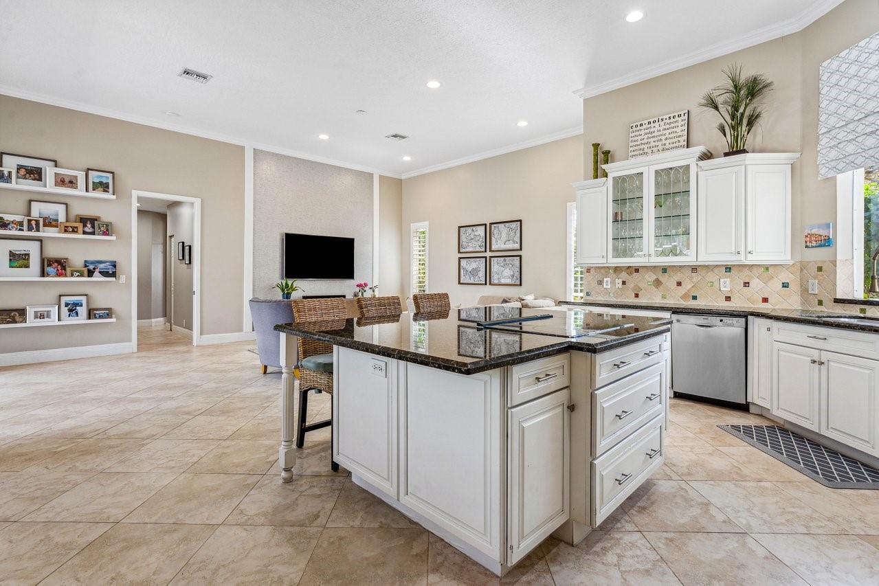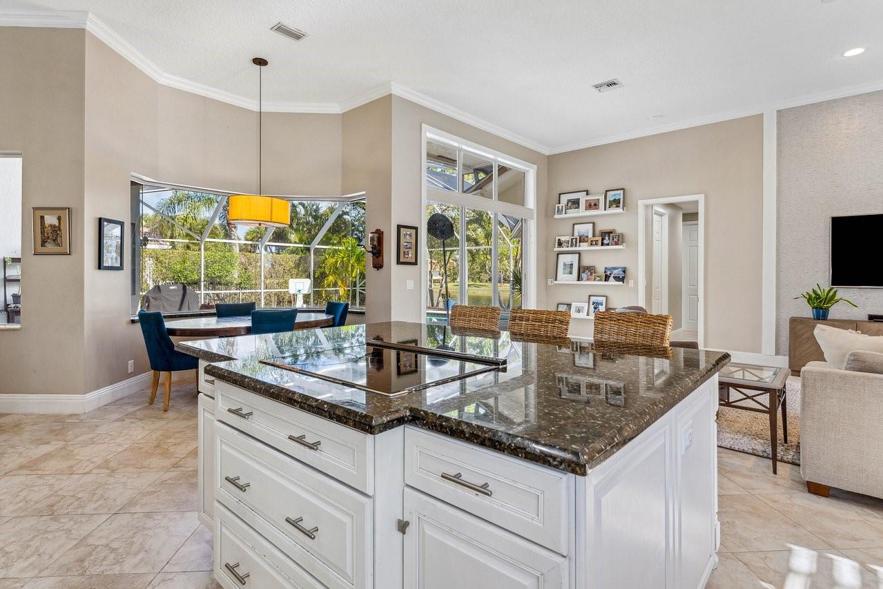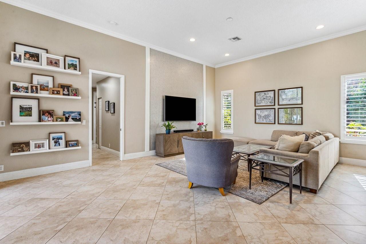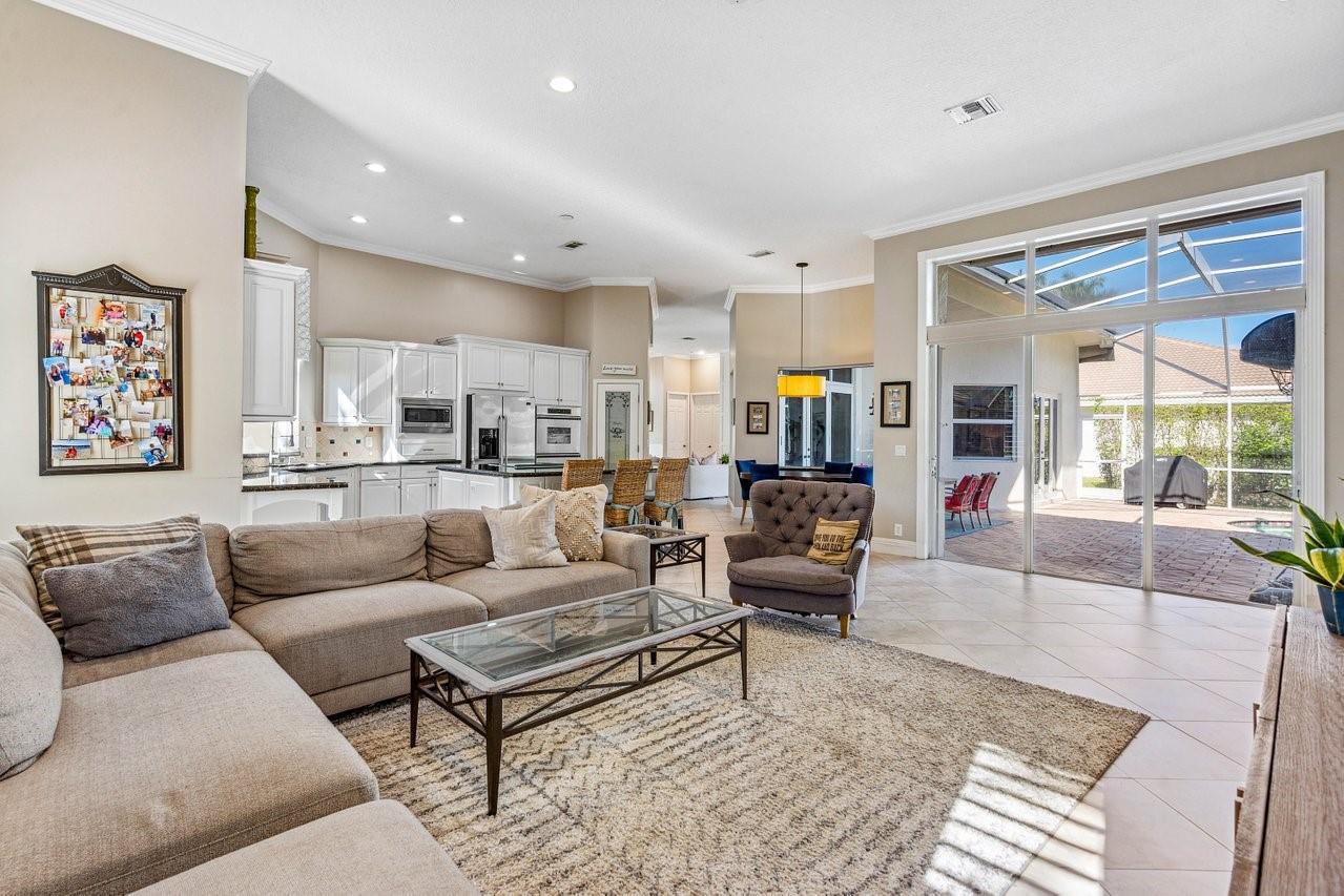 Stunning panoramic lake views take centerstage throughout this beautiful estate home with a 2019 ROOF. Soaring ceilings, expansive windows/glass doors, spacious open living areas, a light & airy interior, huge lanai with saltwater pool & tropical outdoor areas resulted in a quintessential Florida water front home! Perfect for indoor/outdoor living. Impressive curb appeal with a sprawling oversize corner lot, portico entry & double glass doors. Large granite island kitchen overlooks a sizeable family room with SS appliances and eat in breakfast area. Primary suite with spa bath. Beautiful millwork & plantation shutters add to its splendor. Fox Ridge offers a 24-hour manned guard gate, tennis courts, volleyball court & playground w/low HOA fees. Walking distance to all A-rated schools