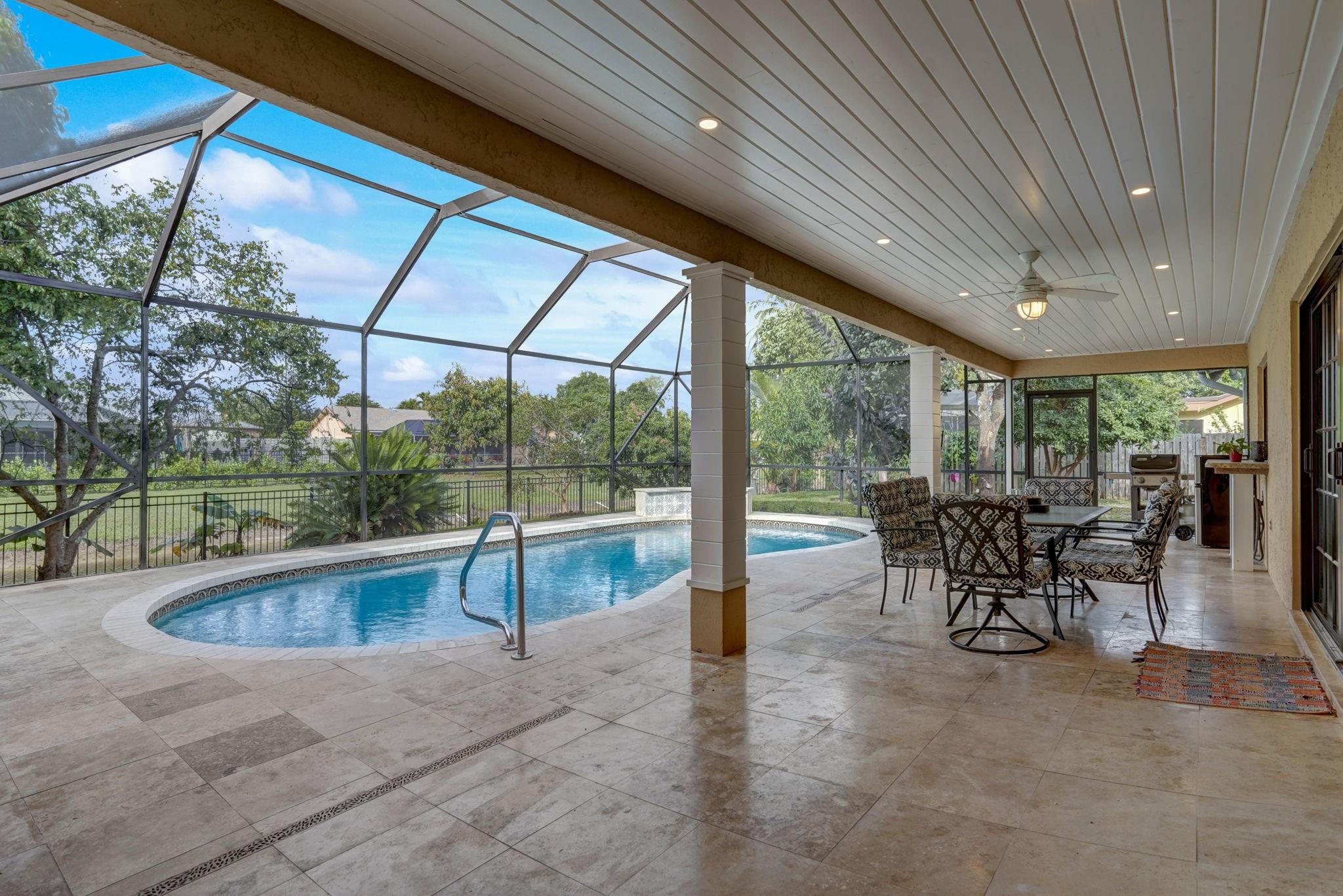 Fantastic West Boca location – Boca Chase Community. This Awesome single story home has 4 bedrooms, 3 bathrooms and a unique in-law suite/guest room. The oversized fenced lot has a wonderful screened-in heated pool and covered patio surrounded by a backyard full of fruit trees and bordering on a tranquil canal. Some of the many features include impact windows and doors throughout, porcelain tile and oak wood flooring, updated kitchen and bathrooms, stainless steel appliances, reverse osmosis drinking water system, a theatre room with a large built in movie screen and custom-made recessed speakers. Re-roof in 2004 using Owens Corning Oakridge PRO 40 AR. Two A/C units (2019 and 2020). A-Rated Schools. See Feature sheet for more info.