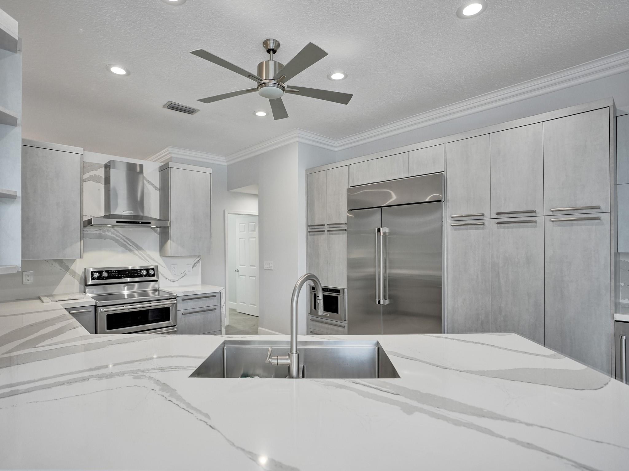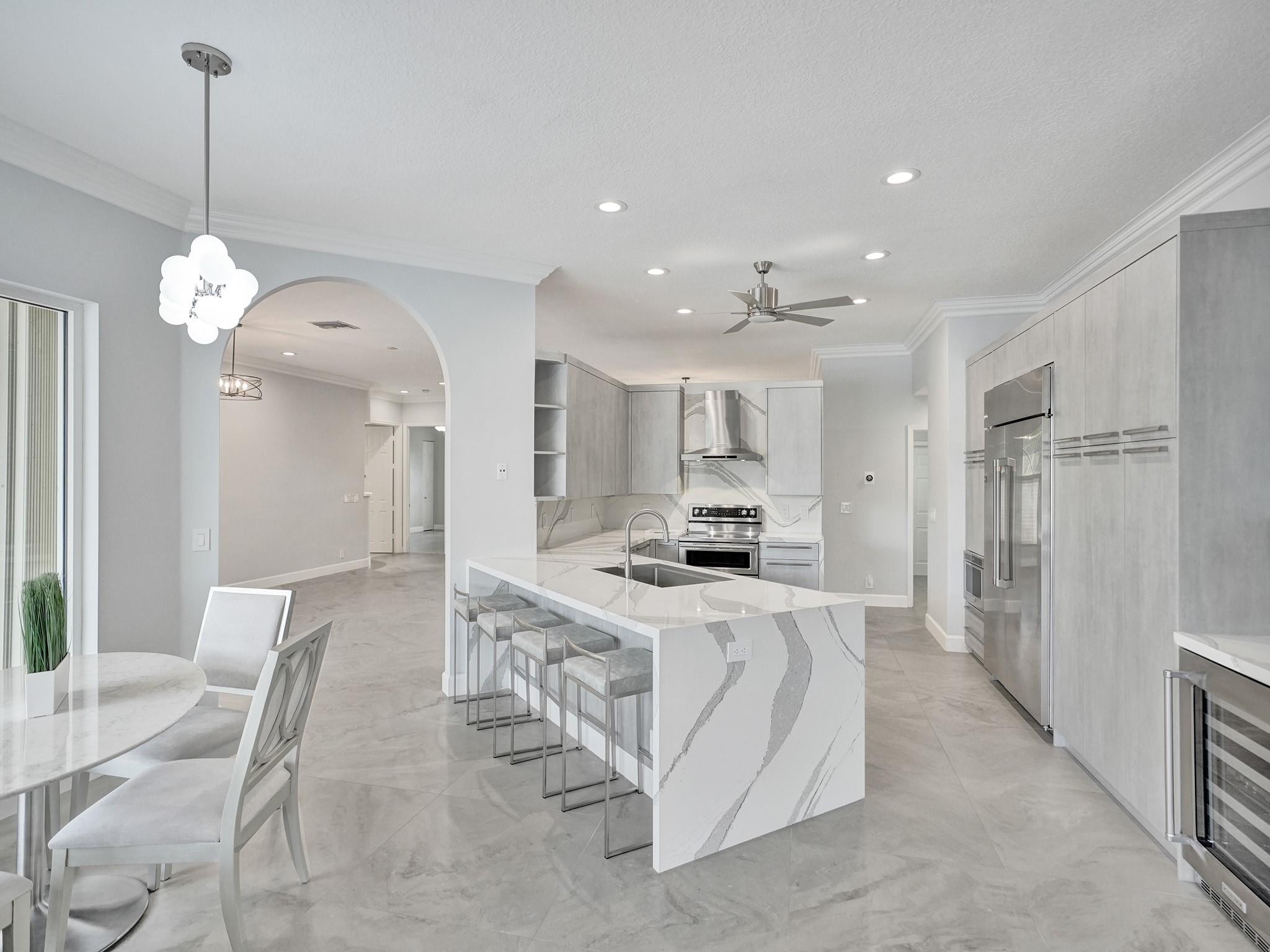 Waterfront Dream home in Westport! Spectacular, Light-filled 5,3.5 gem has just undergone a complete transformation, offering the epitome of modern luxury and comfort. Stunning kitchen boasts waterfall quartz counters, 42” wood cabinets, breakfast nook, coffee center, new appliances: double oven, range with hood, wine refrigerator. Primary suite-haven, 2 large walk-in closets, new bathroom: soaking tub, Toto toilet, glass-enclosed shower, 2 vanities. 2nd en suite. New bathrooms. California Closets. Screened-in pool and patio area. Cabana bath. 2018 Roof with gutters. Triple-split floorplan. Porcelain tile, Premium vinyl plank floors. Complete hurricane protection. Circular driveway. New LED lighting. Very low HOA. Near shoppes, restaurants, houses of worship, highways, entertainment.