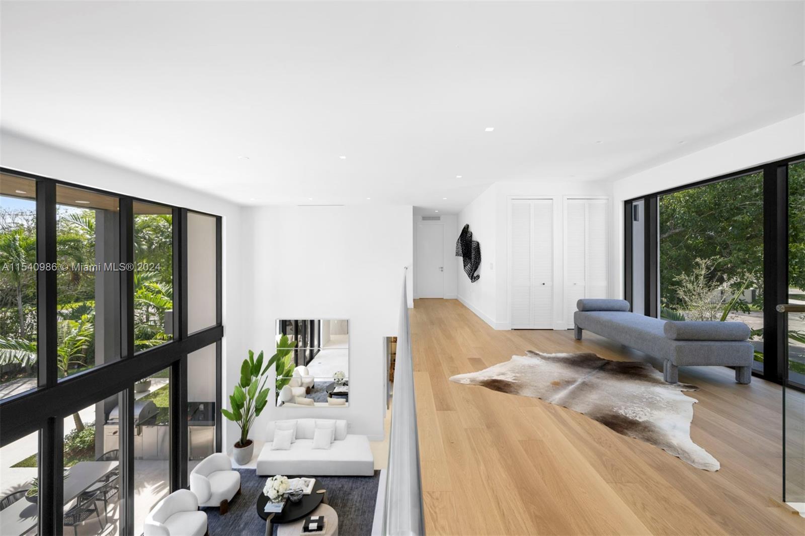 In a tranquil cul-de-sac, this new contemporary corner home offers an airy, open layout with high ceilings and natural light located in North Pinecrest. It features a modern kitchen with custom cabinets and quartz tops with subzero and wolf appliances. The first floor includes two bedrooms, each with a private bath, ideal for guests or family. Upstairs, a den, a master suite with walk-in closets, a large spa bath with soaking tub and dual vanities, and two more bedrooms with ensuite baths await. The outdoor space boasts a terrace, outdoor kitchen, pool, fireplace, and pool bath with outdoor shower accompanied by great landscaped grounds. Home also has great finishes, several built ins and custom closet cabinetry. impact-resistant windows, a two-car garage, and is near top schools.