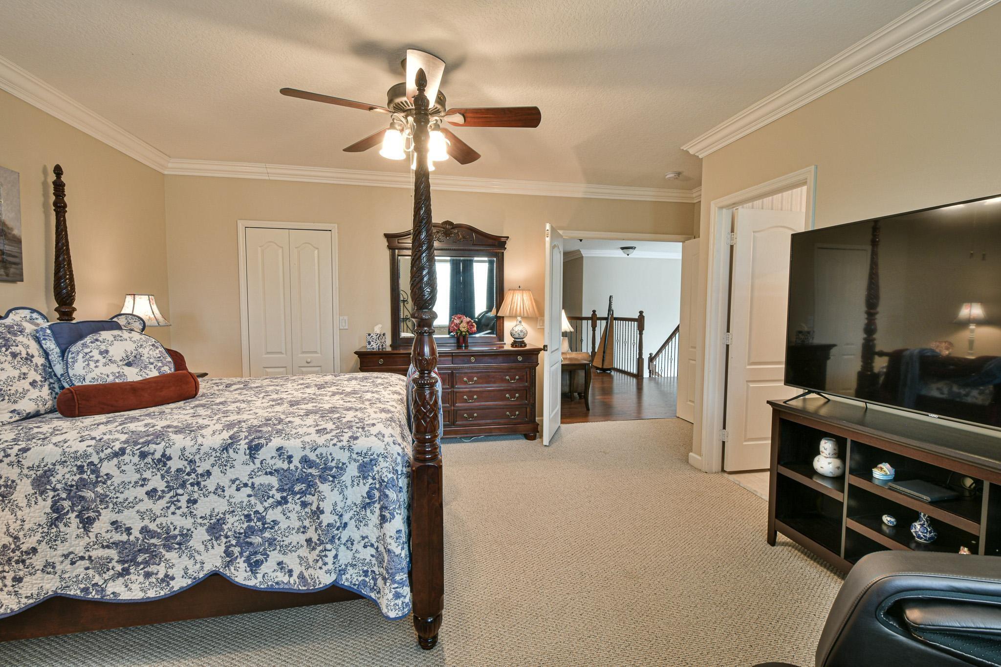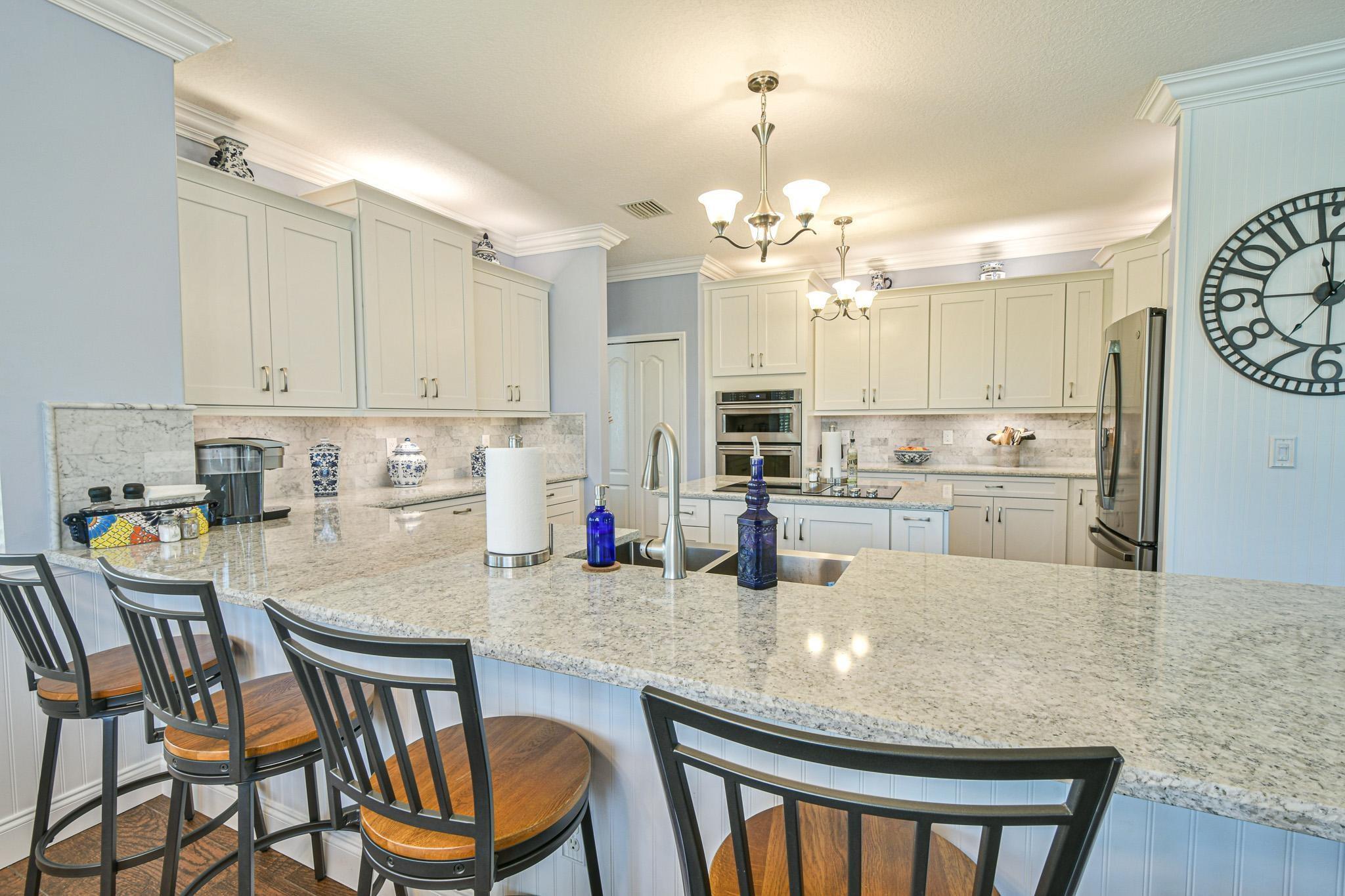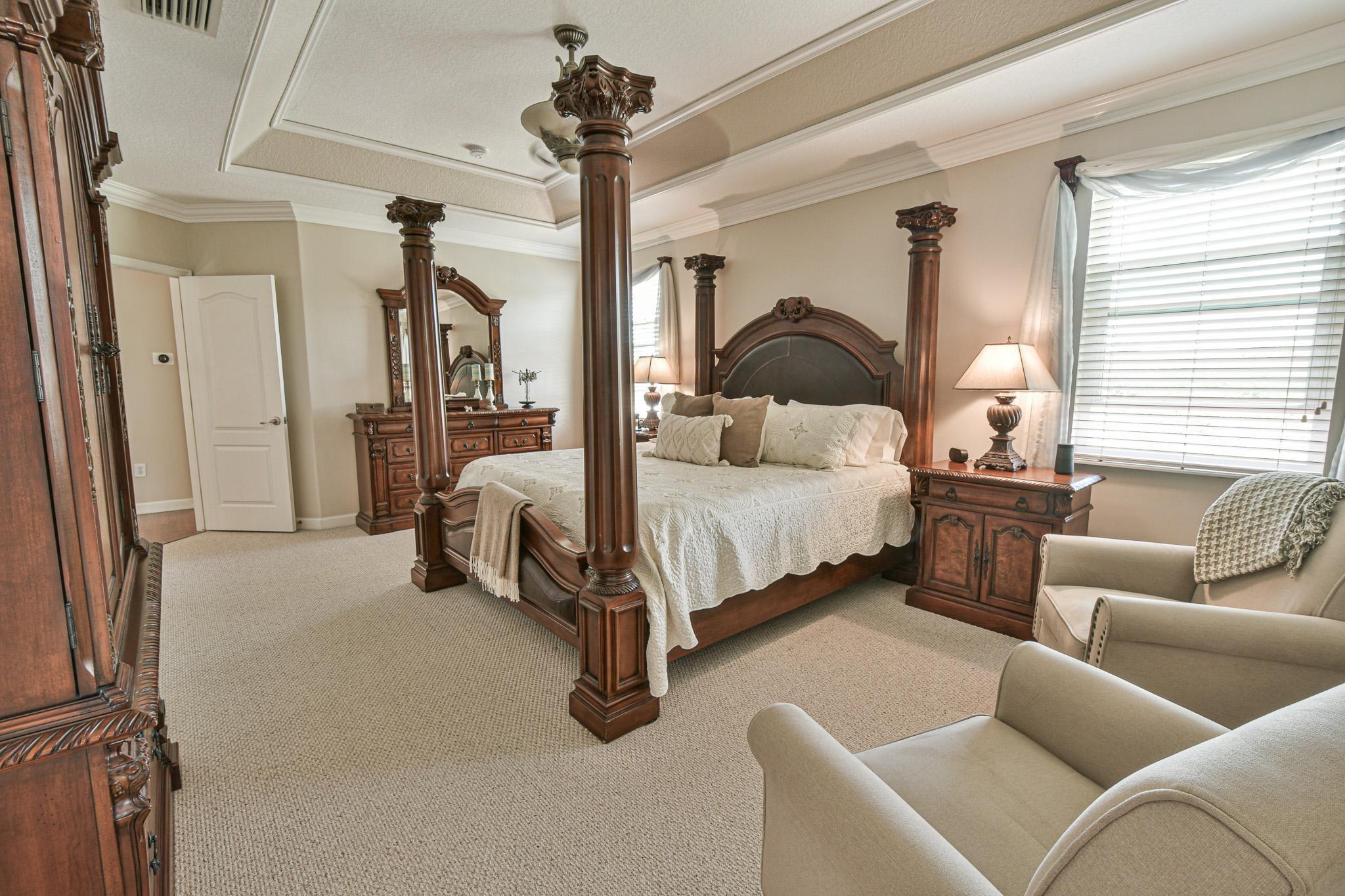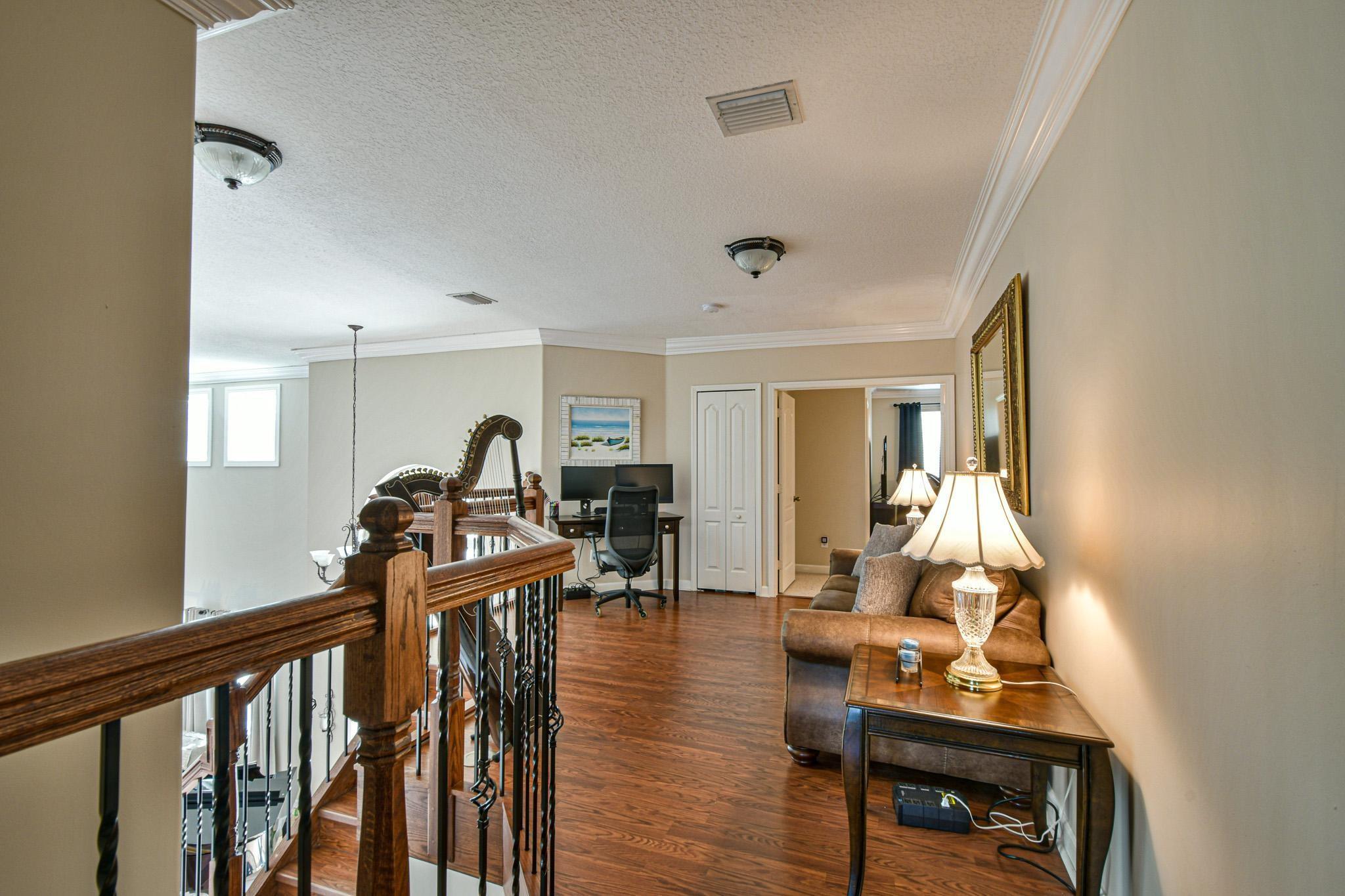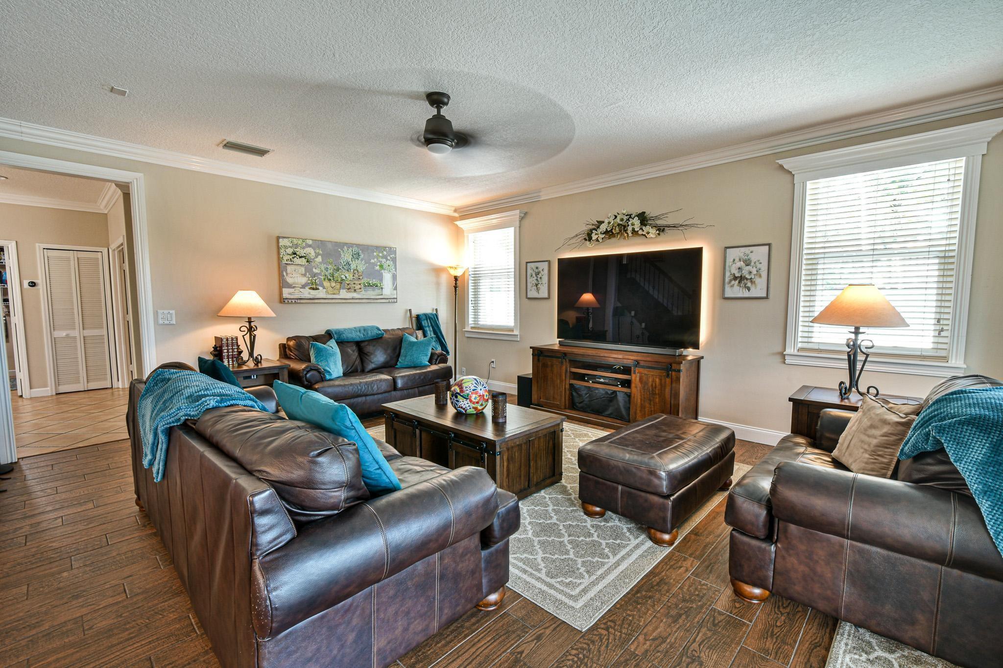 WELCOME HOME TO THIS BEAUTIFULLY LANDSCAPED AND MAINTAINED 5 BEDROOM/4 BATH HOME WITH WATERFRONT VIEW, 6' WHITE PRIVACY FENCE, HEATED/COOLED POOL/SPA W/OVERSIZE DECK & SCREENED-IN PATIO FOR ENJOYING THE OUTDOORS. CUSTOM GOURMET KITCHEN W/QUARTZ COUNTERTOPS, MARBLE BACKSPLASH, SOFT-CLOSE CABINETS, & HIGH-END S/S APPLIANCES. ELEGANT ENTRANCE W/20 FT CEILINGS. HIGH IMPACT DOORS/WINDOWS HAVE LIFETIME WARRANTY. UPSTAIRS ARE TWO MASTER SUITES & TWO BEDROOMS. PRIMARY MASTER IS SPACIOUS W/RECESSED CEILING, 2 WALK-IN CLOSETS, LARGE BATHROOM W/SEPARATE TUB/SHOWER. ONE BEDROOM/BATH DOWNSTAIRS. 2 A/C UNITS W/BI-POLAR IONIZATION-KEEP AIR CLEAN. 2 CAR GARAGE W/LARGE DRIVEWAY. HOA INCLUDES: GATED SECURITY, FRONT LAWN MOWING, CABLE, CLUBHOUSE W/FITNESS CENTER, POOL, TENNIS & BASKETBALL COURTS, PLAYGROUND.